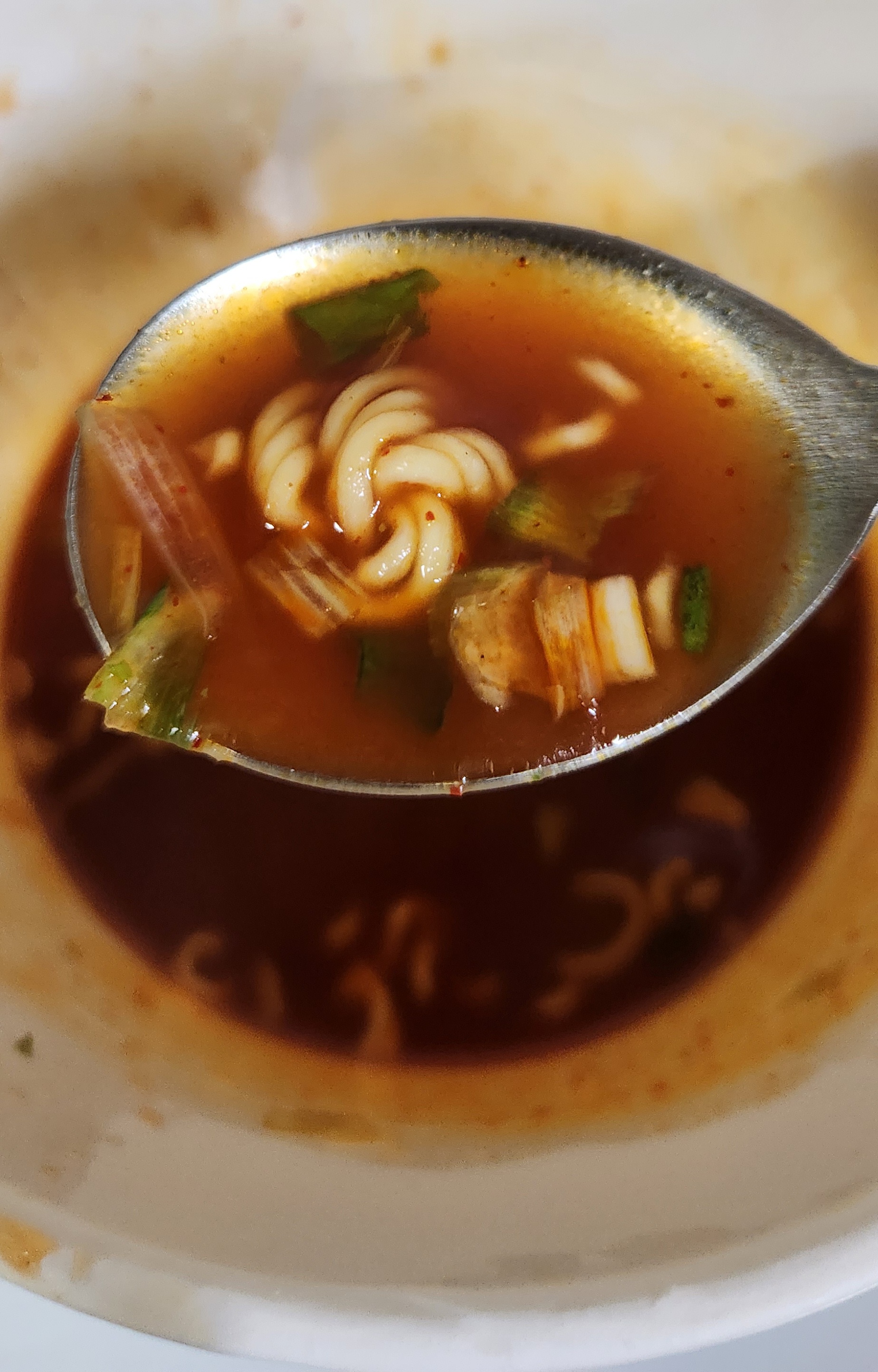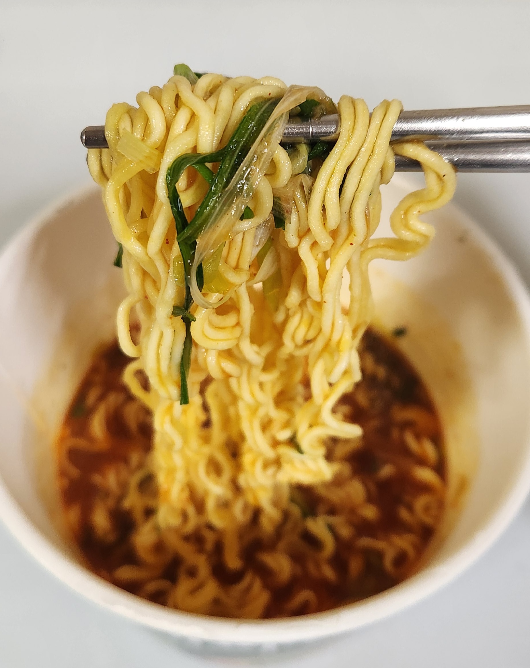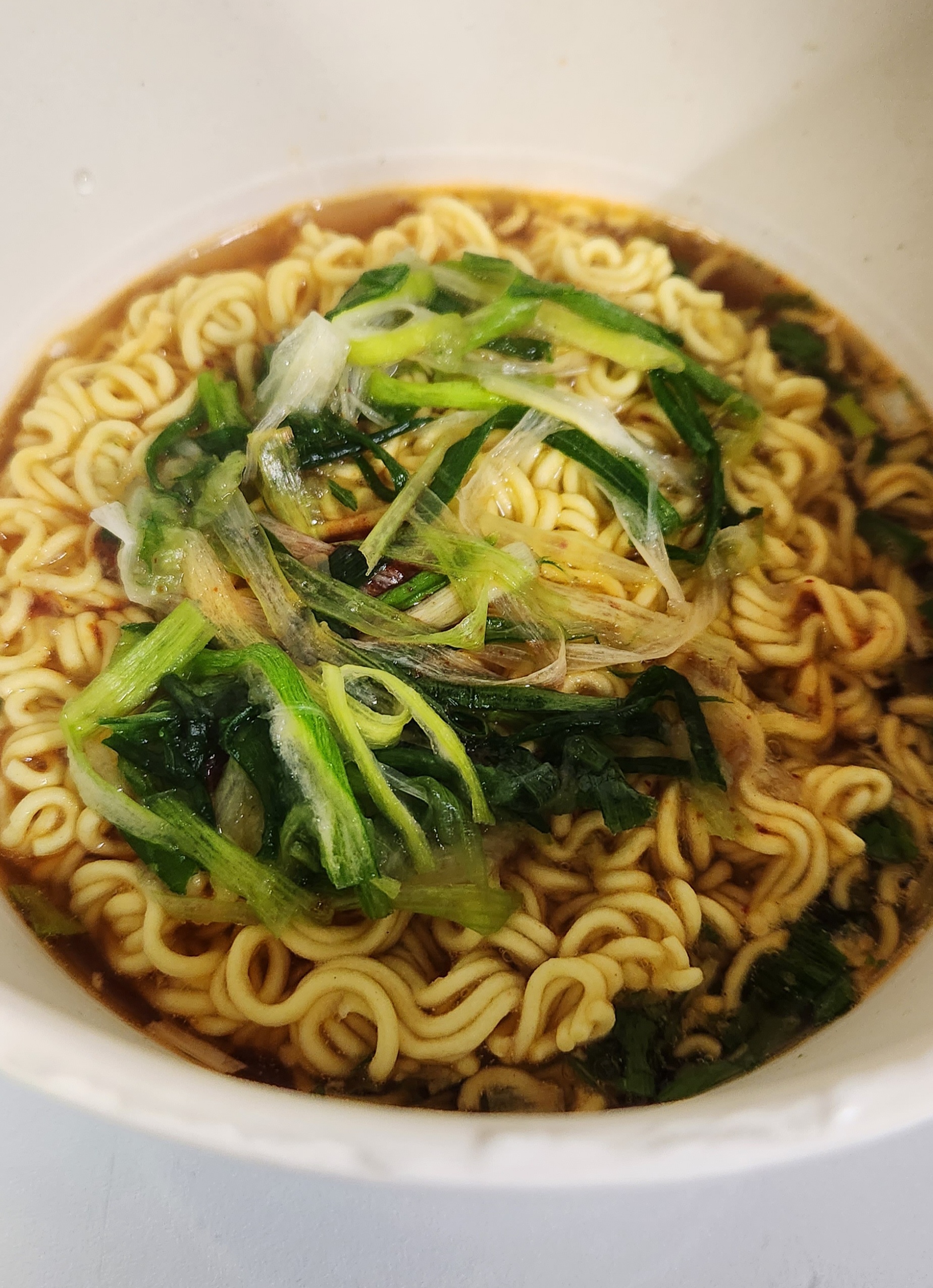살짝 덜 매운 신라면 컵라면의 국물 맛이 난다.