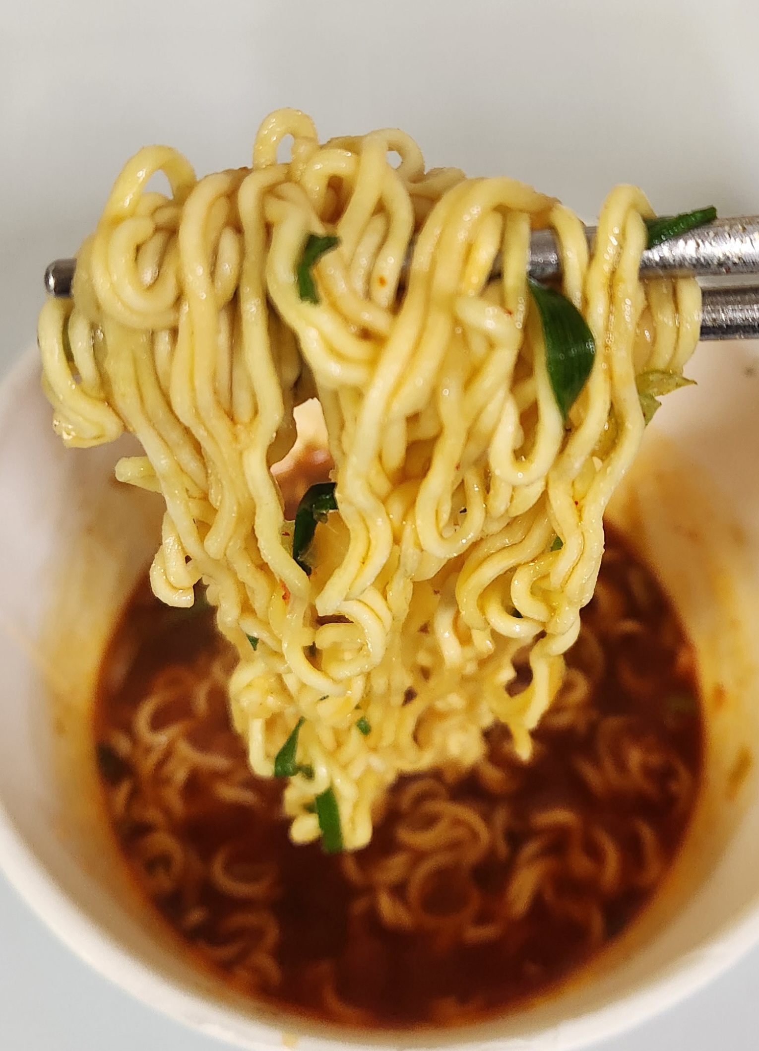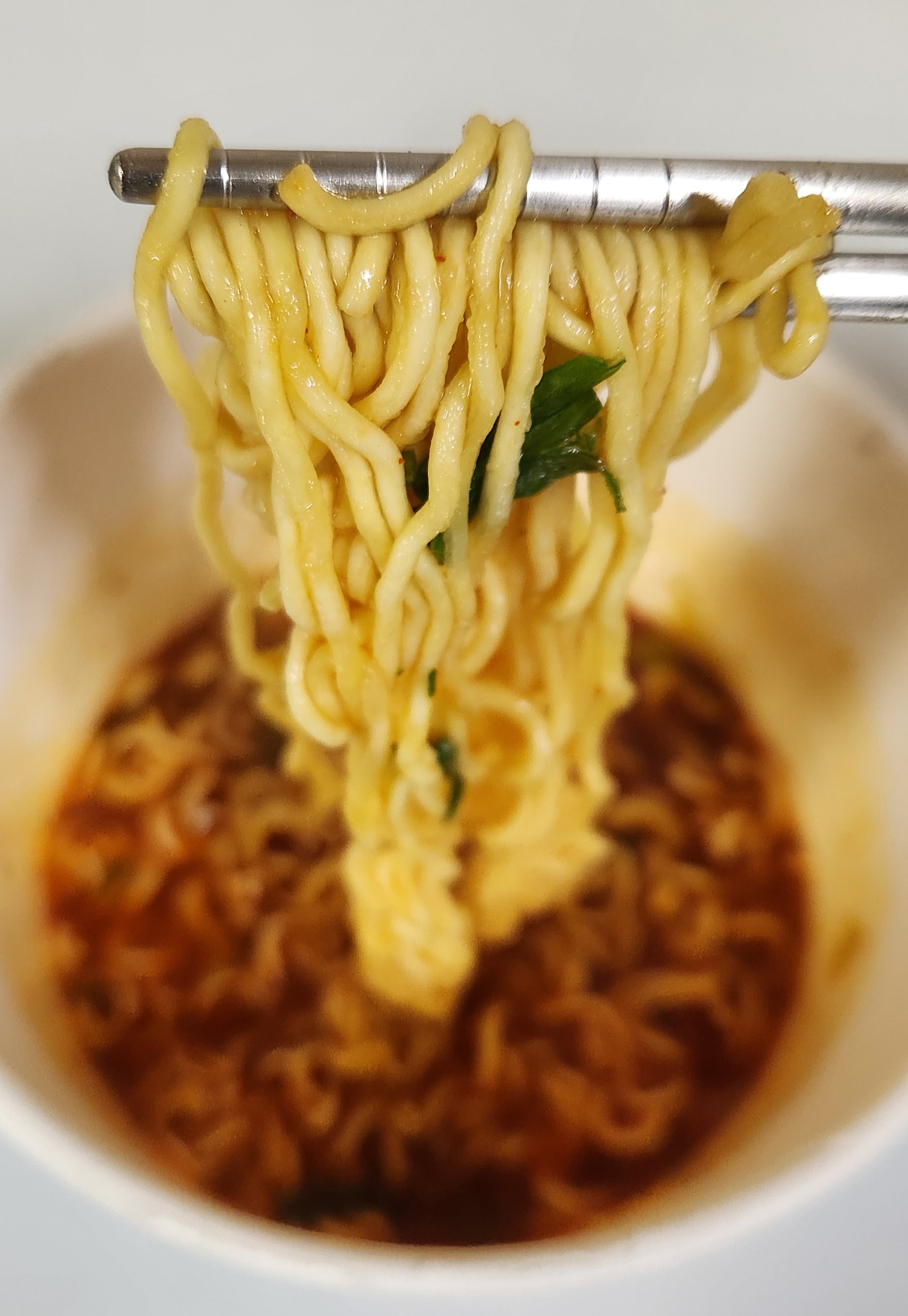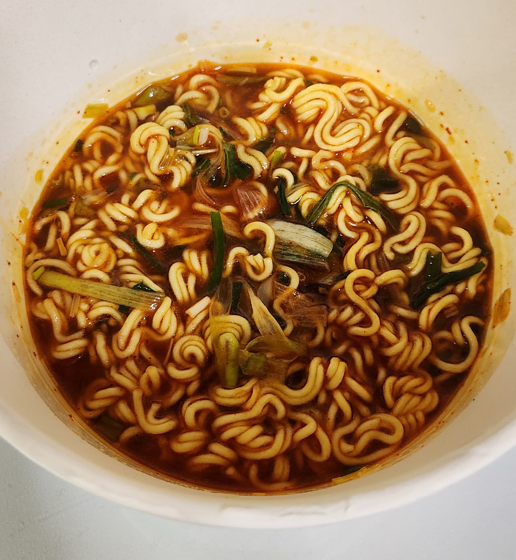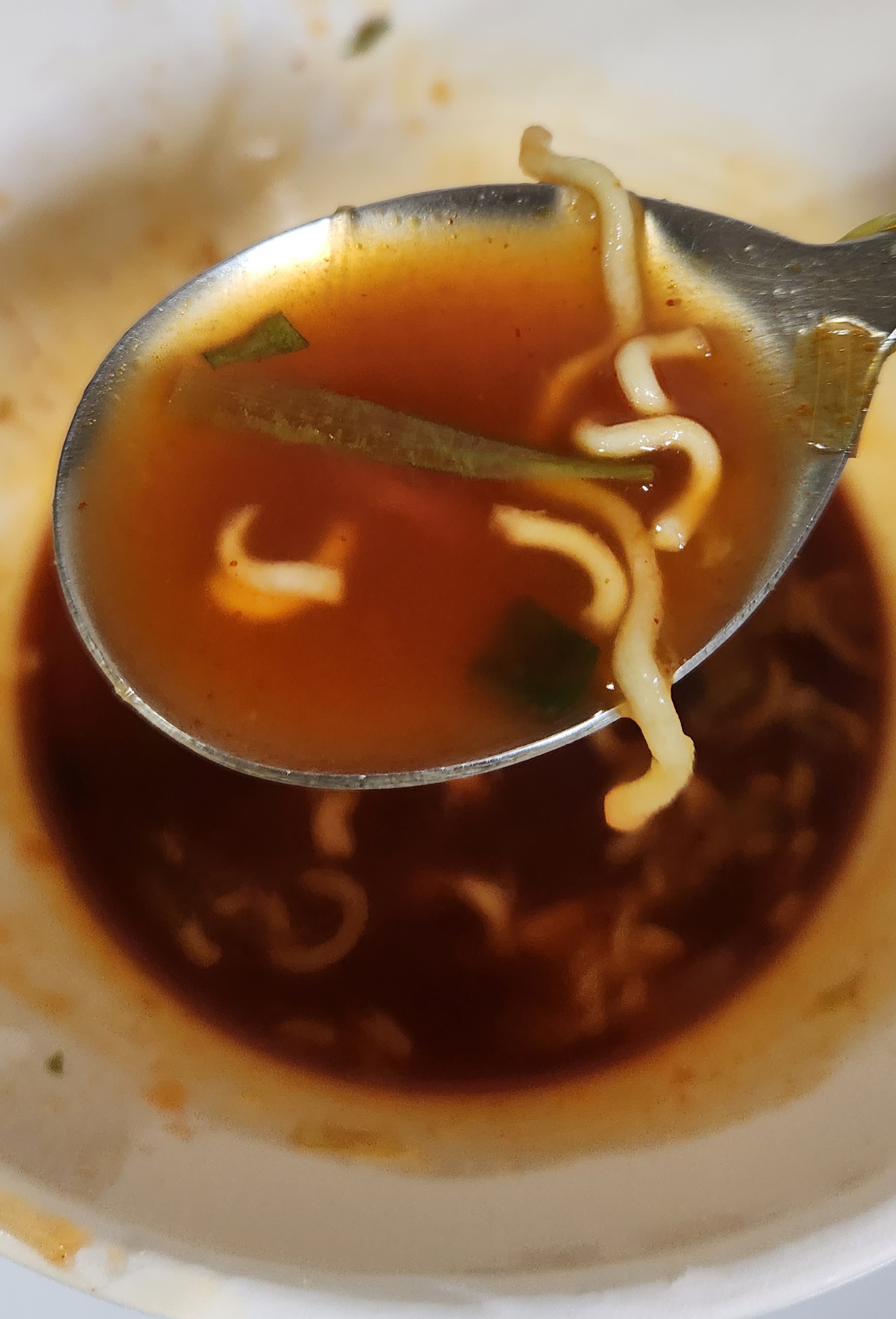 살짝 덜 매운 신라면 컵라면의 국물 맛이 난다.