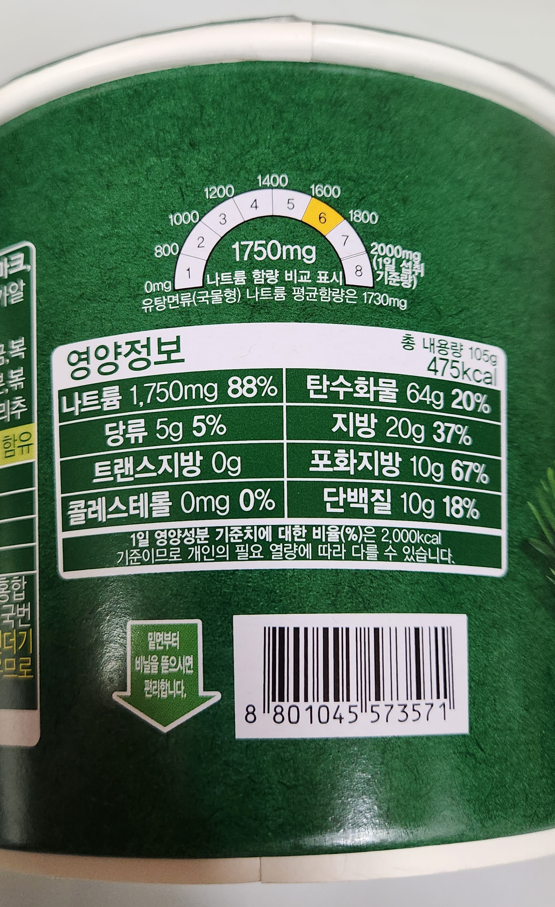 총 내용량은 105g, 칼로리는 475kcal.