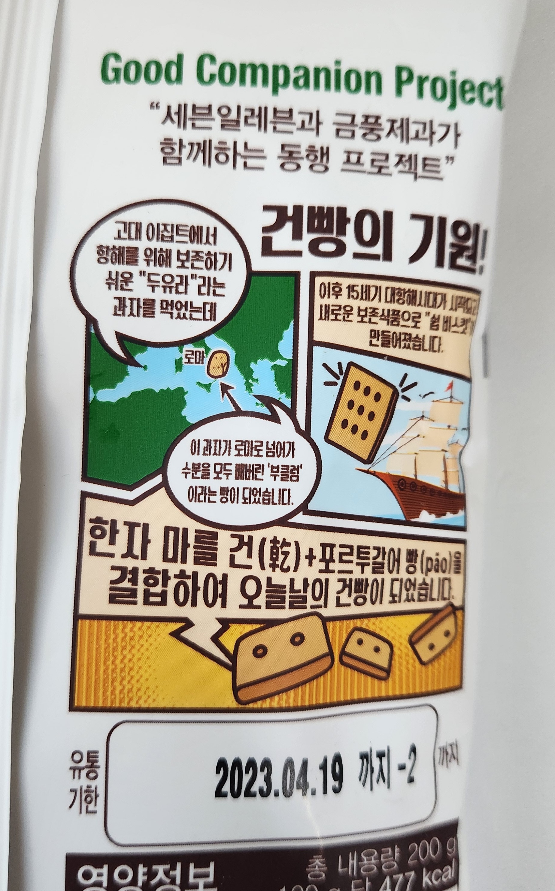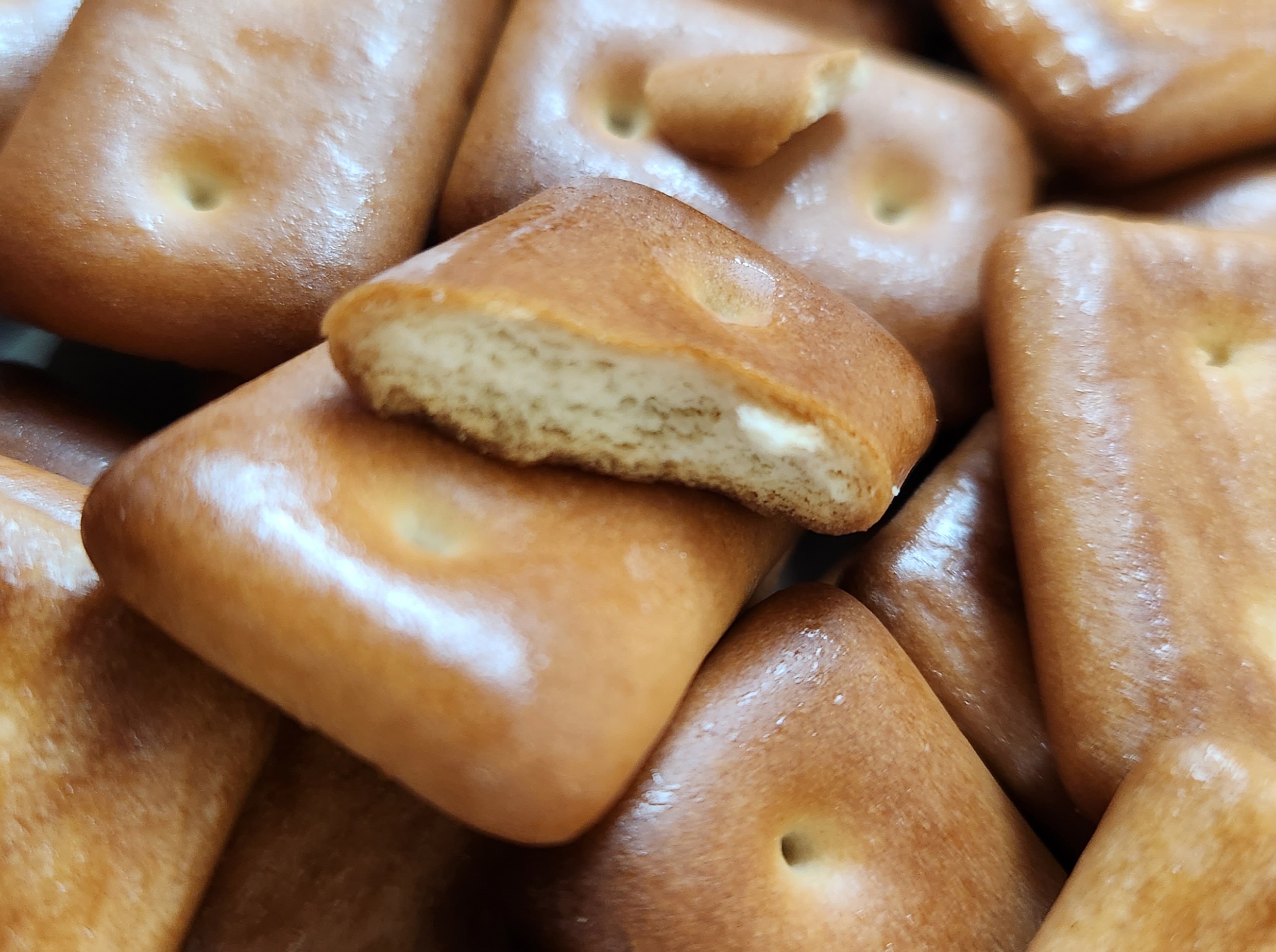 '달콤, 바삭한 건빵!'이라는 것을 보니 군대 건빵에서