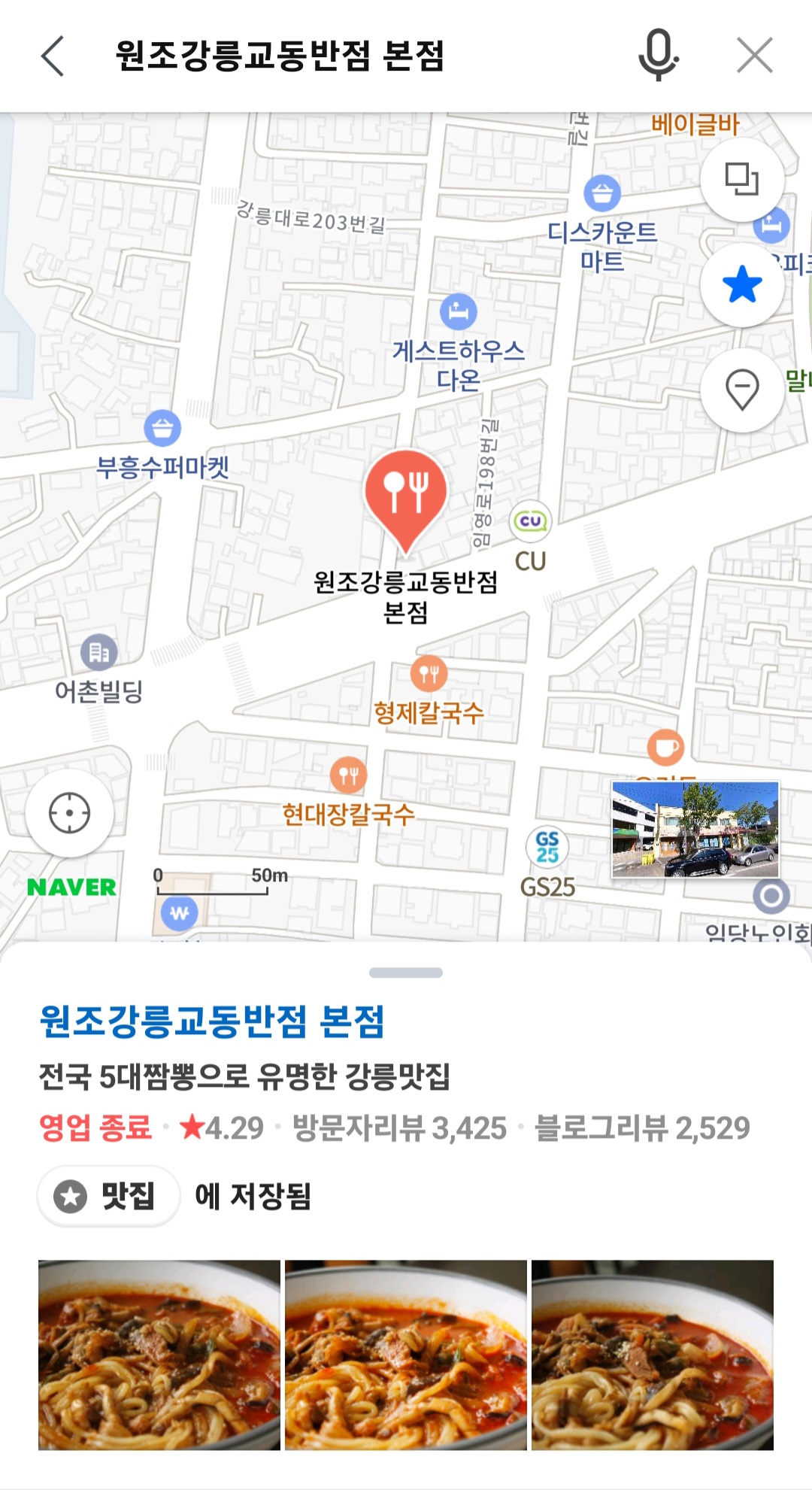 강릉 교동반점은 네이버 지도 상 전국 5대 짬뽕으로