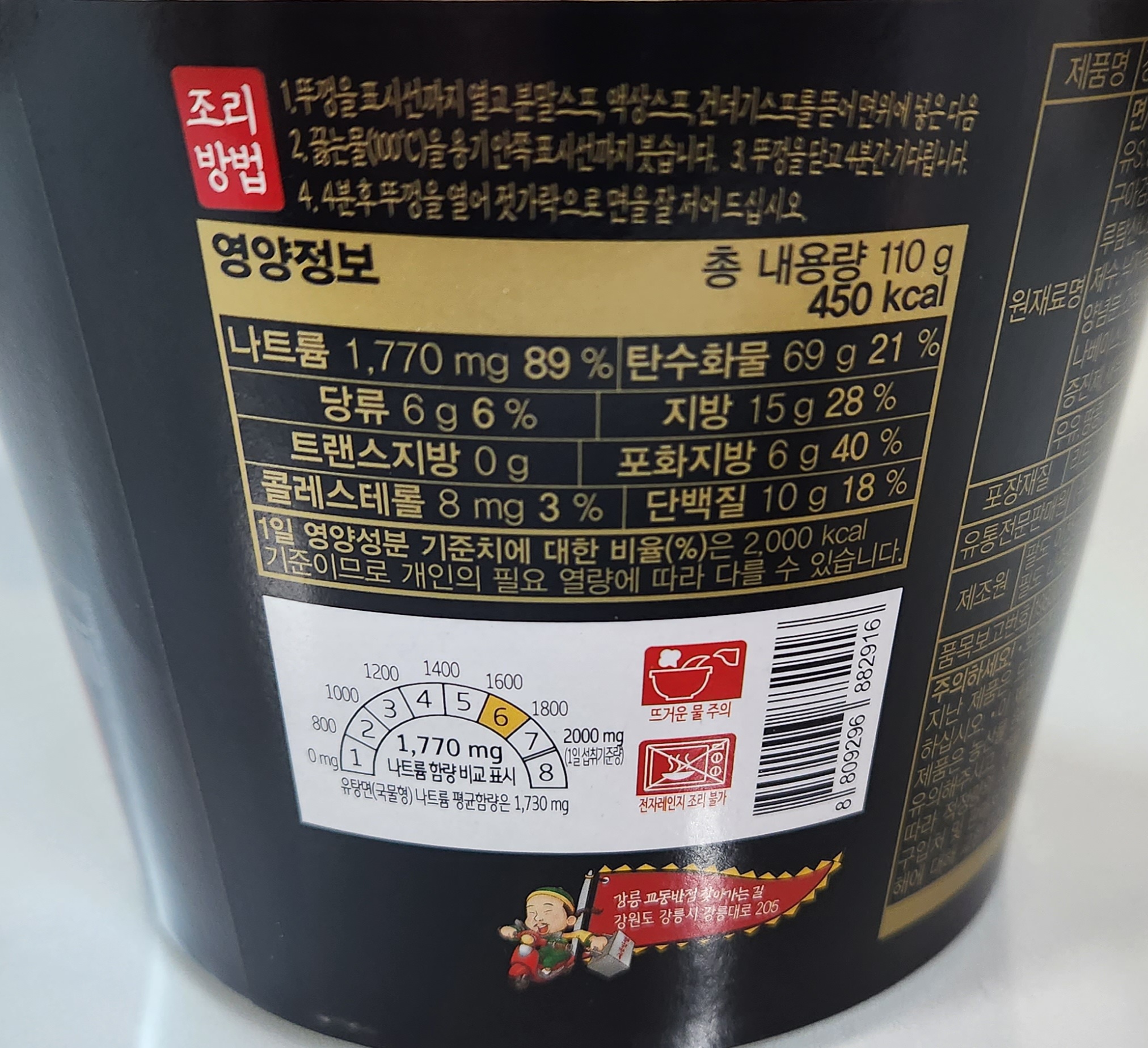 총 내용량은 110g에 칼로리는 450kcal.