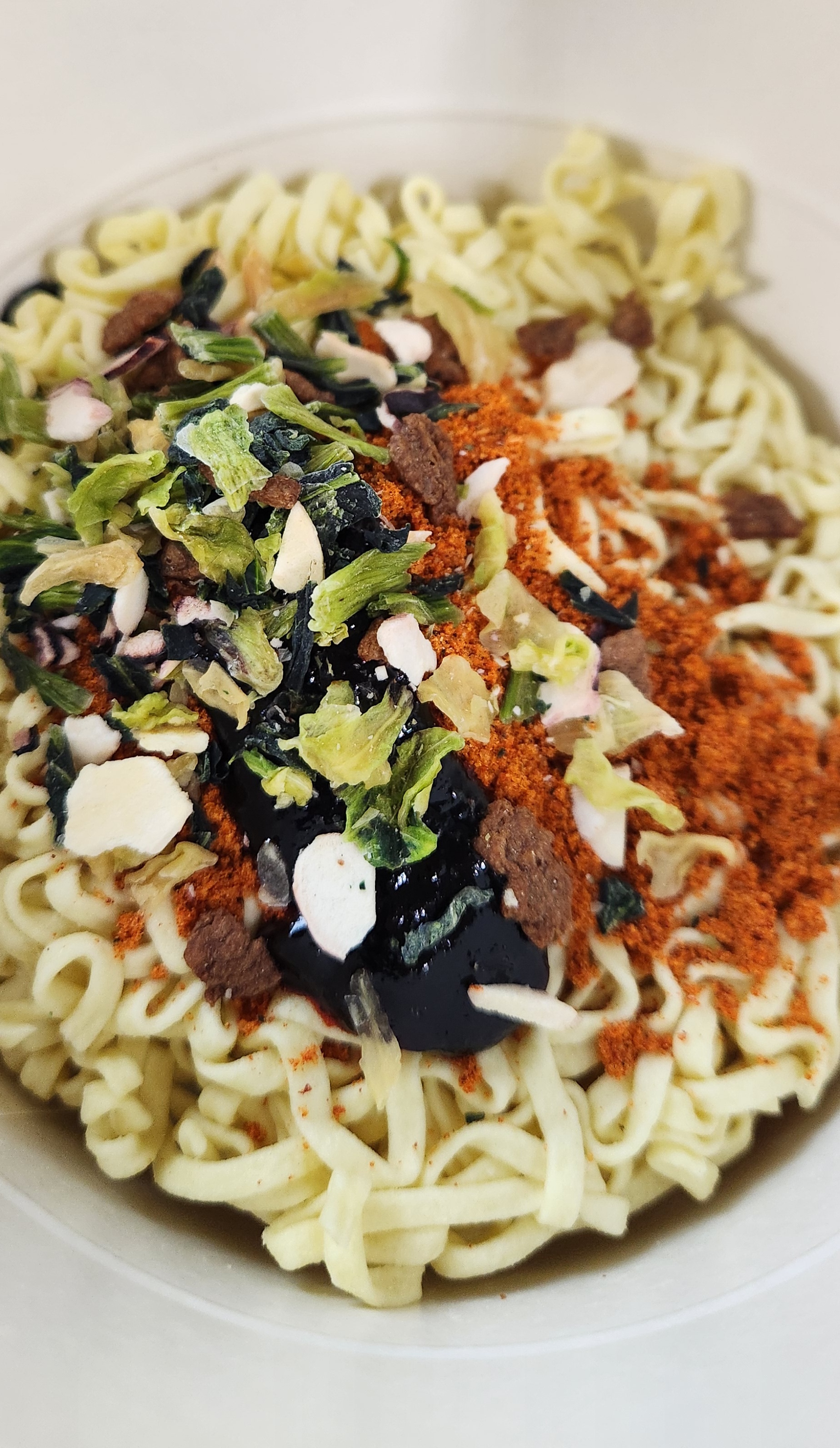 이것저것 짜깁기 해 놓은 듯한 컵라면.