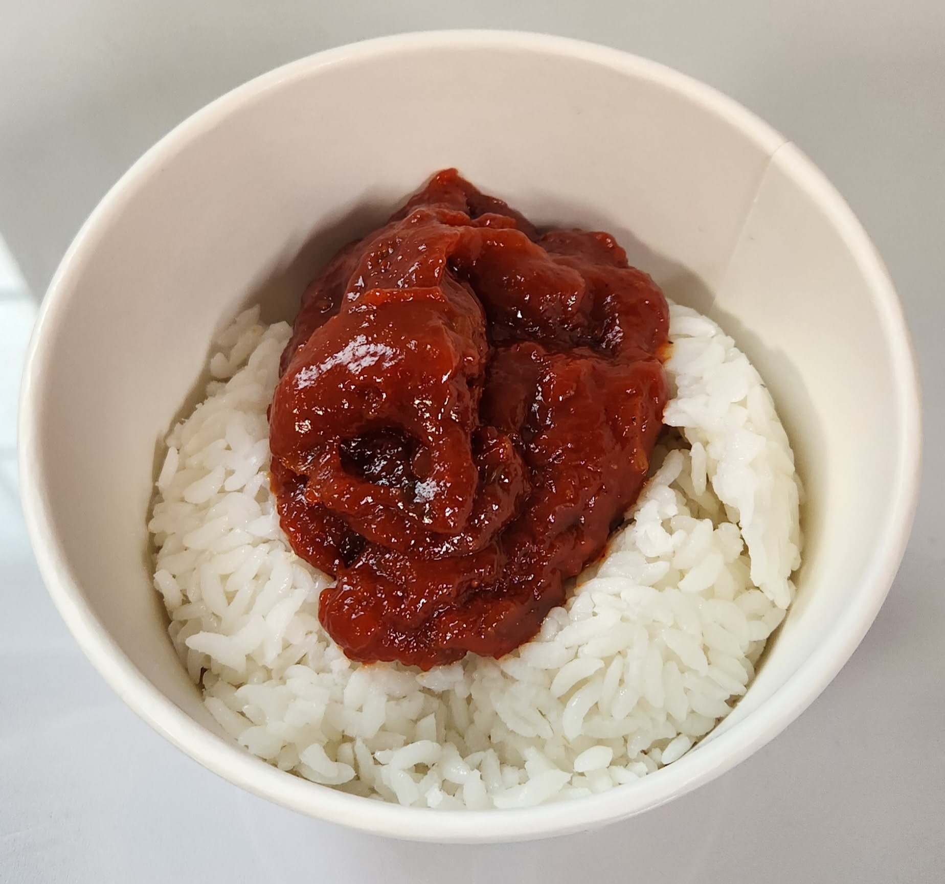 즉석밥과 소스를 용기에 담고,