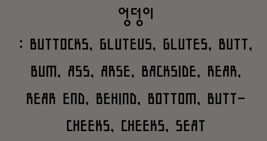 아래에서는 영어에서 엉덩이를 뜻하는 단어들과 그 단어들의 어감도 같이 알아보겠습니다.