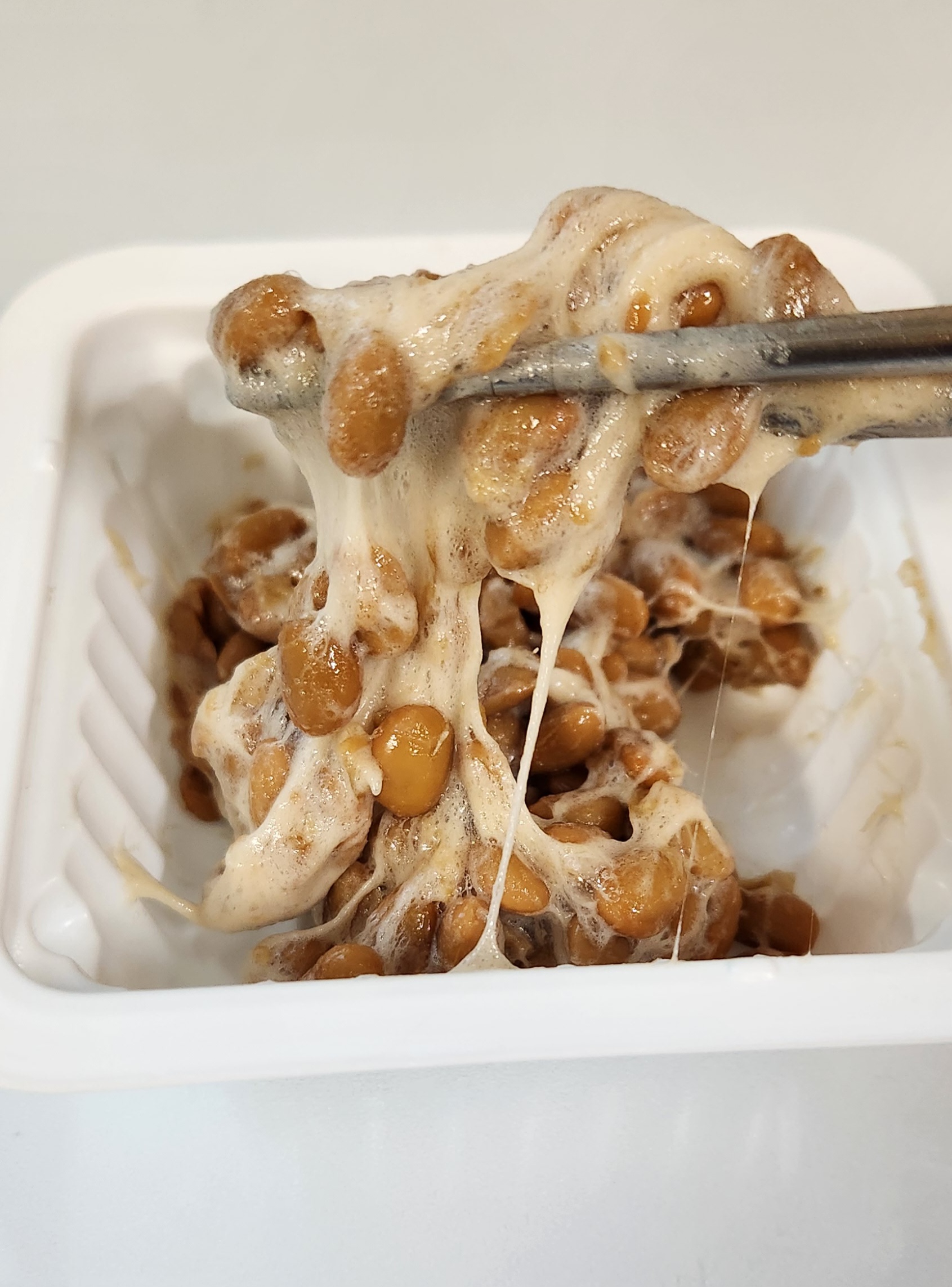 그래서 제가 낫또를 휘저어 봤습니다.