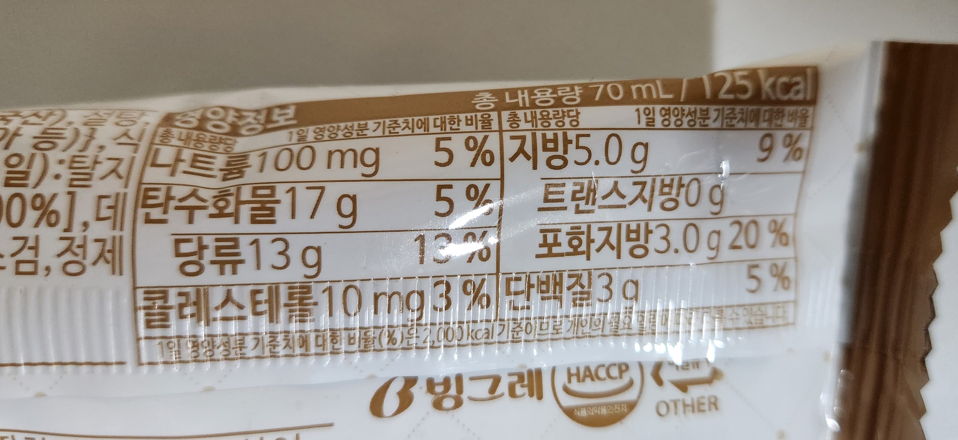 내용량은 70ml이고 칼로리는 125kcal.
