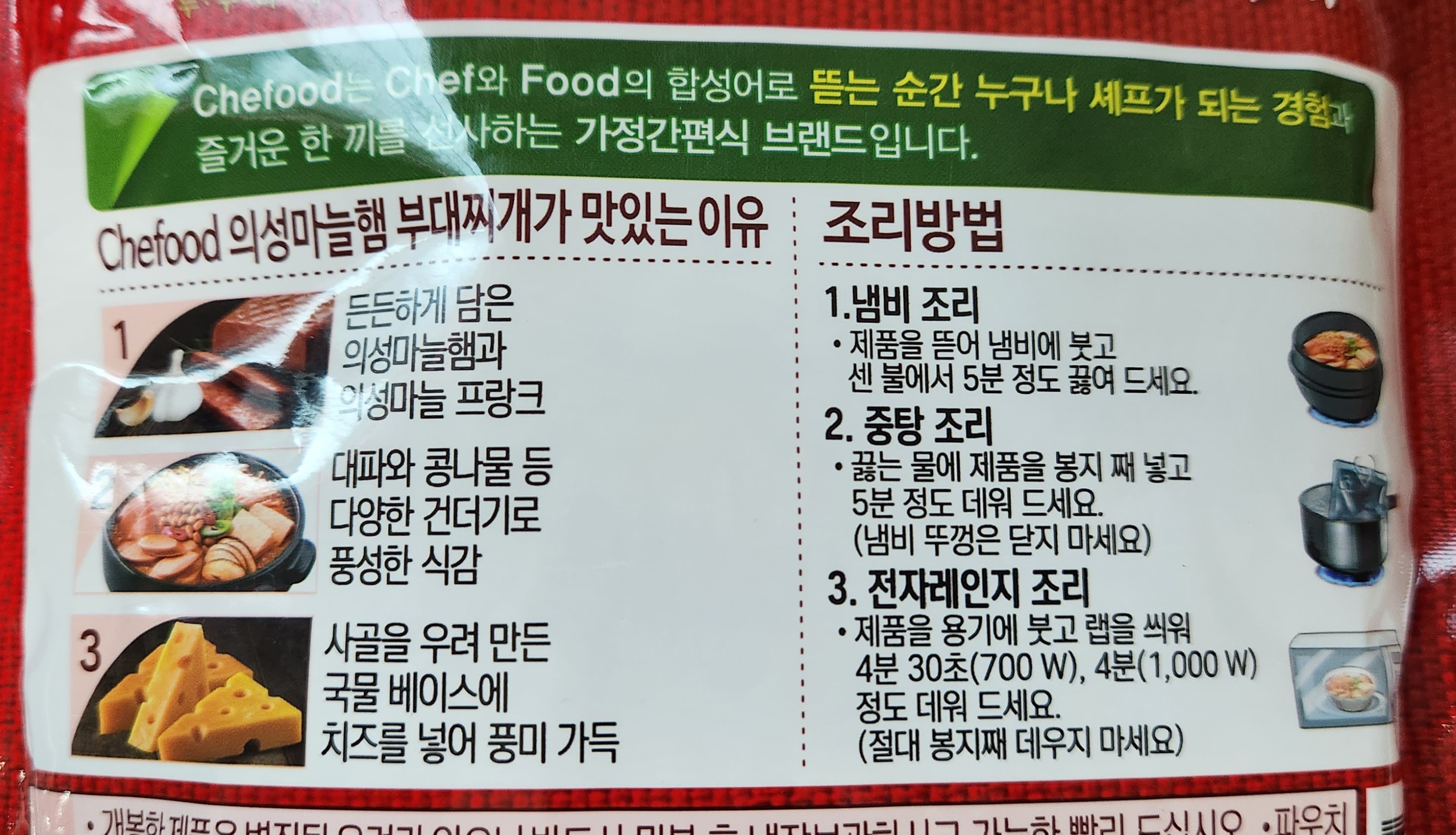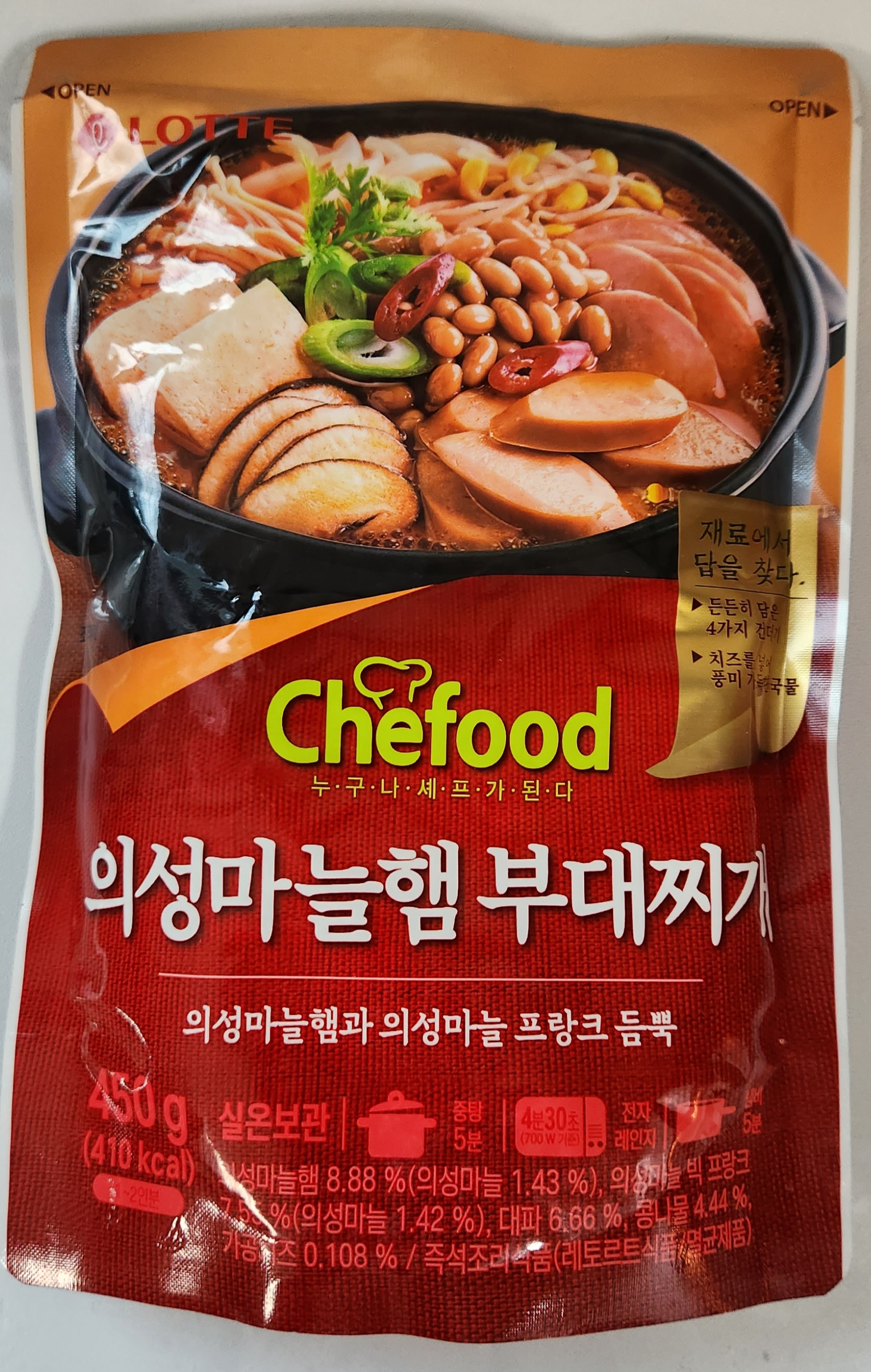 오늘은 롯데 즉석조리제품 브랜드인 쉐푸드(Chefood)에서 나온 '의성마늘햄 부대찌개' 도전해 봤다.