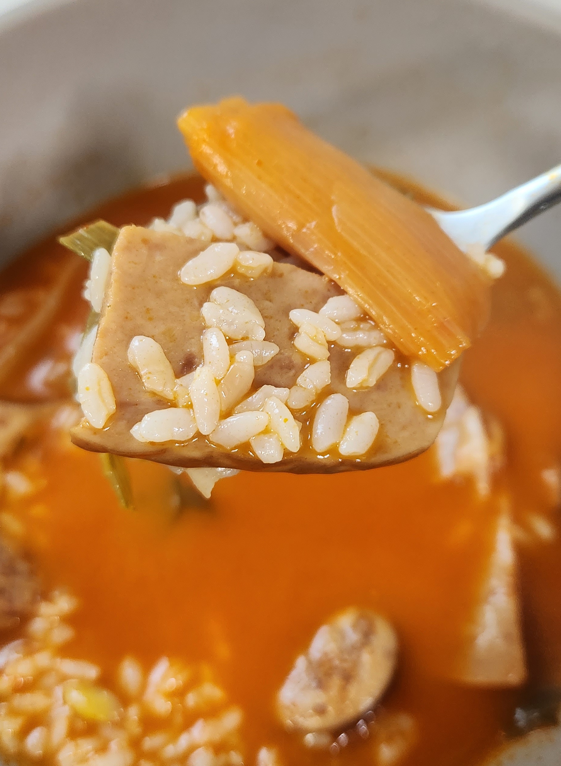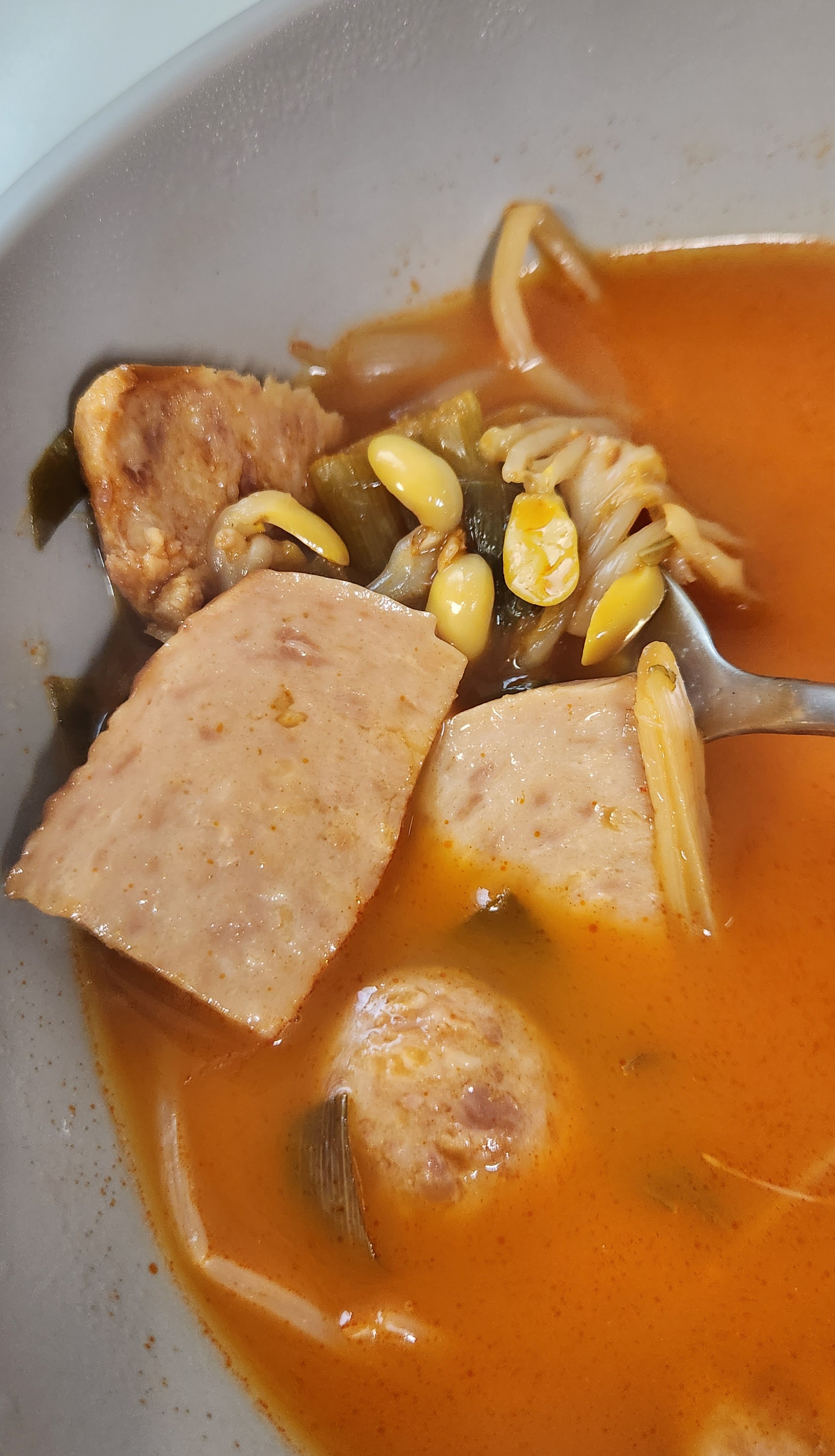 국물 양이 많기 때문에 스팸이나 다른 재료를
