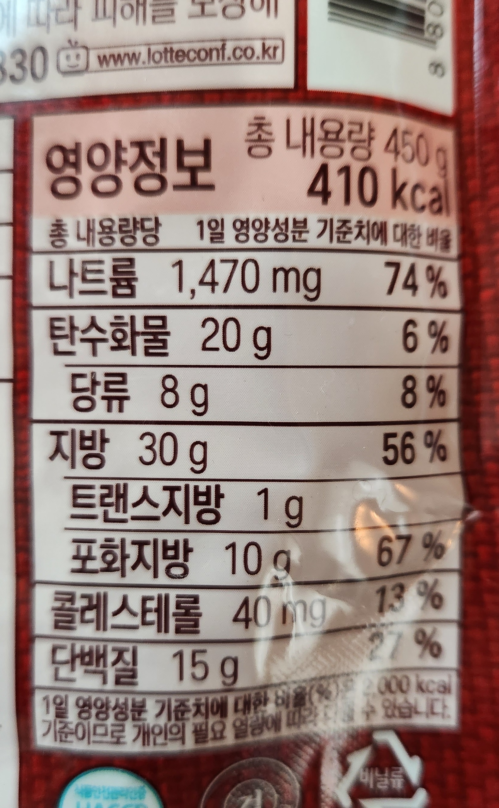총 내용량 450g에 칼로리는 410kcal.