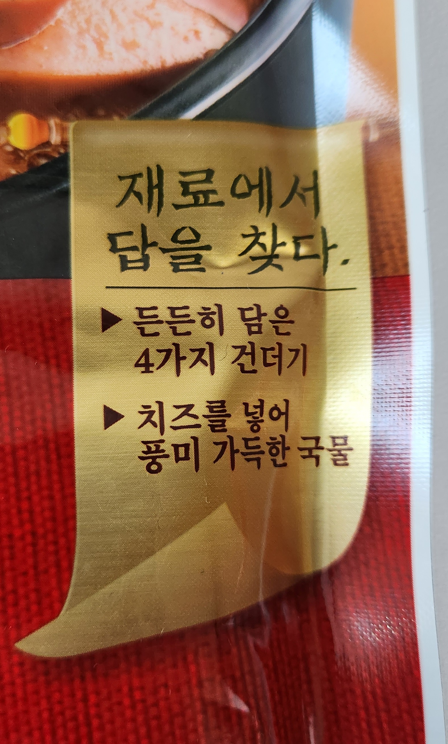 4가지 건더기는 의성마늘햄, 의성마늘 빅 프랑크, 대파, 콩나물이겠고,