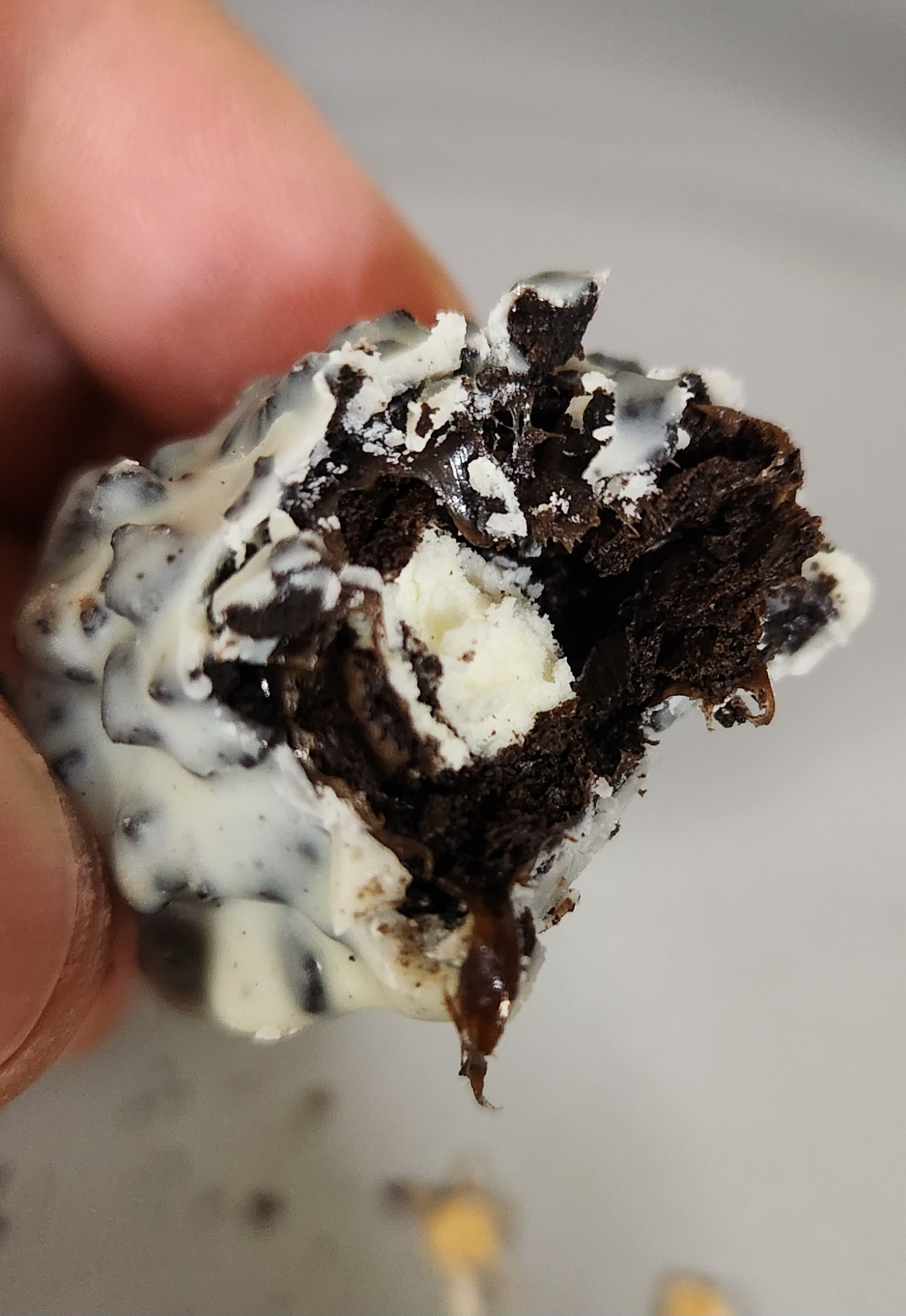 다크초콜릿 + 다크초콜릿 맛 과자 + 화이트 크림의 조화.