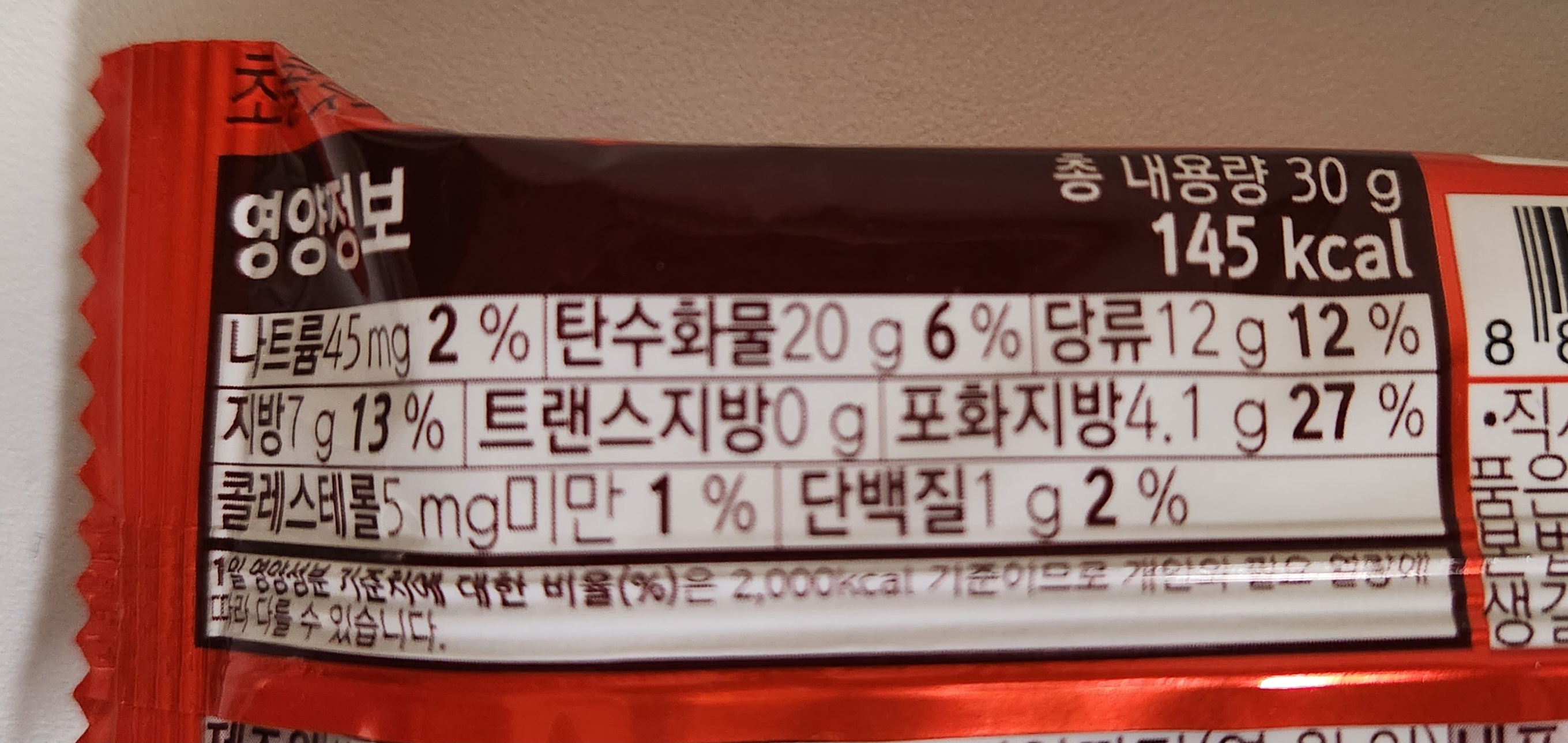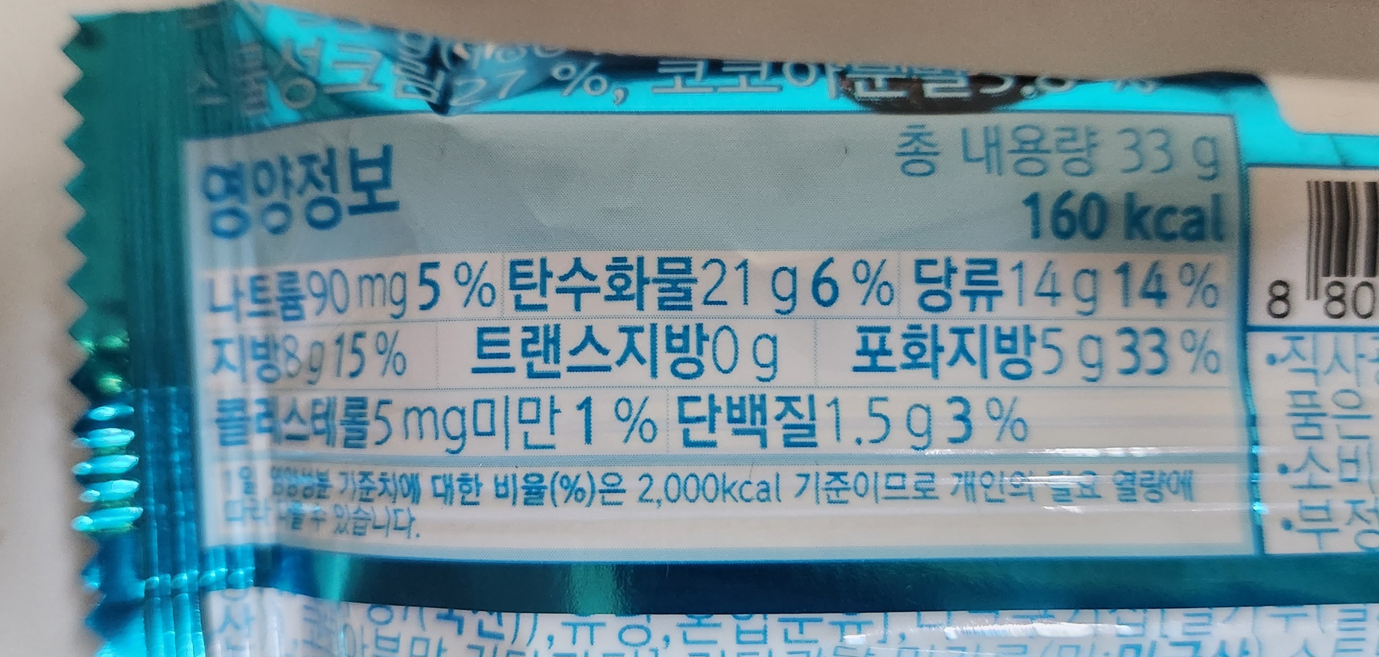 각각 30g, 33g, 33g의 내용량에 145kcal, 160kcal, 155kcal 칼로리.