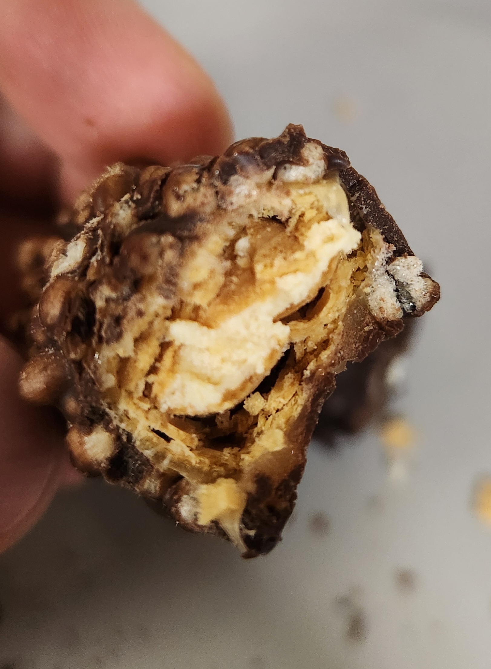바삭한 과자에 싸여진 크림이 들어 있어 식감과 맛이 나쁘지 않다.