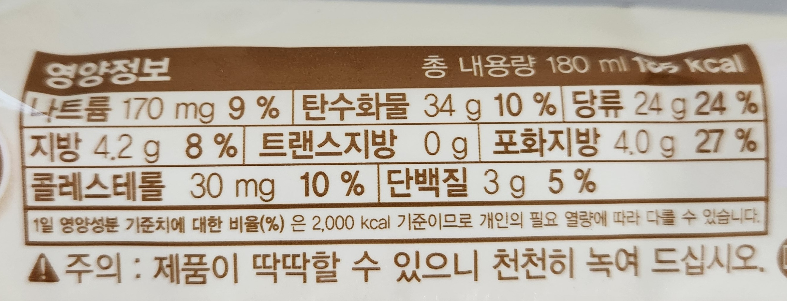 바 아이스크림이 대게 70 ~ 80ml이니 양이 2배가 조금 넘는다.
