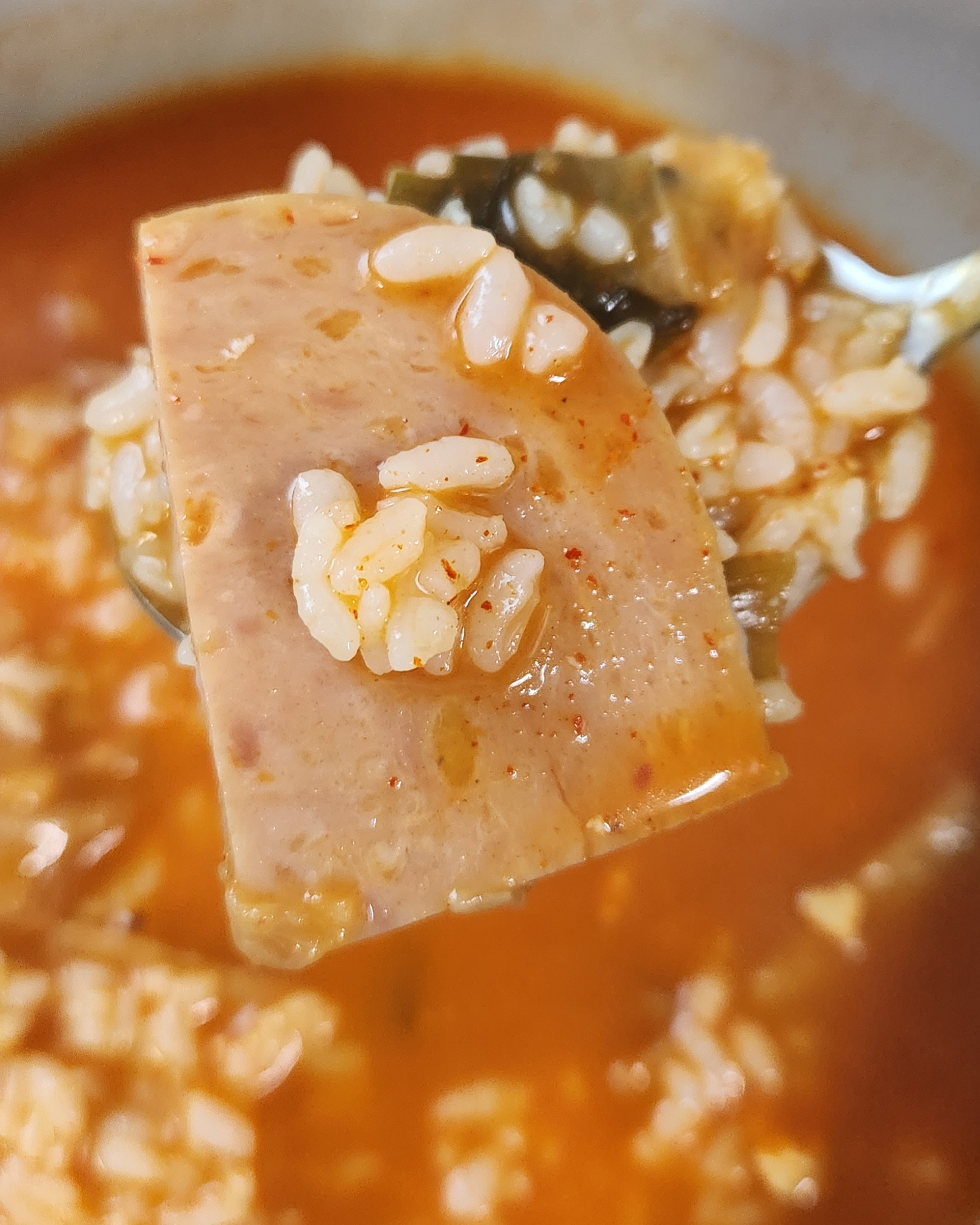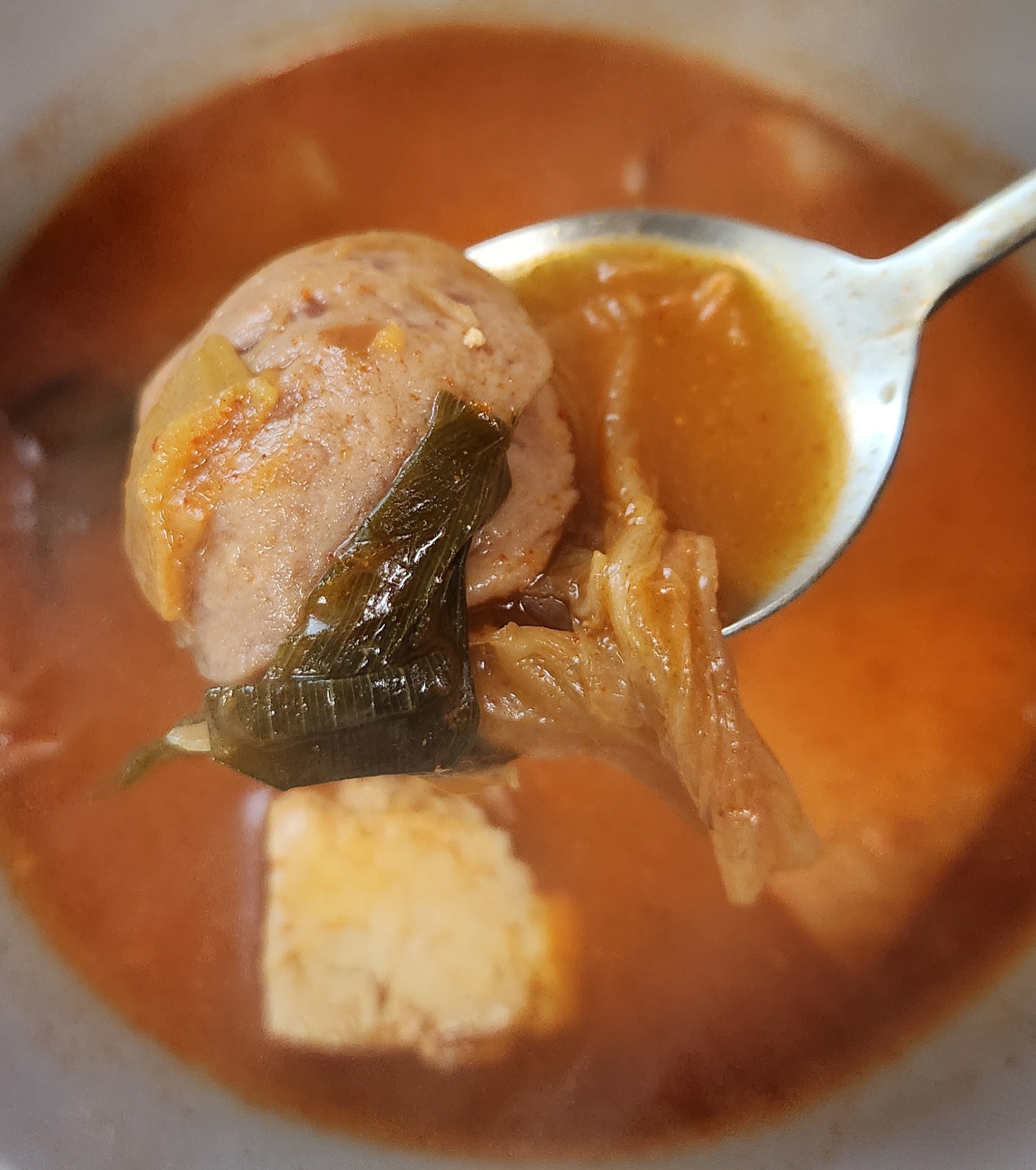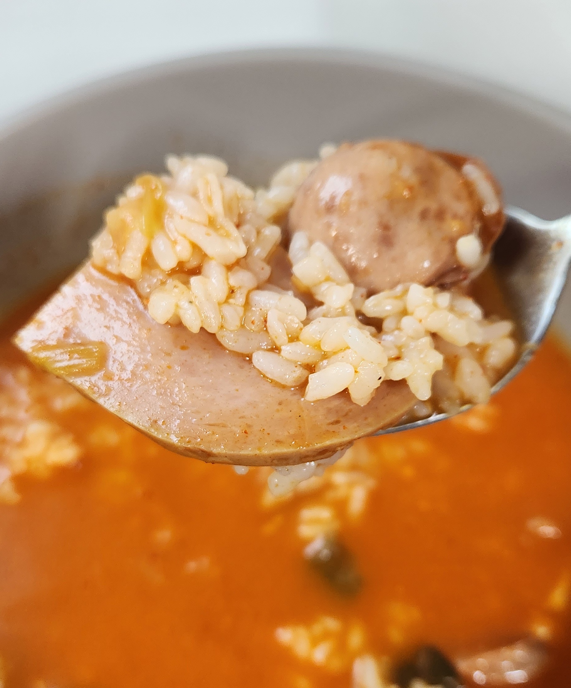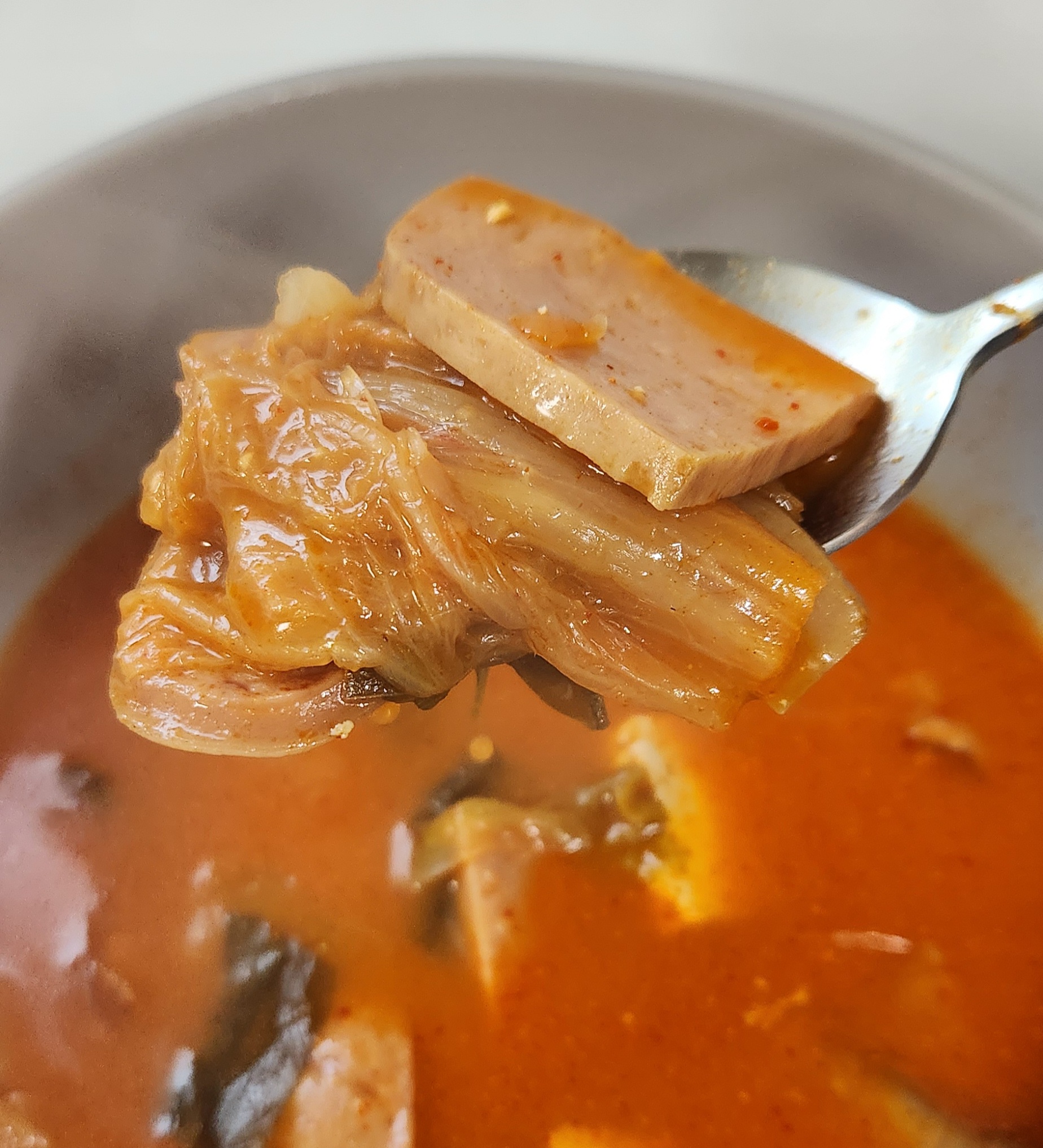 개인적으로 부대찌개 맛의 핵심은 재료로 쓰는 햄과 소시지의 퀄리티라고 생각한다. 그런 면에서 이 스팸부대찌개는 맛이 검증된 스팸 햄과 맛있는 부대찌개에서는 어김없이 들어가는 소시지를 써서 맛있는 부대찌개의 90% 자격요건을 충족.
