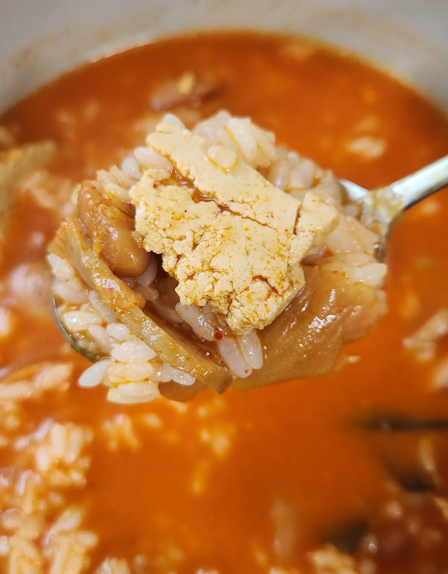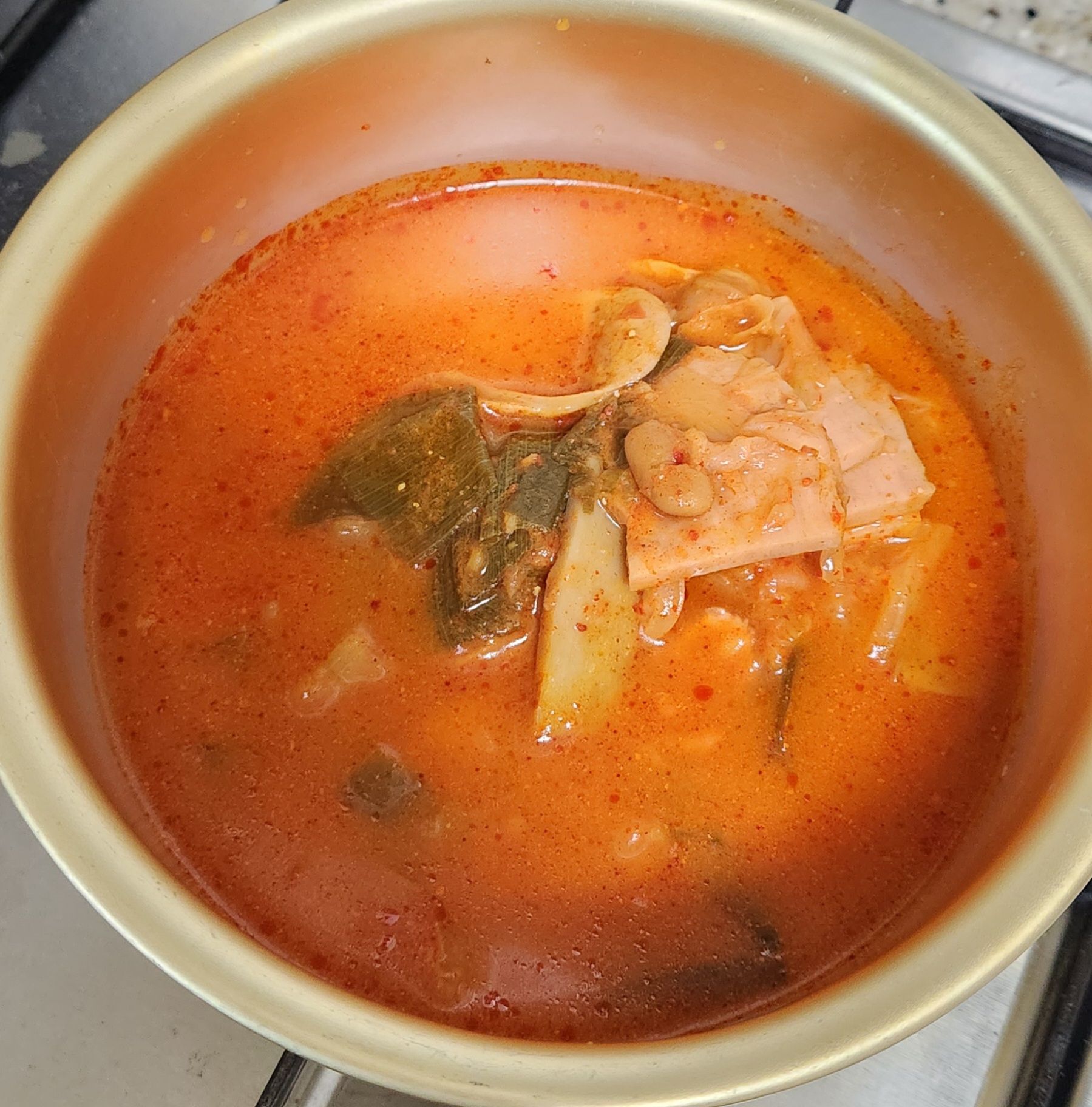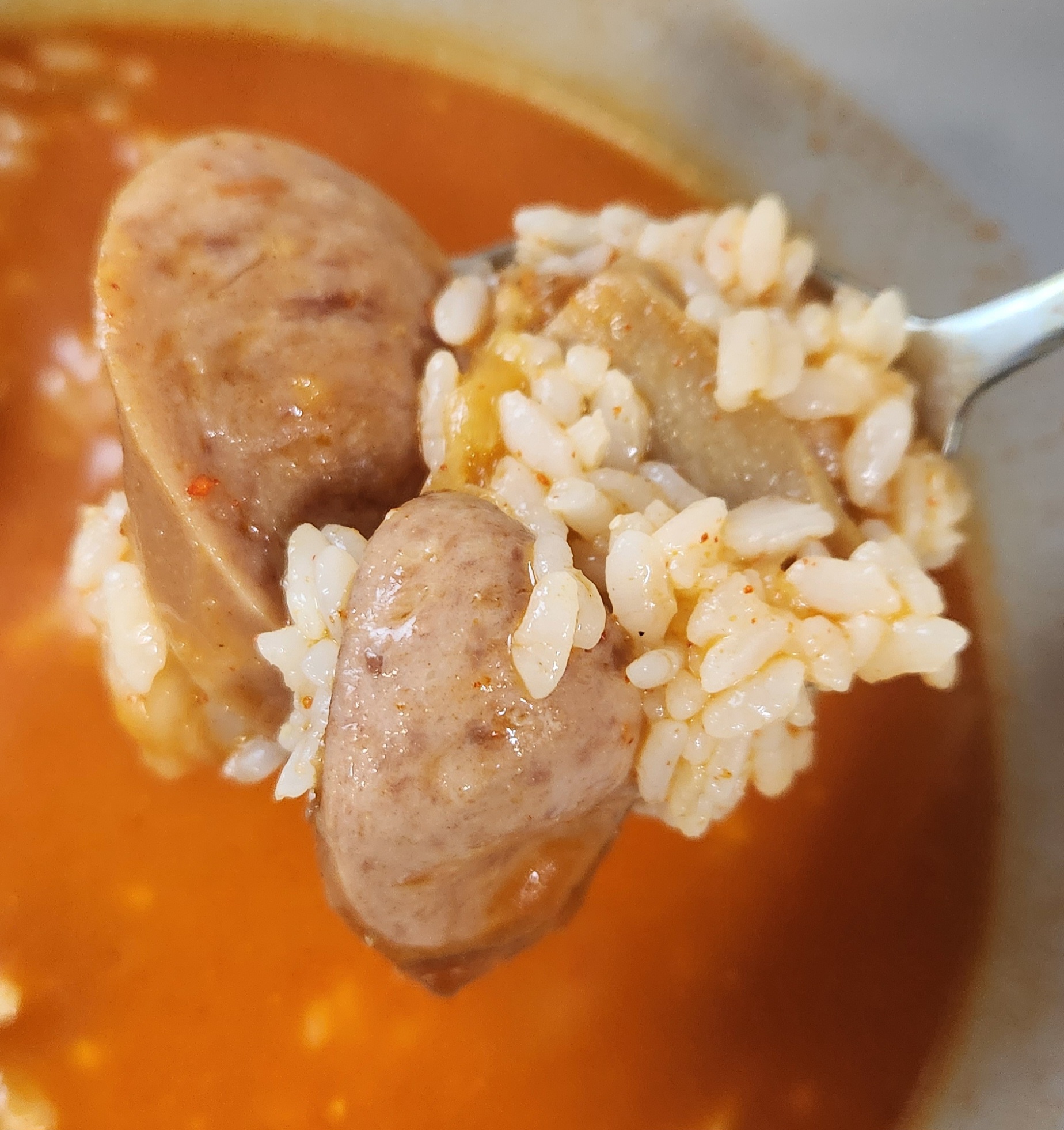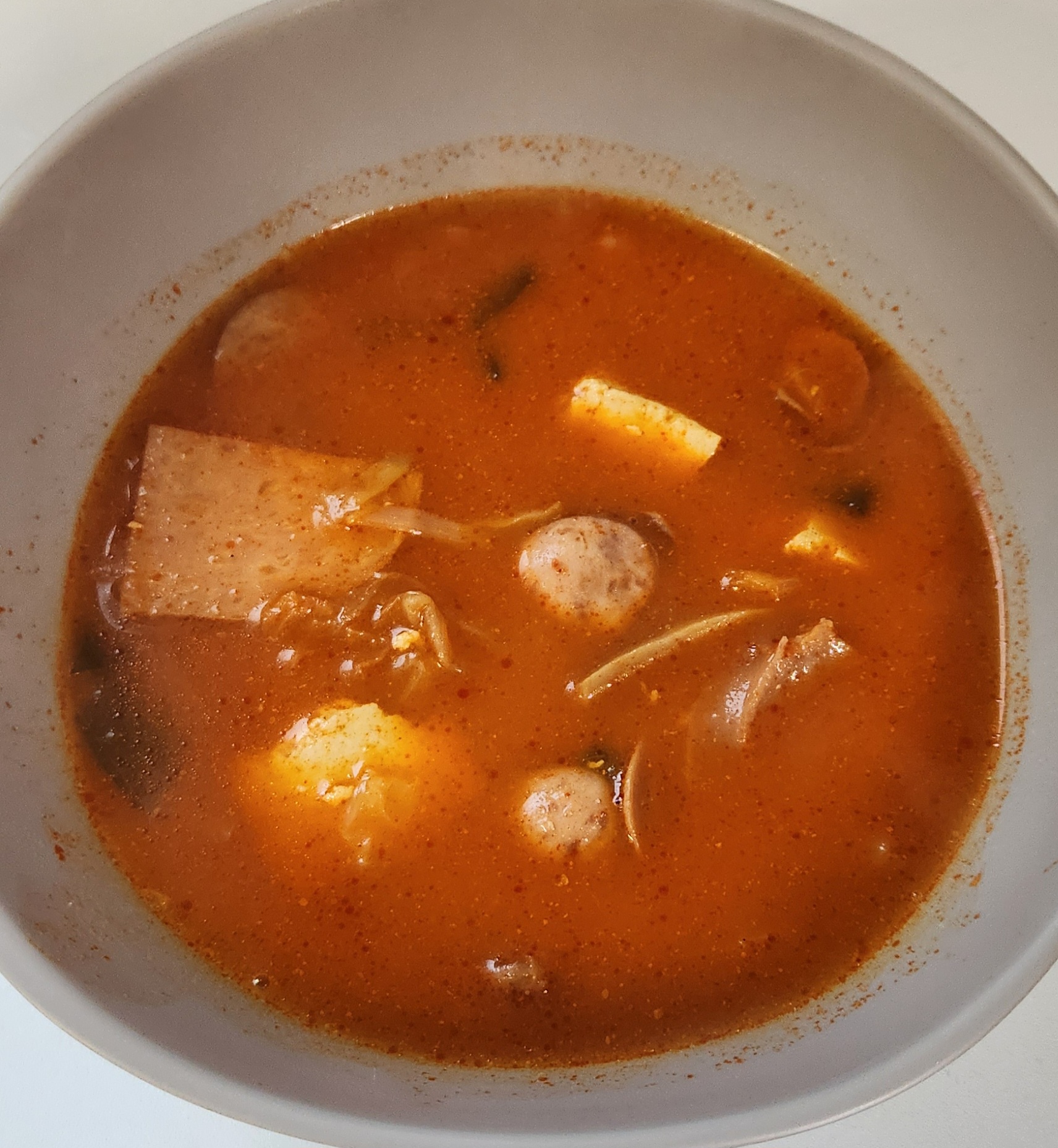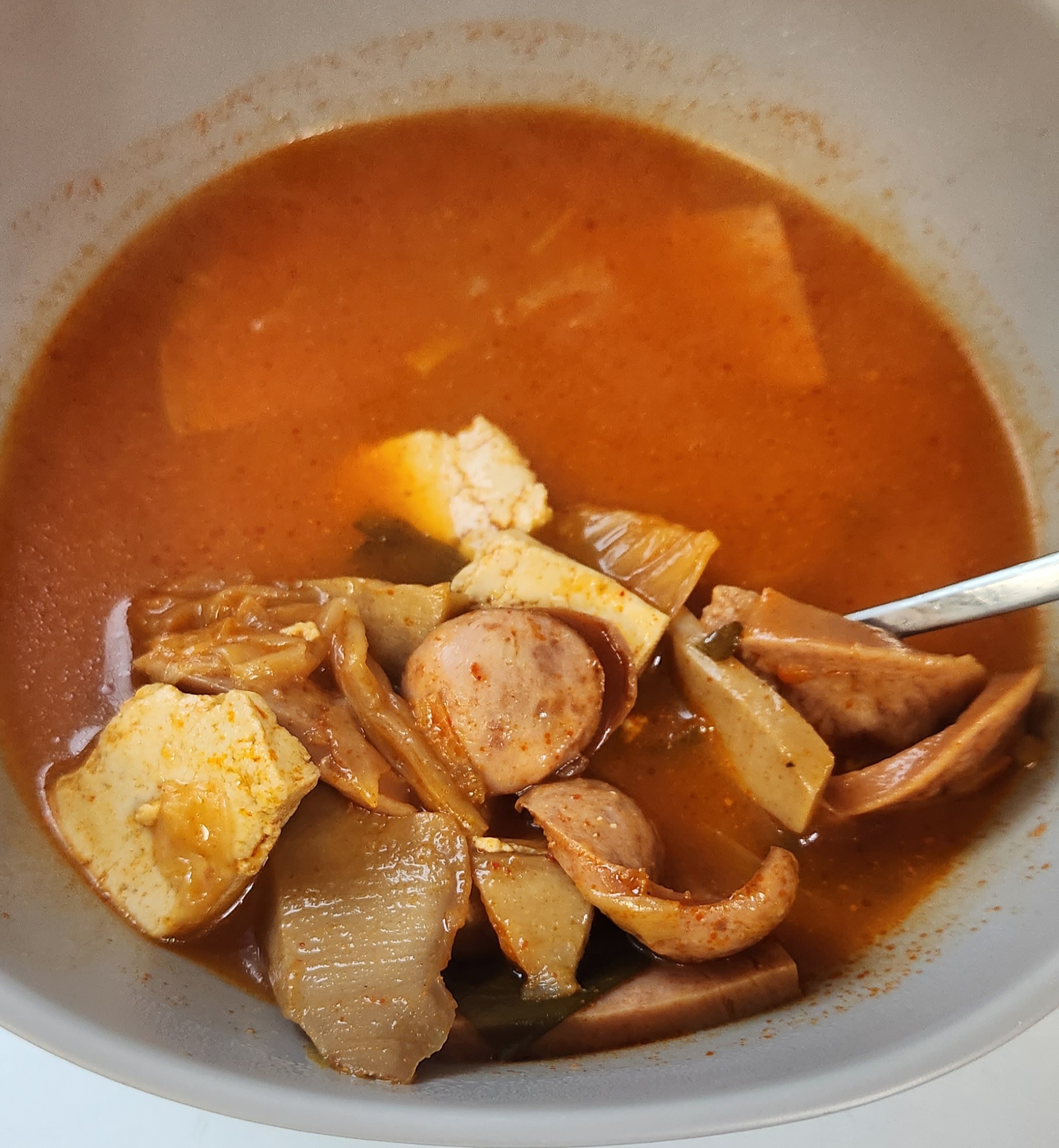 개인적으로 부대찌개 맛의 핵심은 재료로 쓰는 햄과 소시지의 퀄리티라고 생각한다. 그런 면에서 이 스팸부대찌개는 맛이 검증된 스팸 햄과 맛있는 부대찌개에서는 어김없이 들어가는 소시지를 써서 맛있는 부대찌개의 90% 자격요건을 충족.