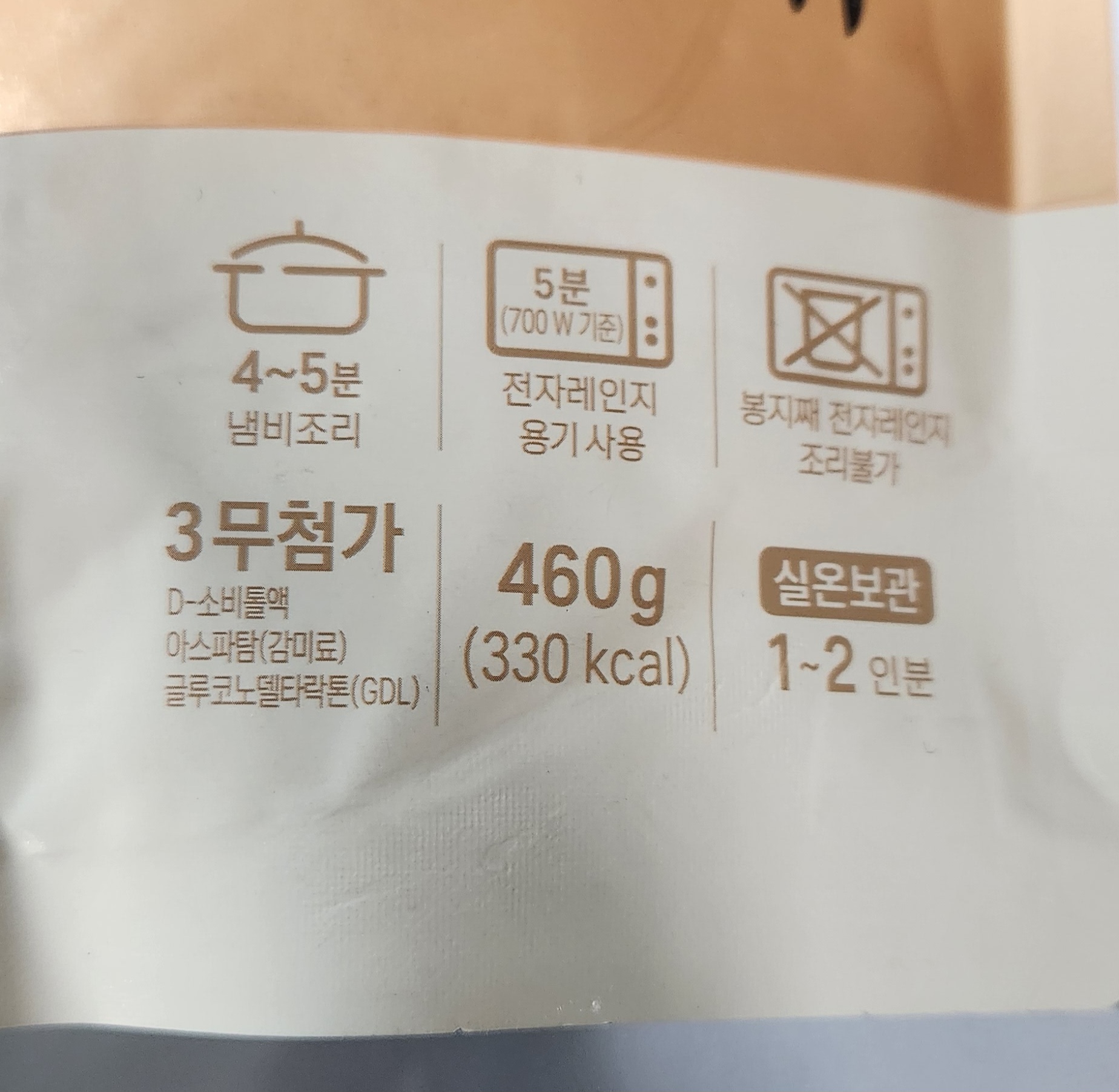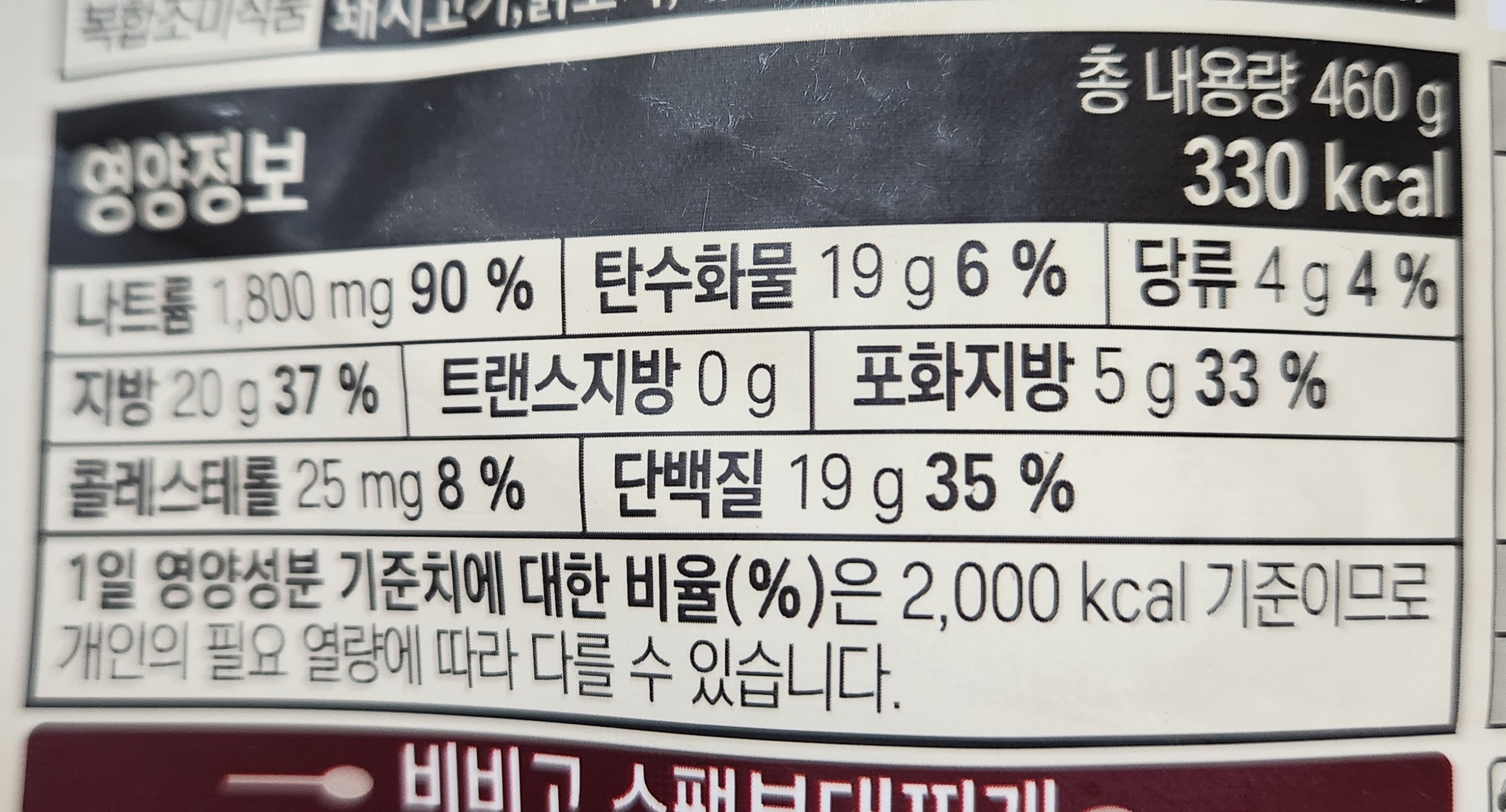460g의 용량에 330kcal의 칼로리. 먹는 사람의 양에 따라 1~2인분의 양이다.