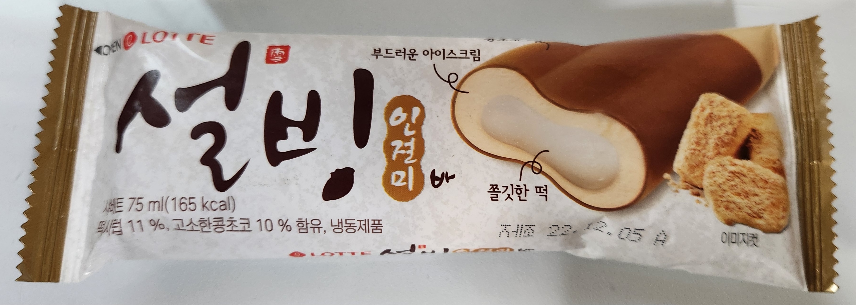 아이스크림 할인 매장에서 600원을 주고 구입한 '롯데 설빙 인절미바'.