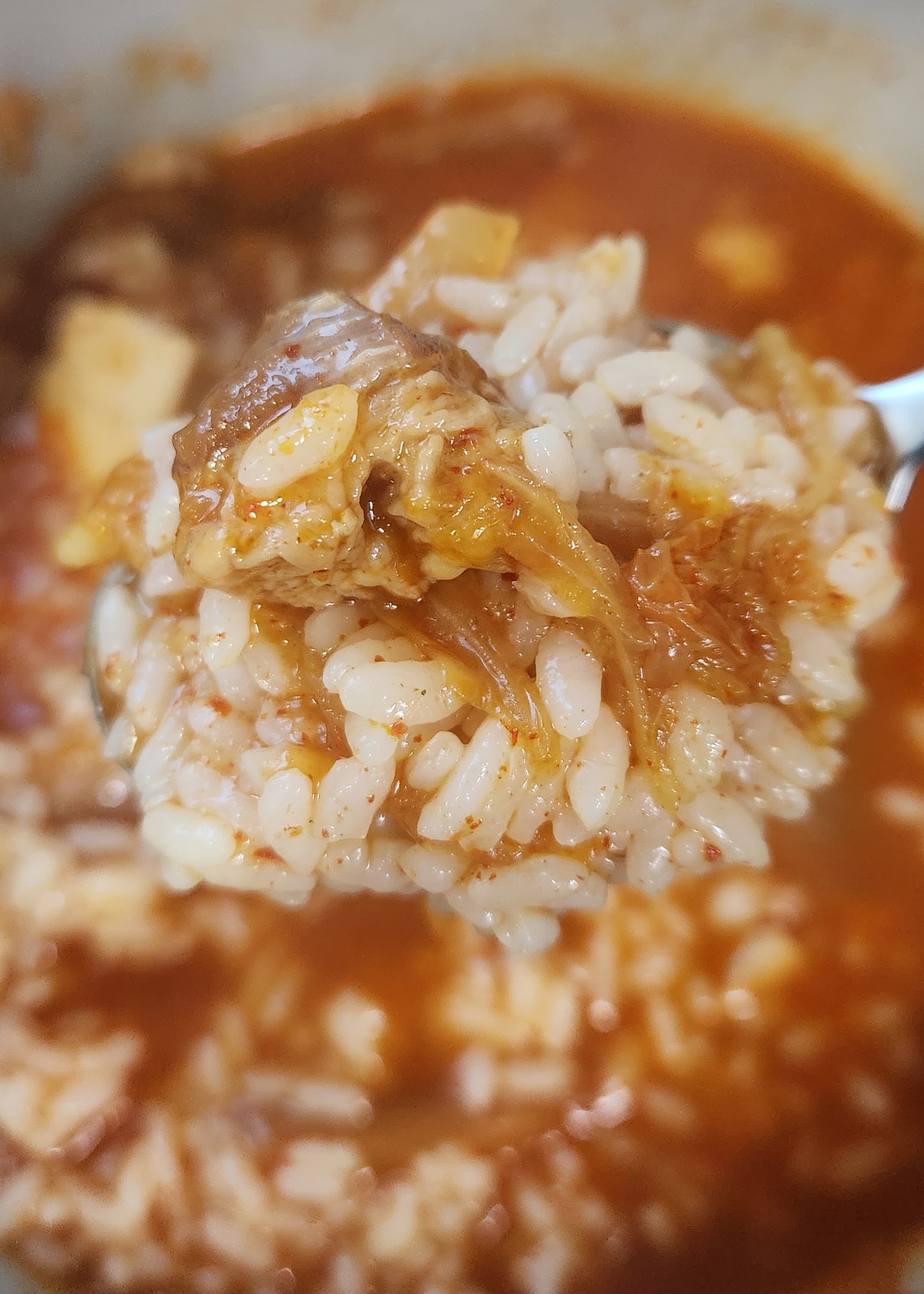 사골농축액 덕분인지 시원하고 잘 익은 김치로 김치찌개를
