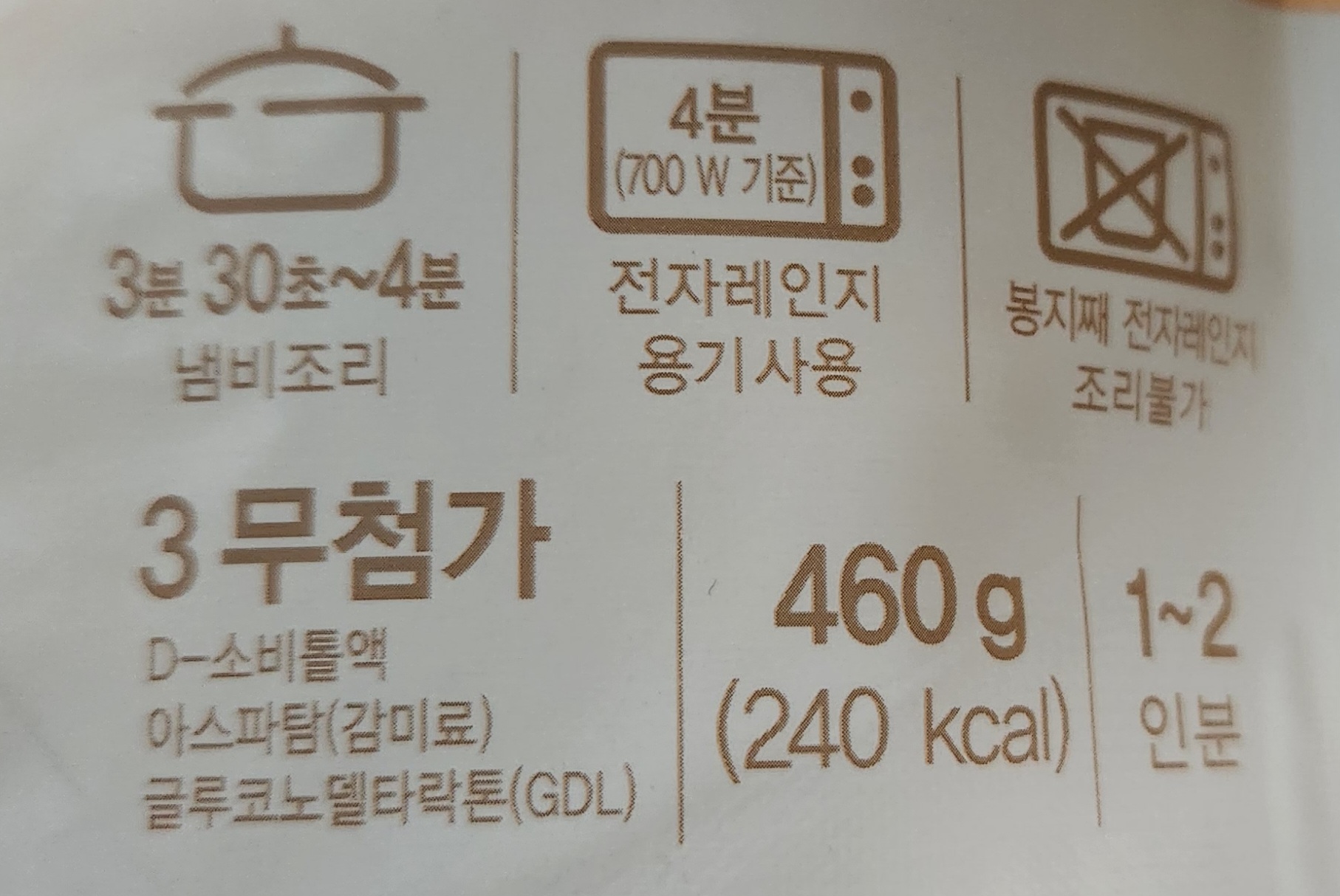 먹는 사람의 양에 따라 1~2인분이며 다른 즉석조리식품들과