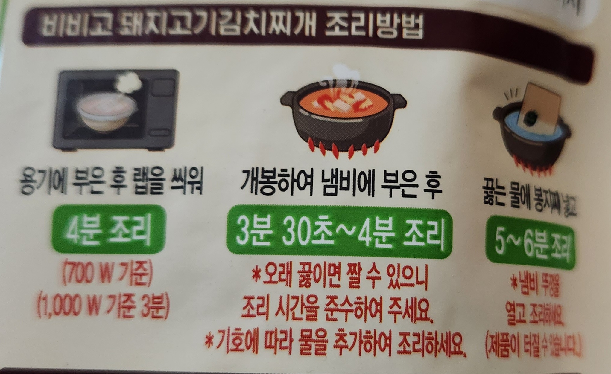 제품 포장 뒷면에 나온 제품 자랑과 이미지를 곁들인 자세한 조리방법.