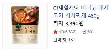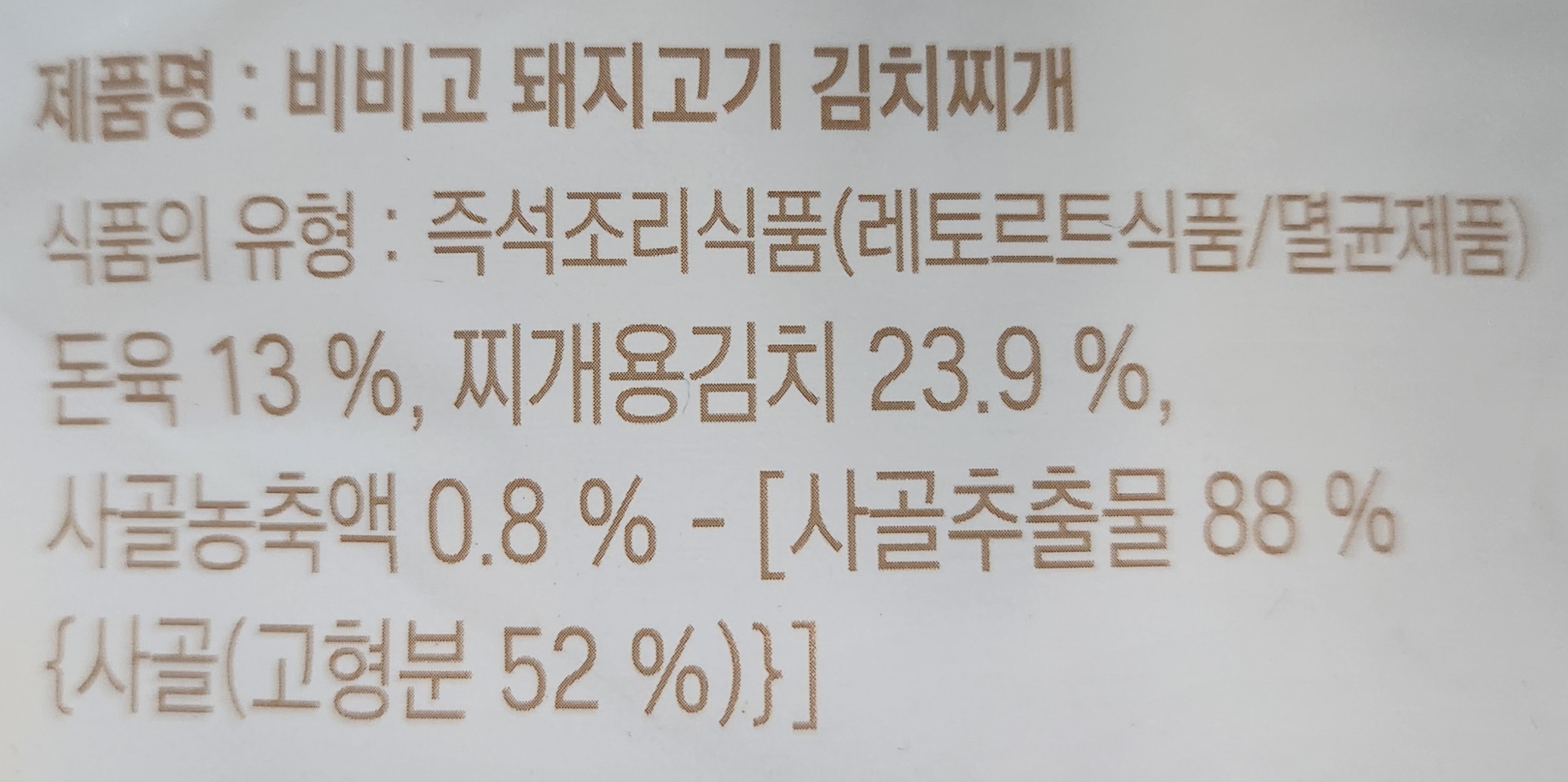 판매를 하고 있는 '비비고 돼지고기 김치찌개' 즉석조리식품.