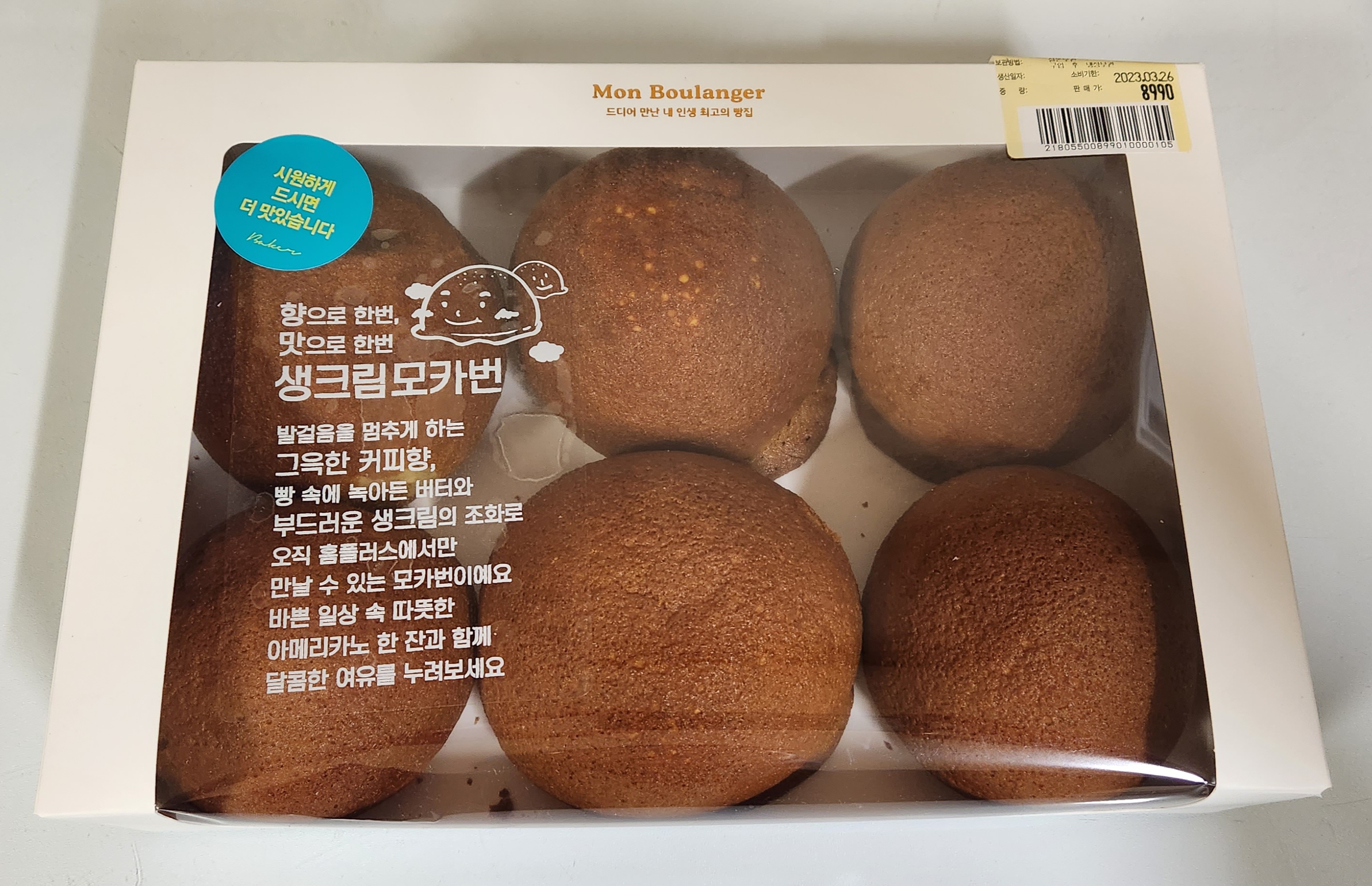 이 정도 크기의 6개 생크림 모카번은 9천 원을 주고도 충분히 구입할 의향이 있지만 이번에 이렇게 할인된 가격으로 구입해버렸으니 앞으로는 할인된 가격이 아니면 비싸다고 느낄 수도 있겠지만, 맛을 또 알아버렸으니 할인을 하지 않더라도 구입을 하게 될 것 같다. 먹고싶으니까.