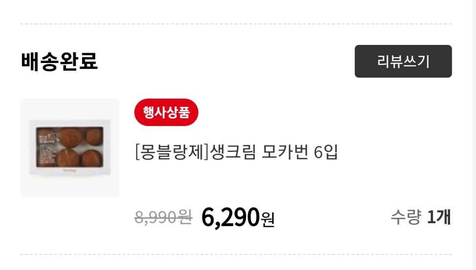 마트에 직접 방문해서 유통기한이나 신선도를 확인해 가면서 장을 보면 더 좋겠지만 귀찮음이 뇌를 지배한 요즘이라 홈플러스 앱을 통해서 장을 봤다. 엄지로 이것저것 장을 보는데 눈에 띈 행사 상품 ' 몽블랑제 생크림 모카번'. 정가는 8,990원이지만 할인해서 6,290원에 행사를 하고 있으니 바로 장바구니 행. 개당 천 원 정도니 안 먹어볼 수가 없었다. 매장 내에서도 마감 전에 이렇게 할인을 하는 것은 봤지만 앱에서도 이렇게 할인된 가격에 살 수 있다.
