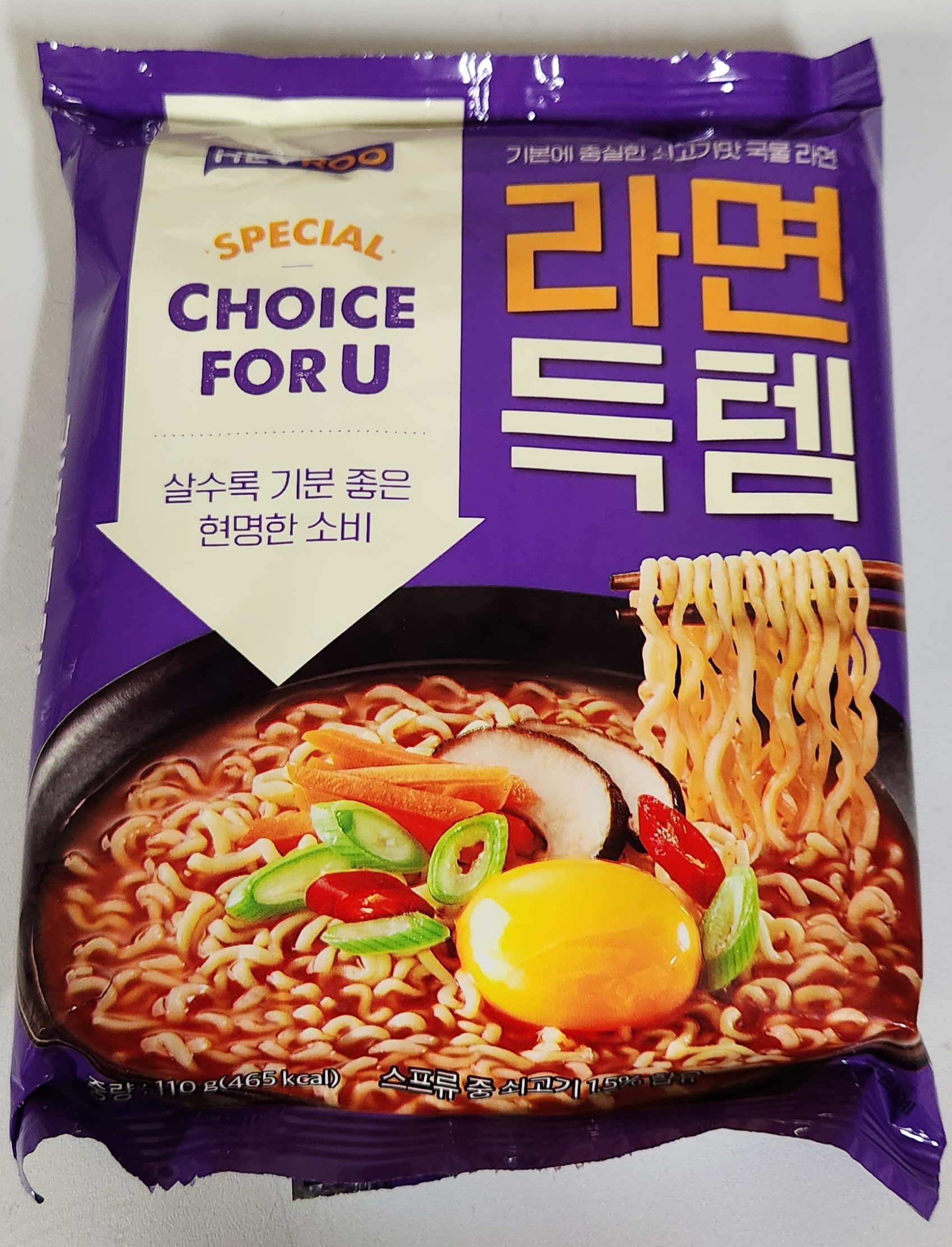 CU의 PB 브랜드인 HEYROO에서 출시한 초저가 봉지 라면.