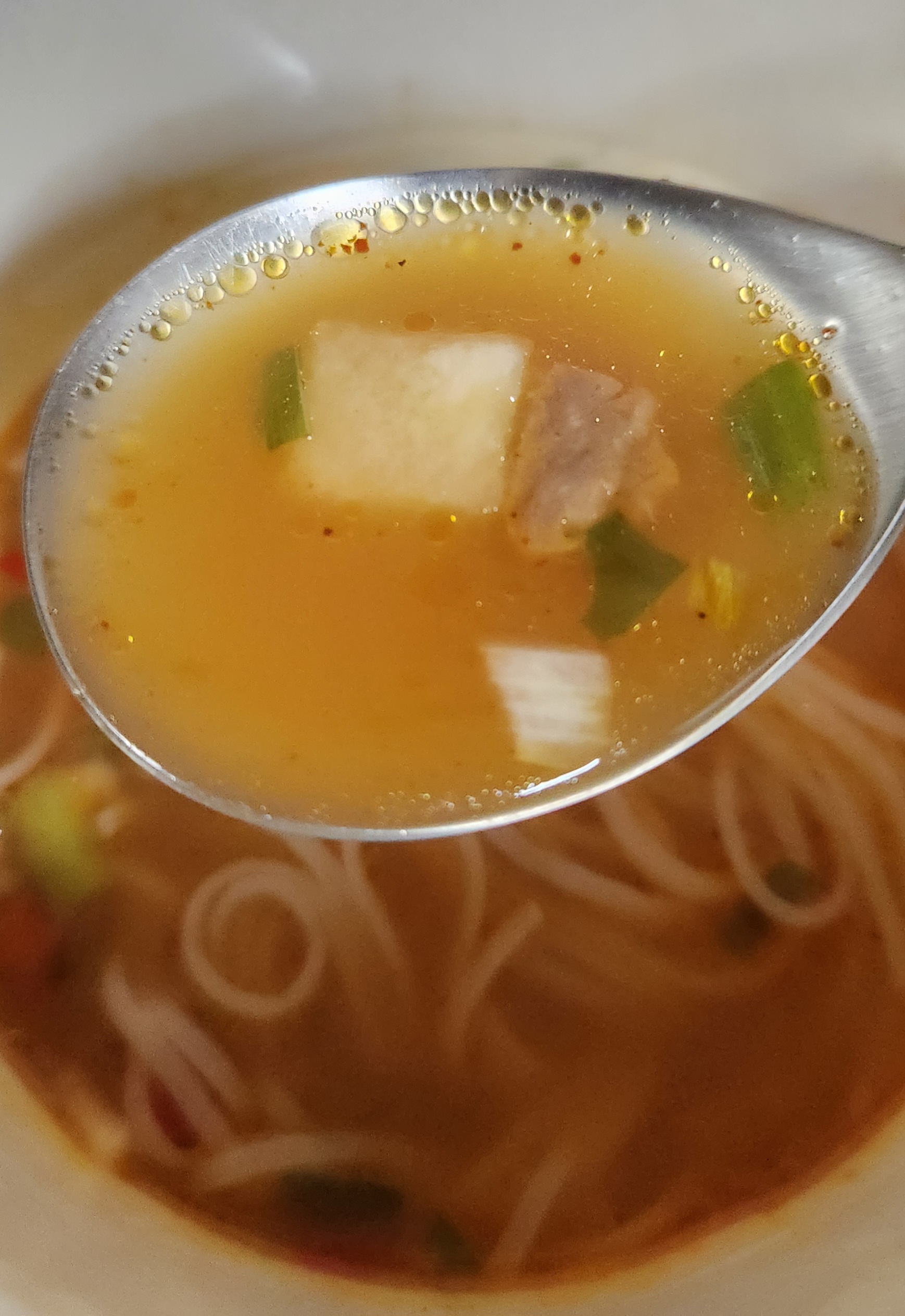 유탕면과는 다르게 건면이 들어간 국물답게 맑고 훨씬 시원한 맛.