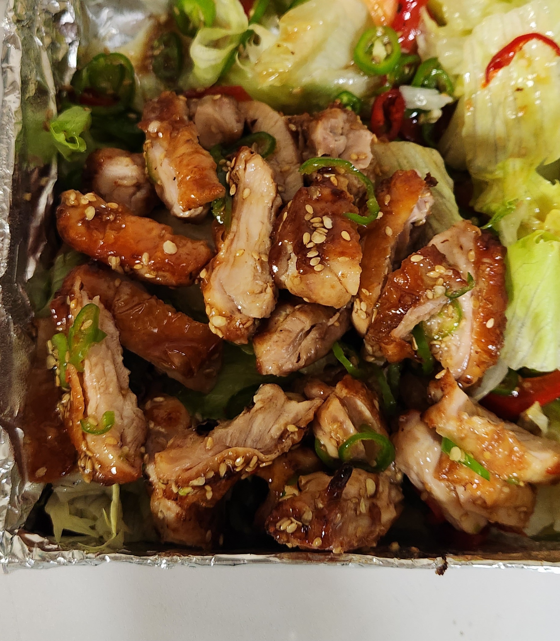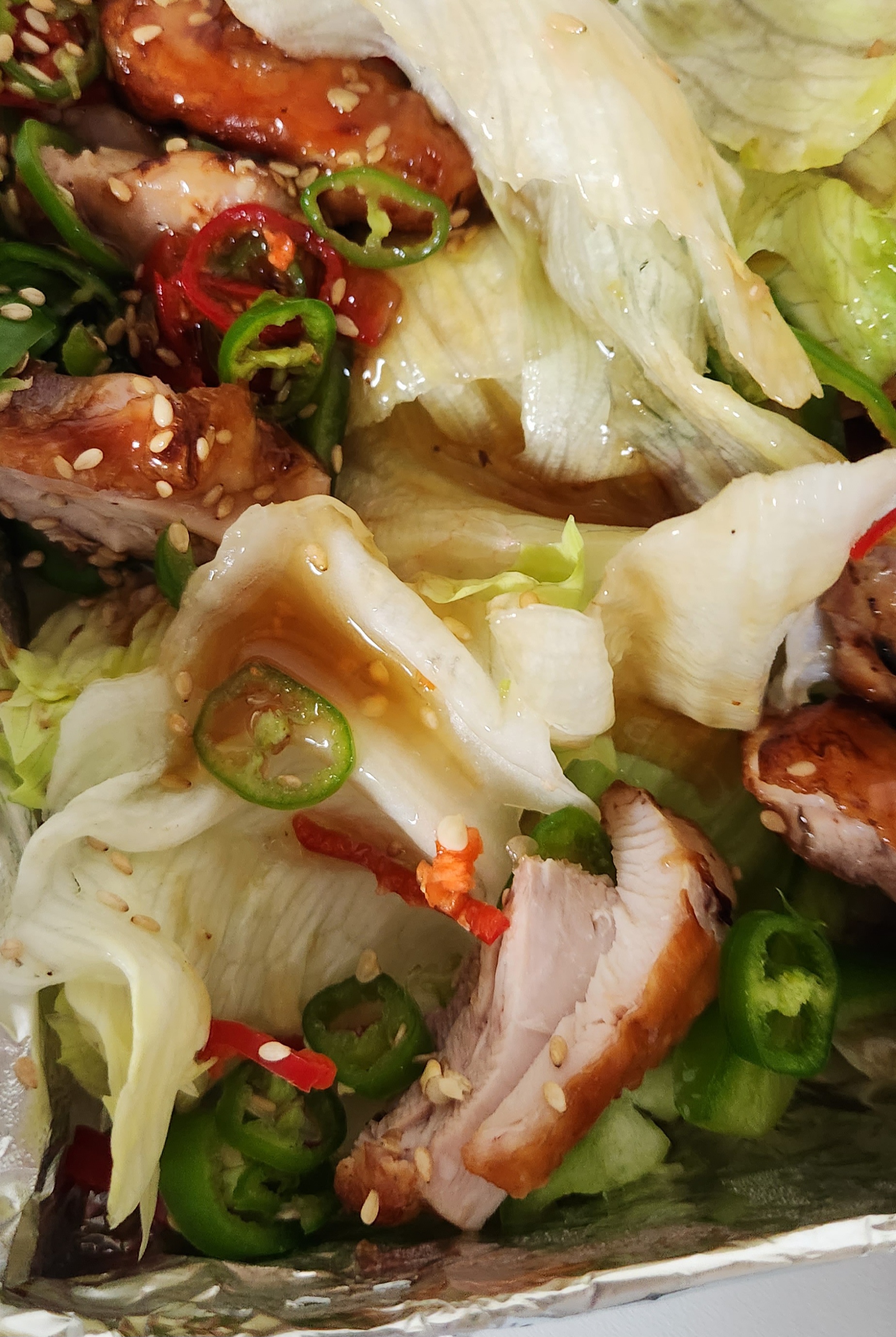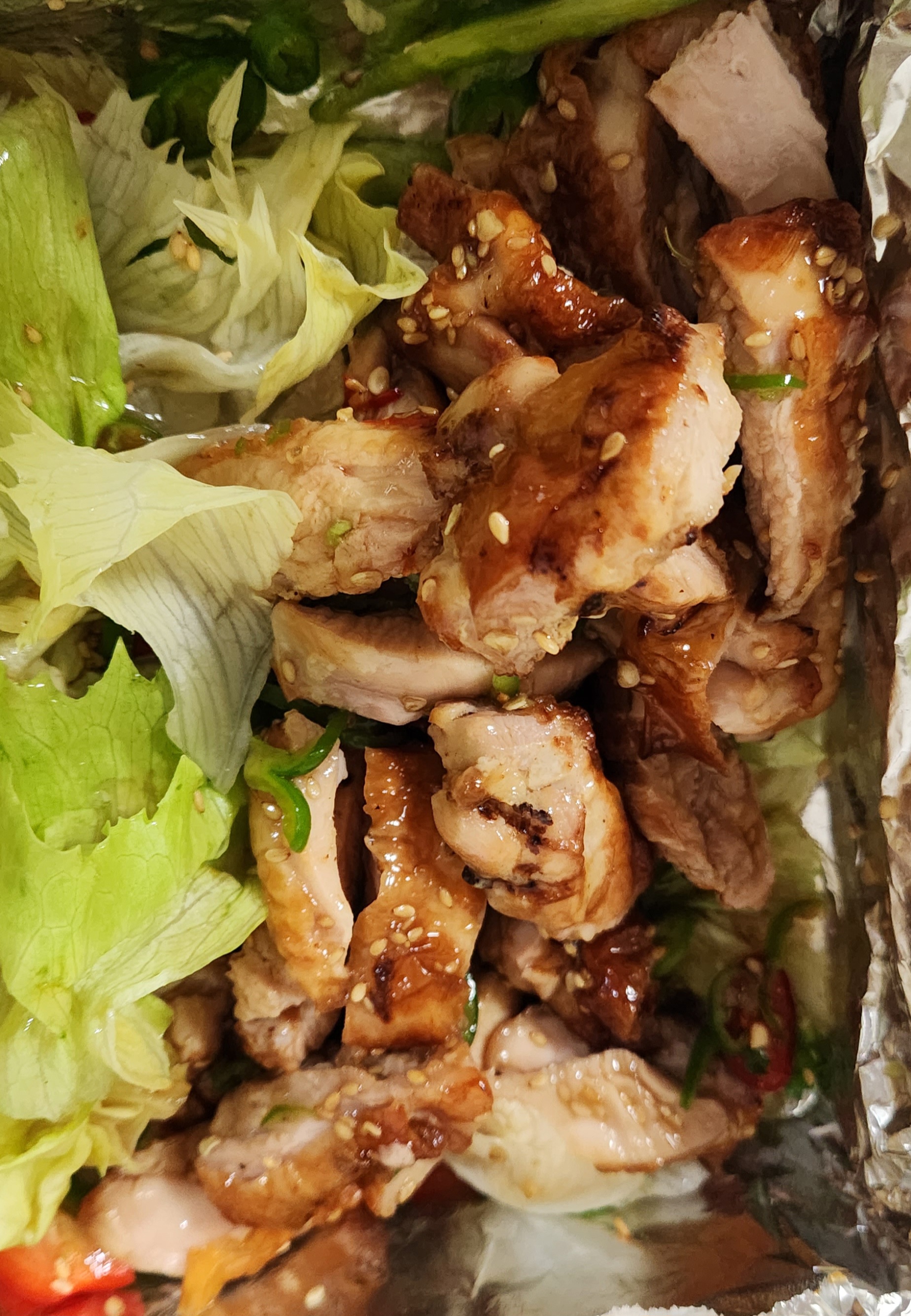 전체적으로 양상추랑 치킨을 양쪽으로