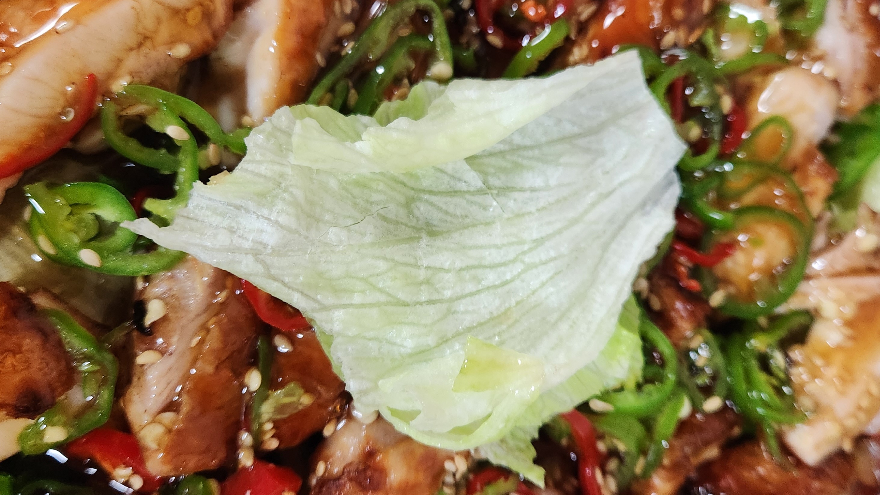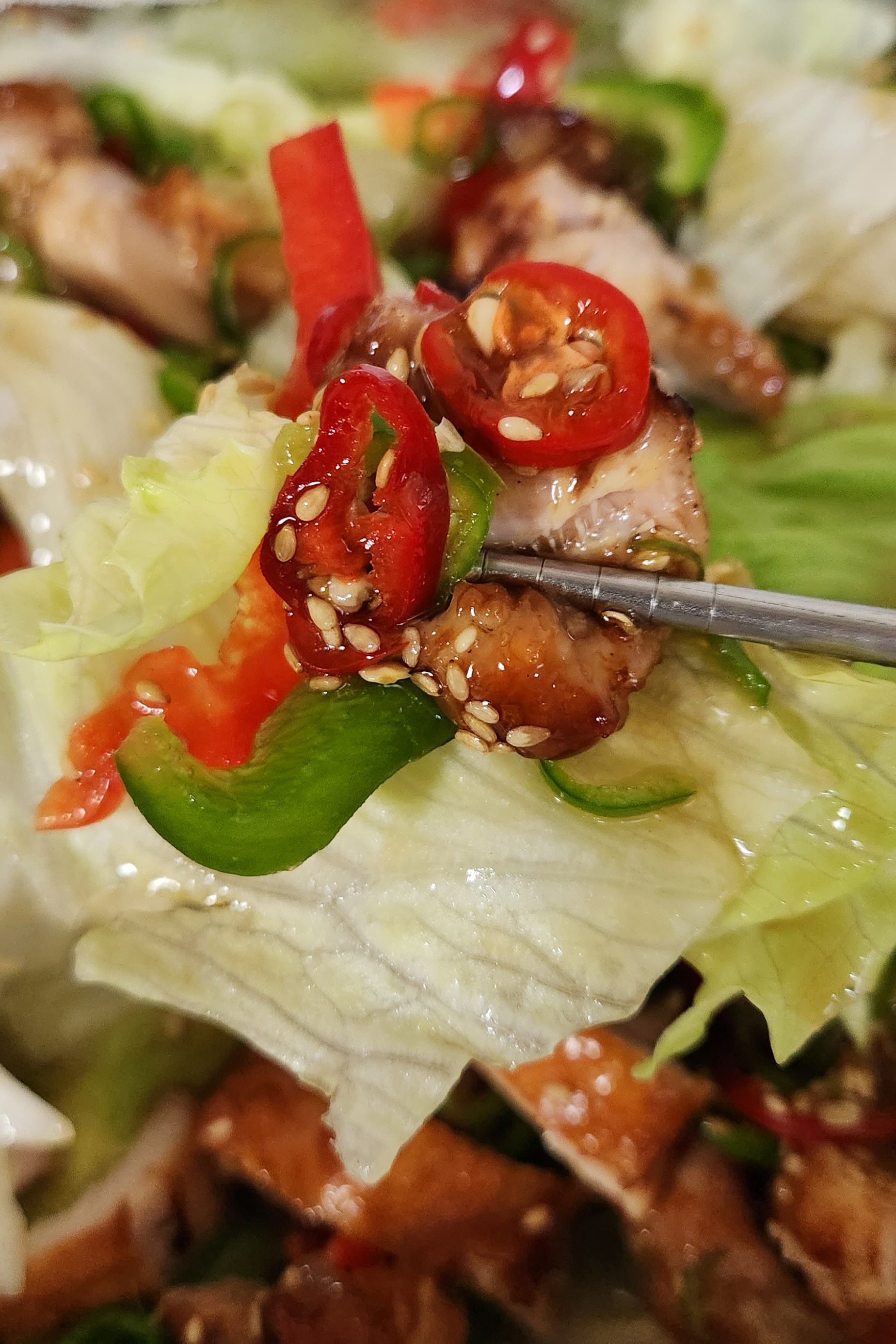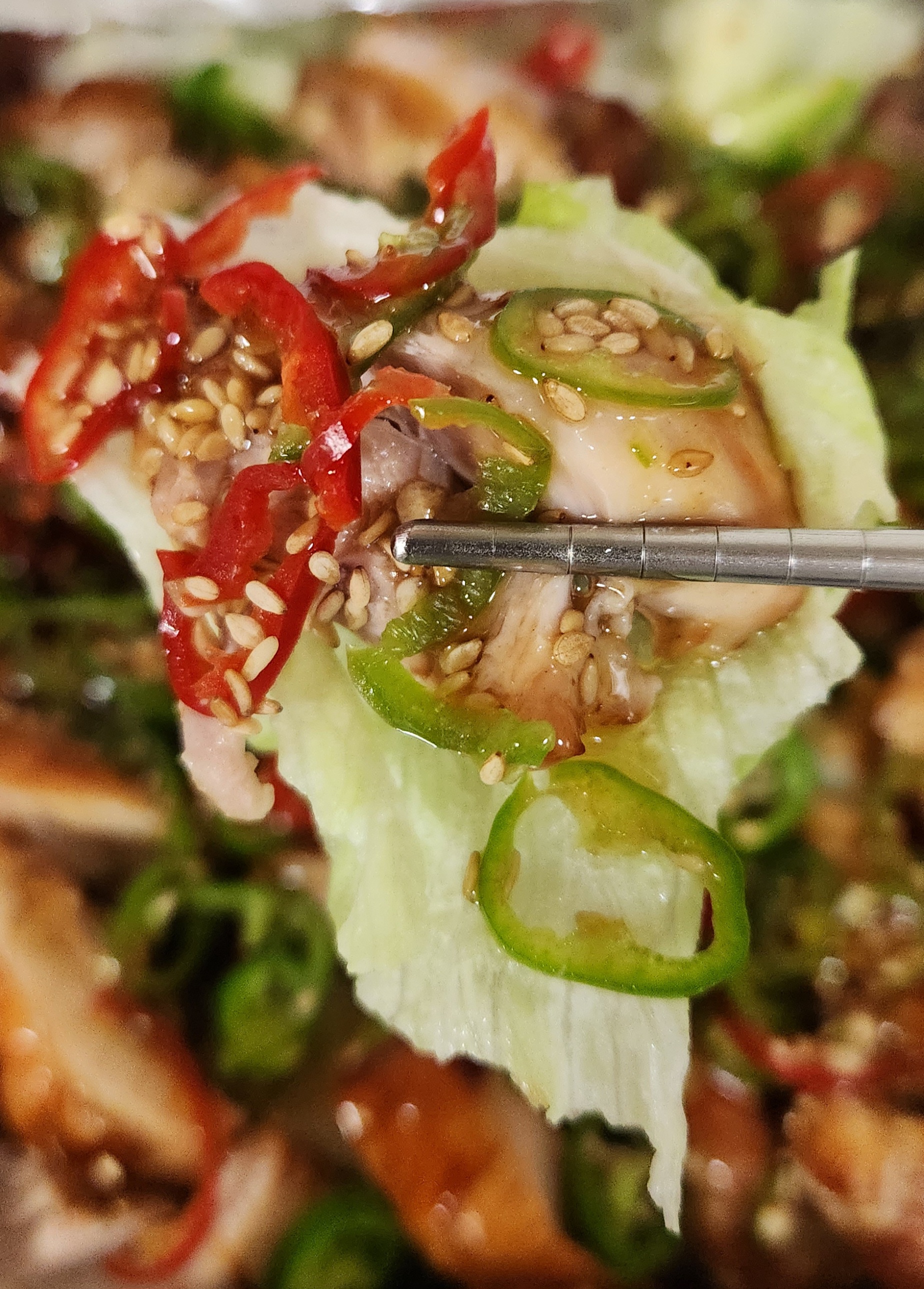 달콤, 상큼한 소스에 양상추, 피망의 식감이 더해지니