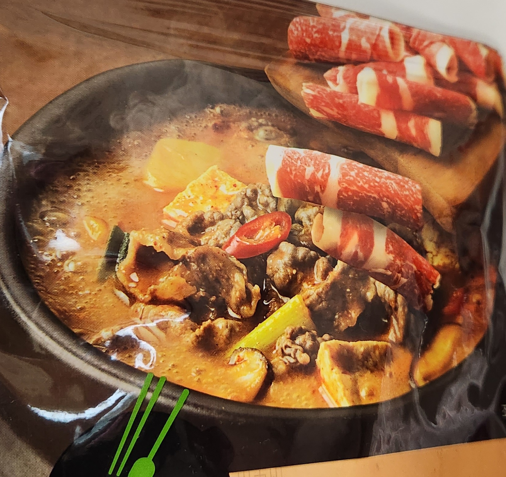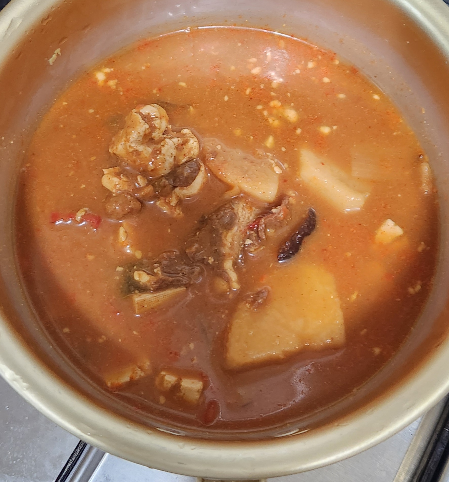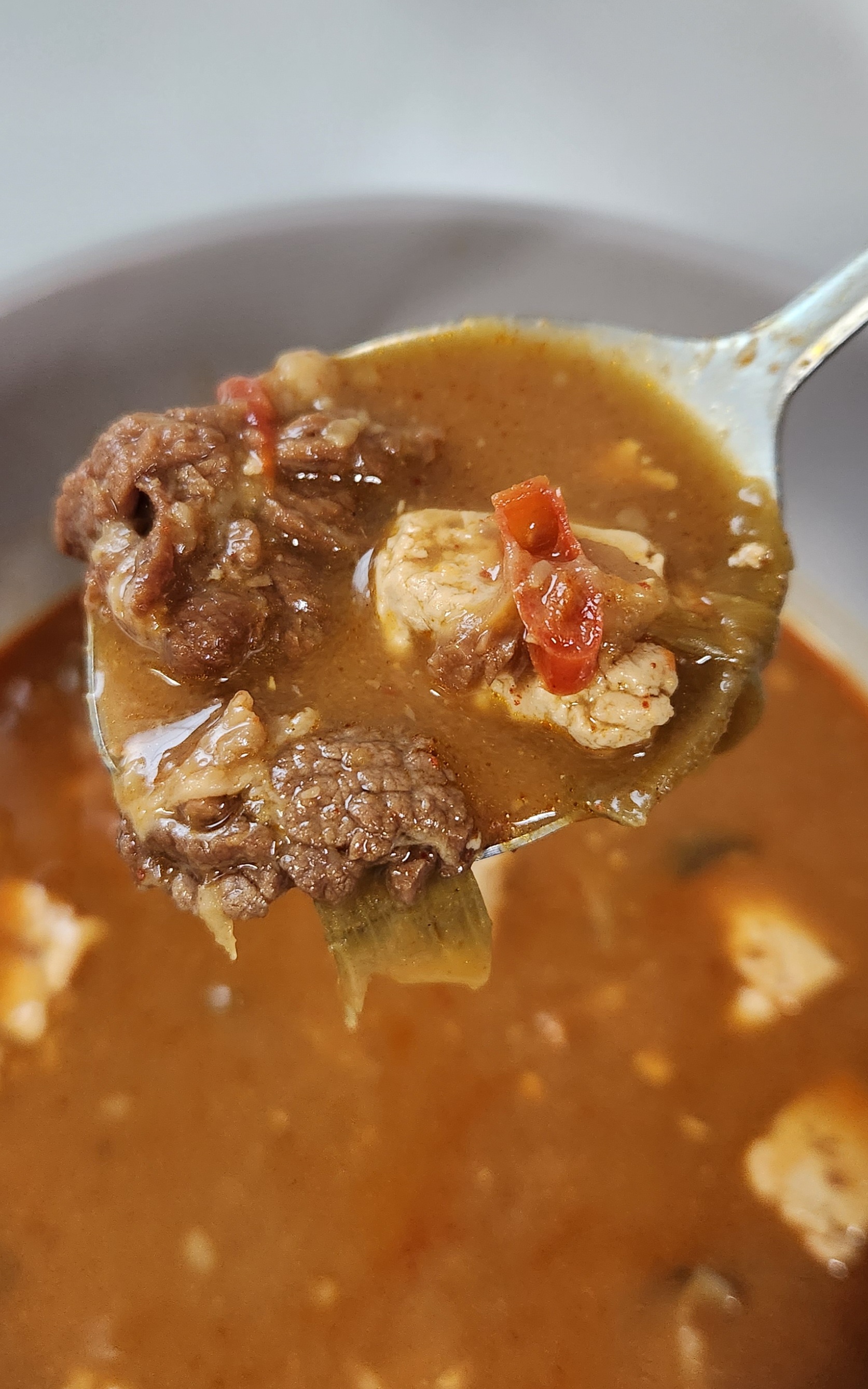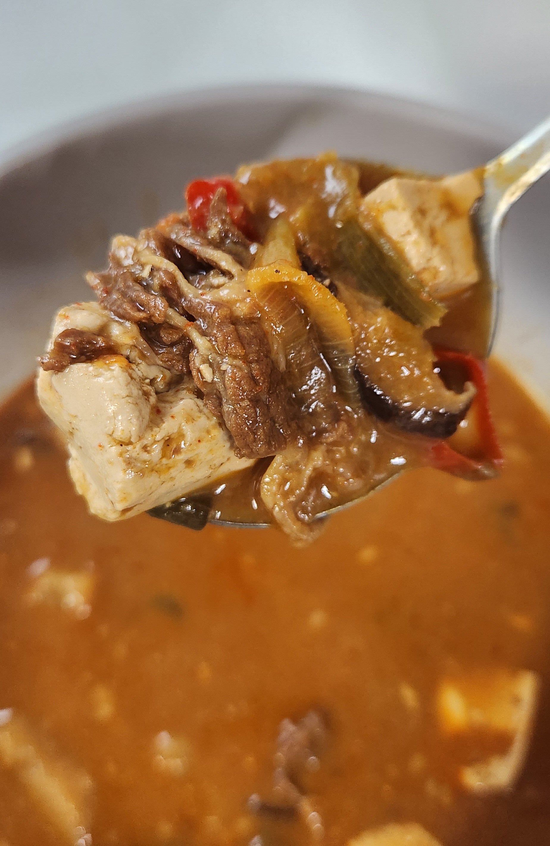 건더기는 차돌박이뿐만 아니라 감자, 두부, 버섯,