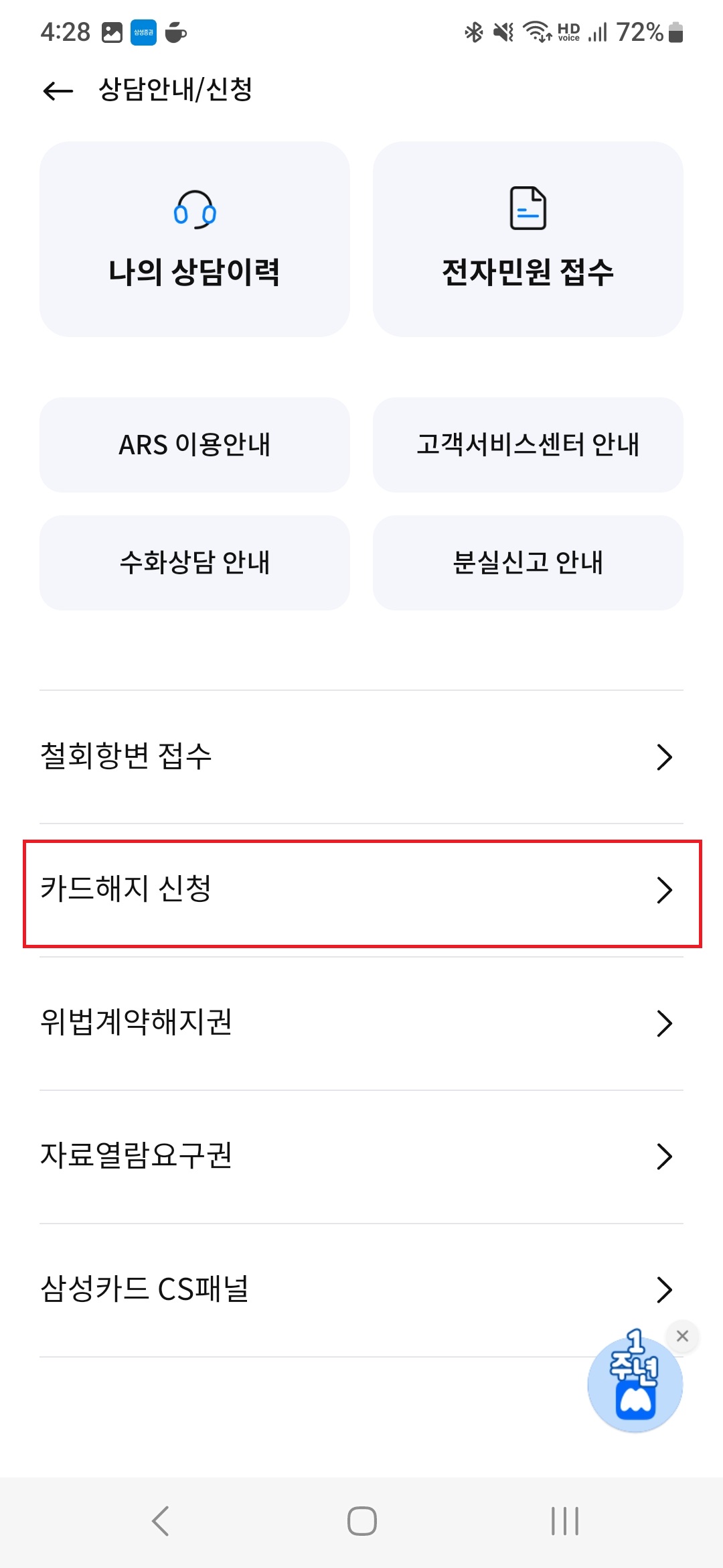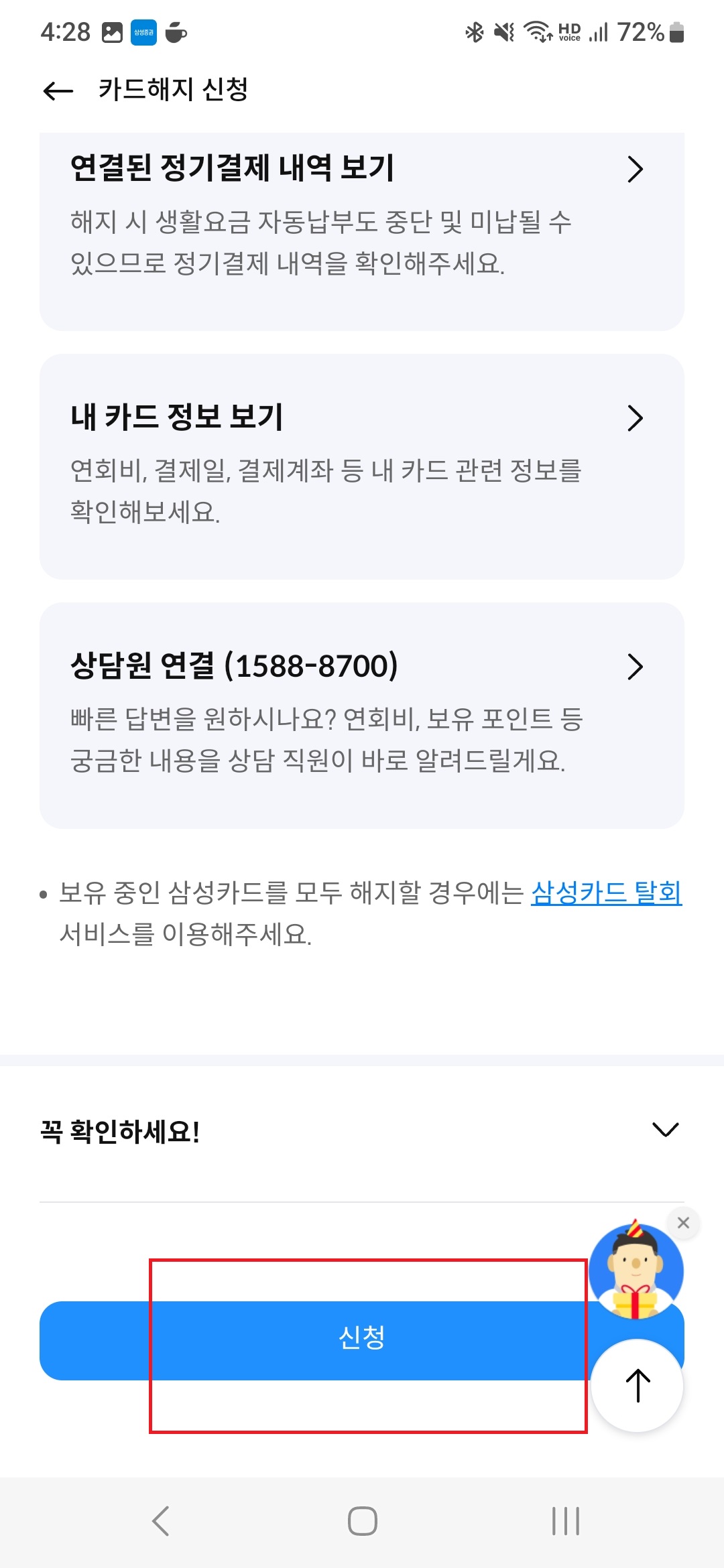 하지만 통화가 불편한 사람들에게는 앱에서 신용카드 해지 신청이 가능하다는 것만으로도 감사한 것 같습니다.