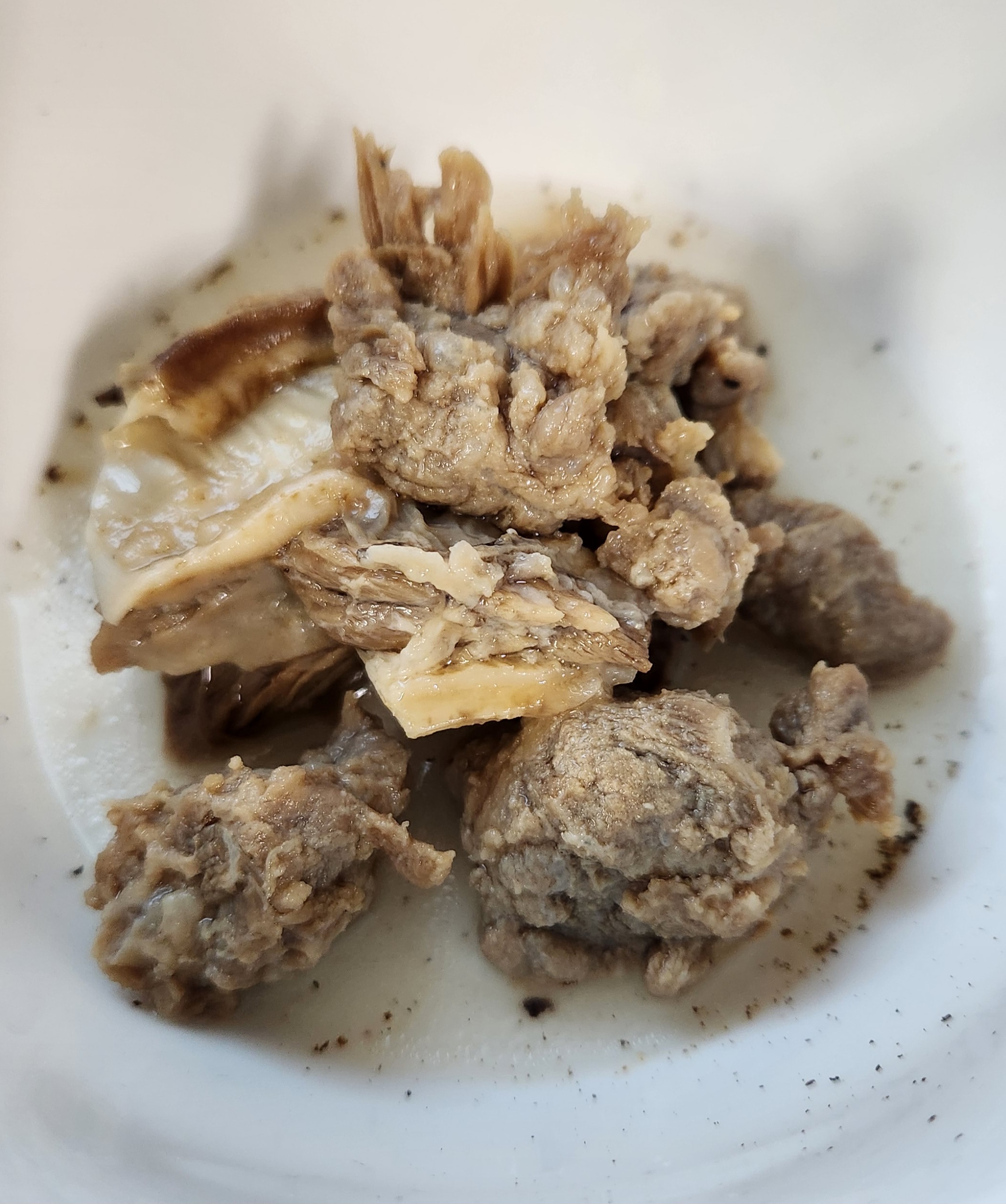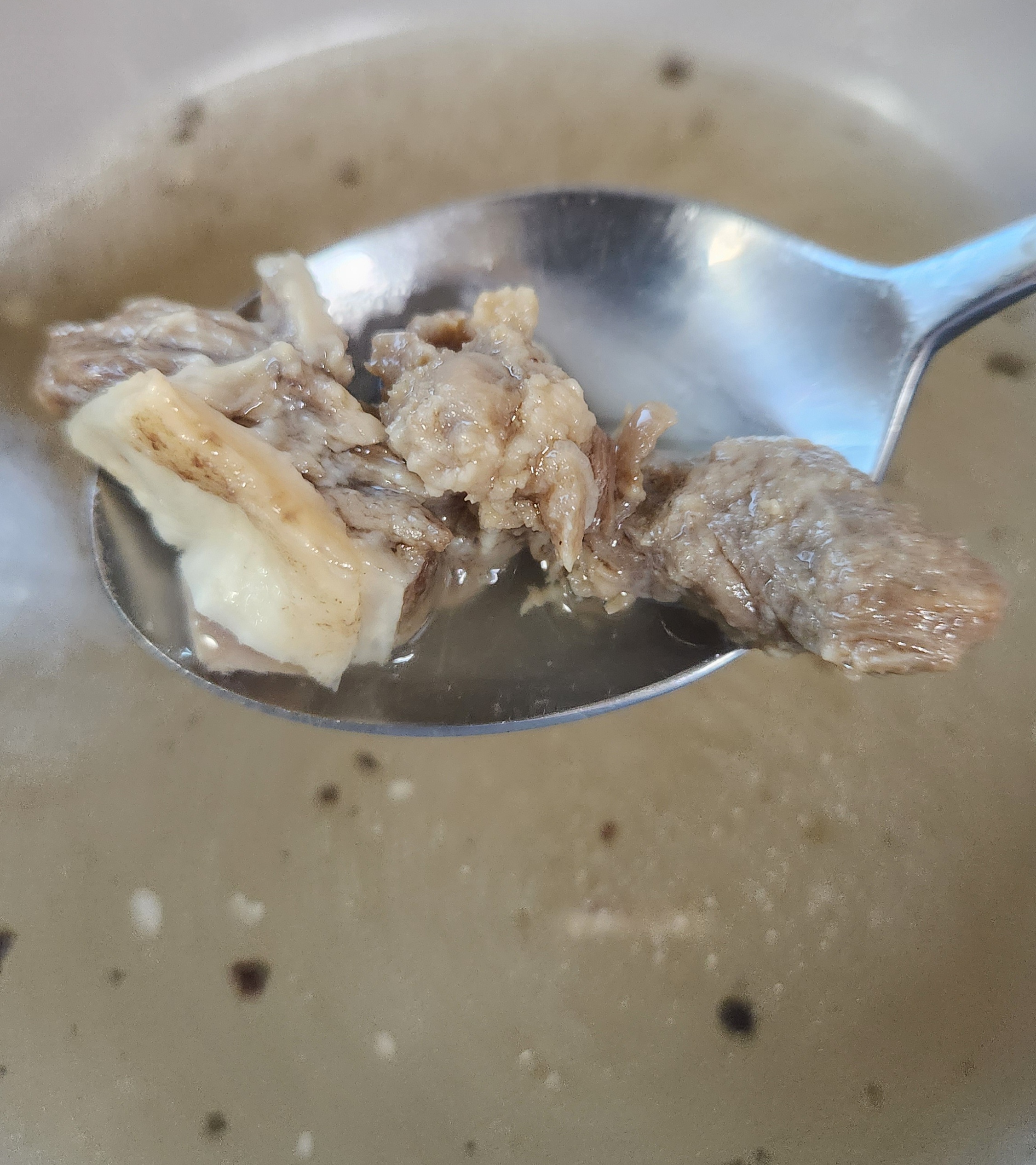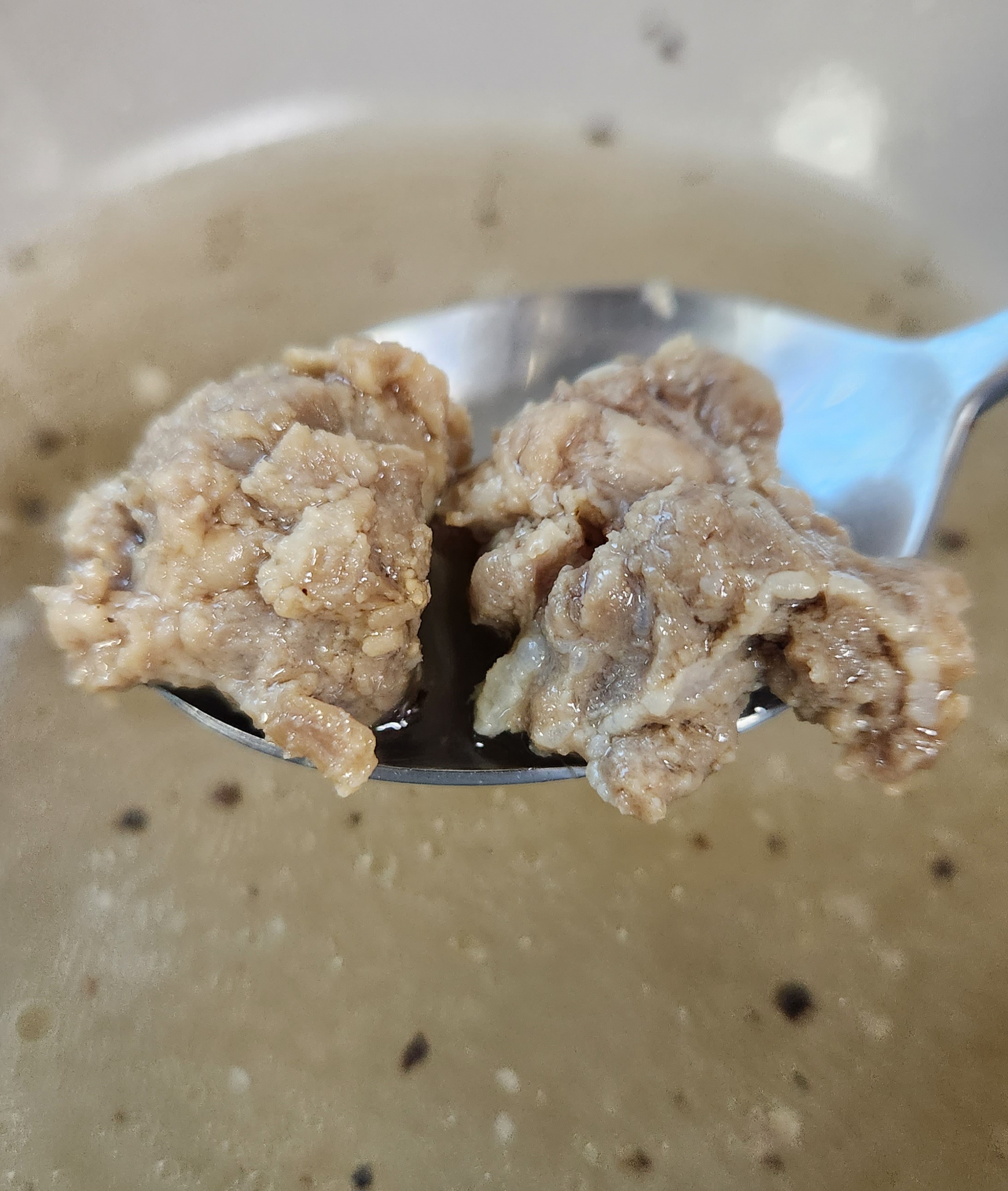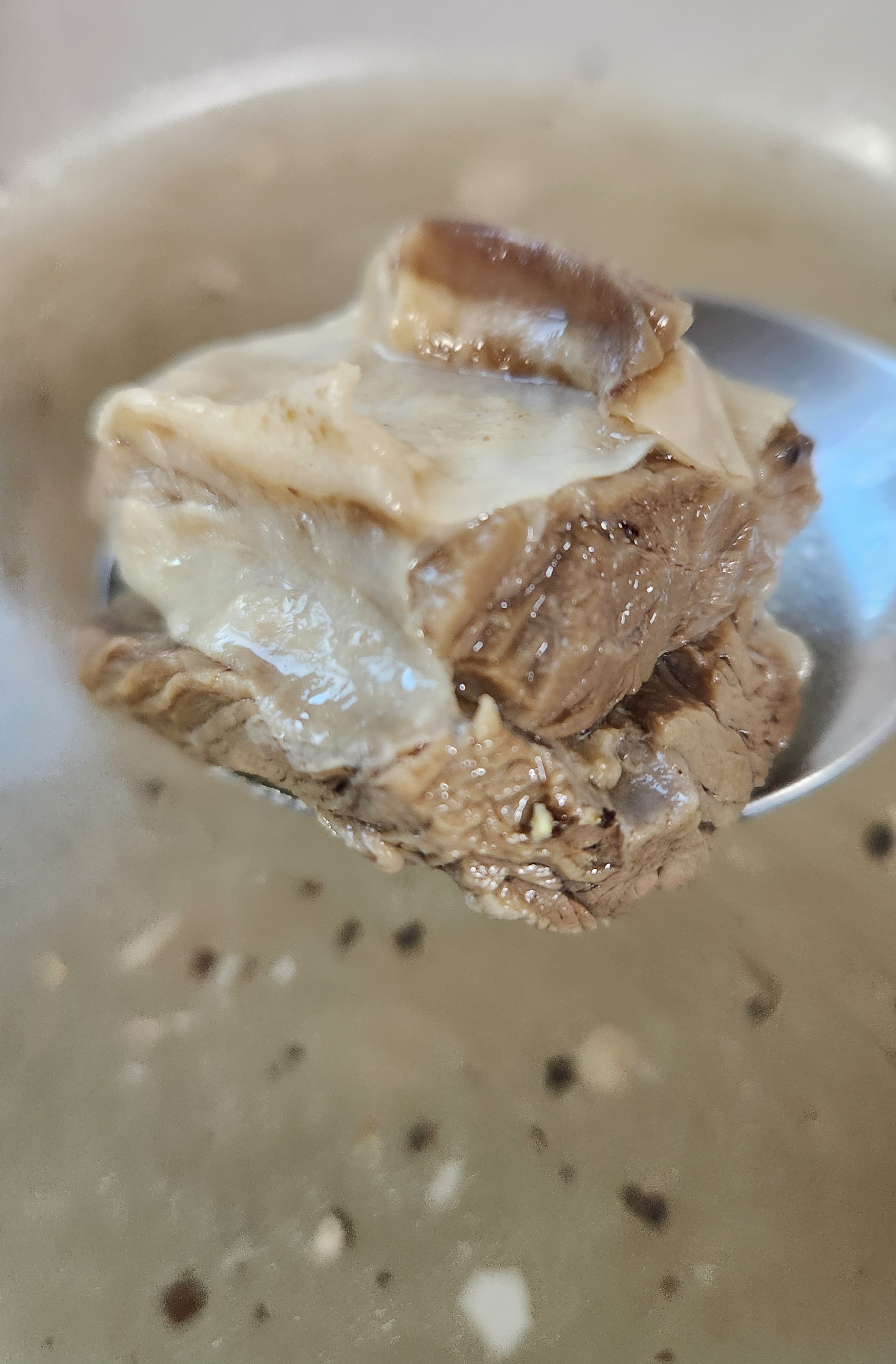 식당에서 먹는 갈비탕 고기 건더기 양만큼은 되는 것처럼 보인다.