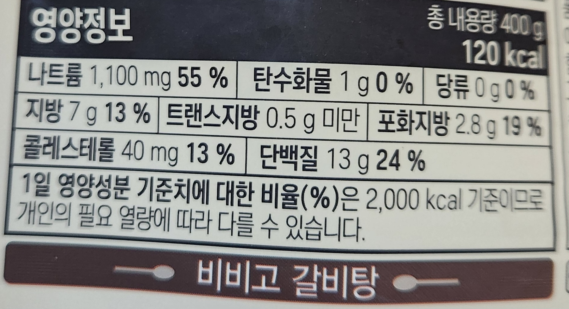 총 내용량 400g에 칼로리가 120kcal으로 정말 낮다.
