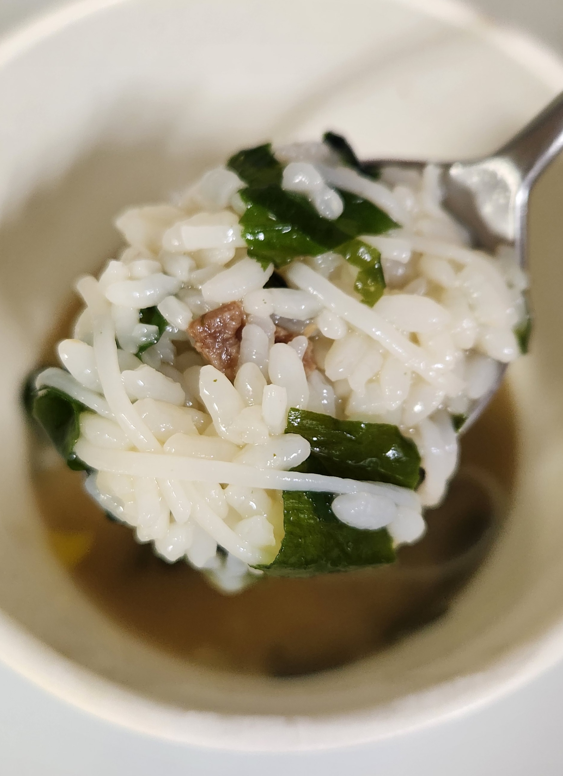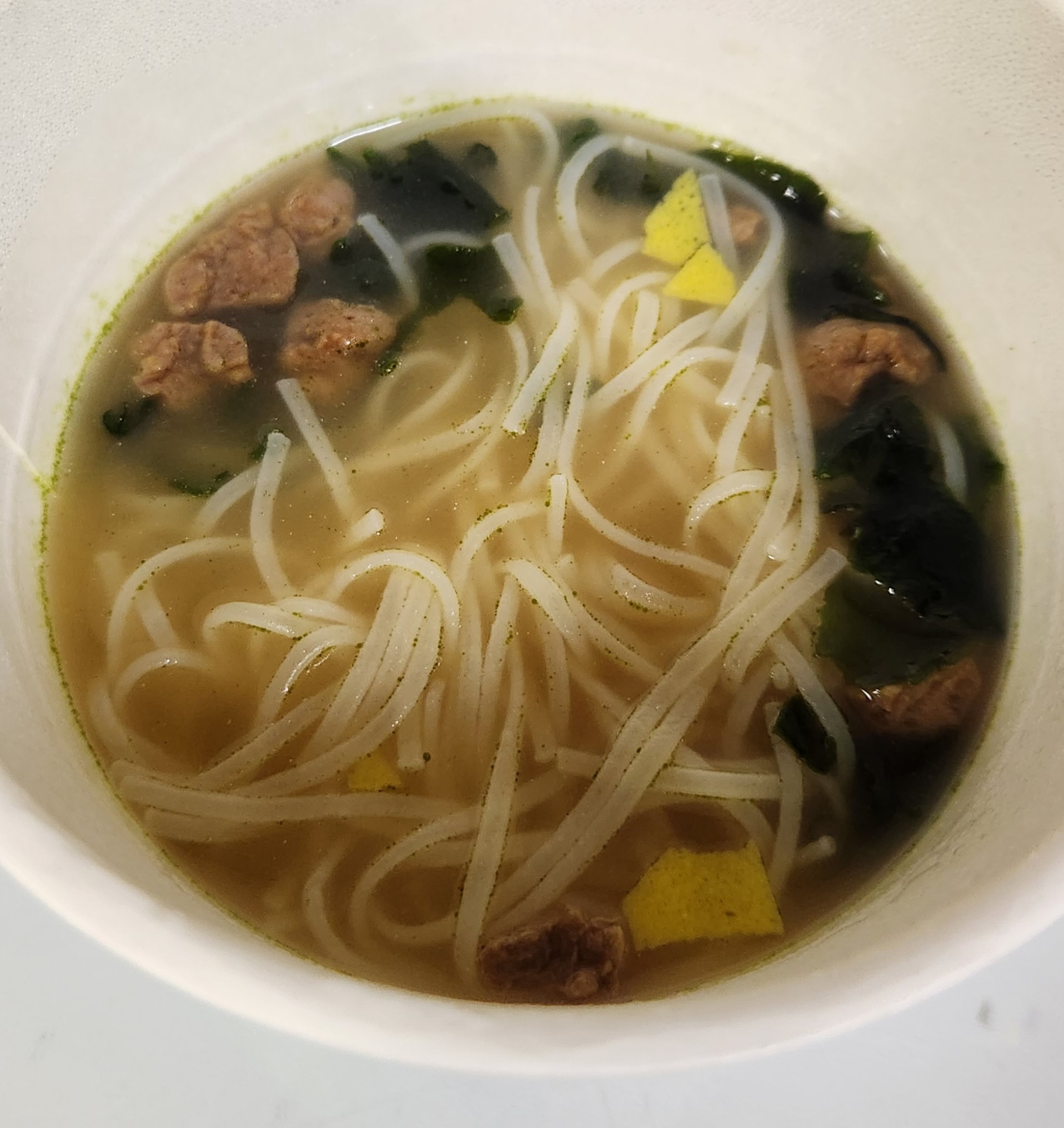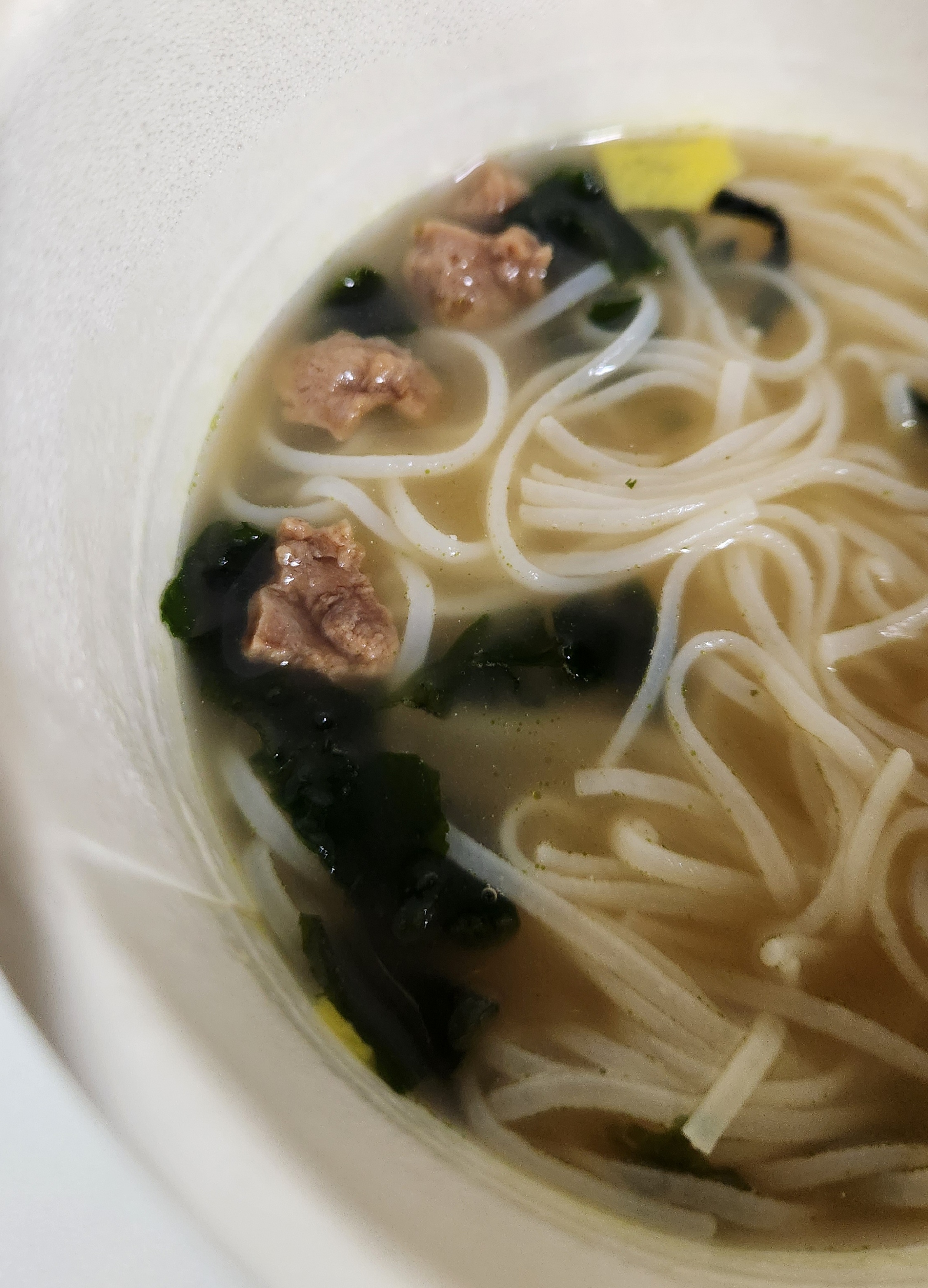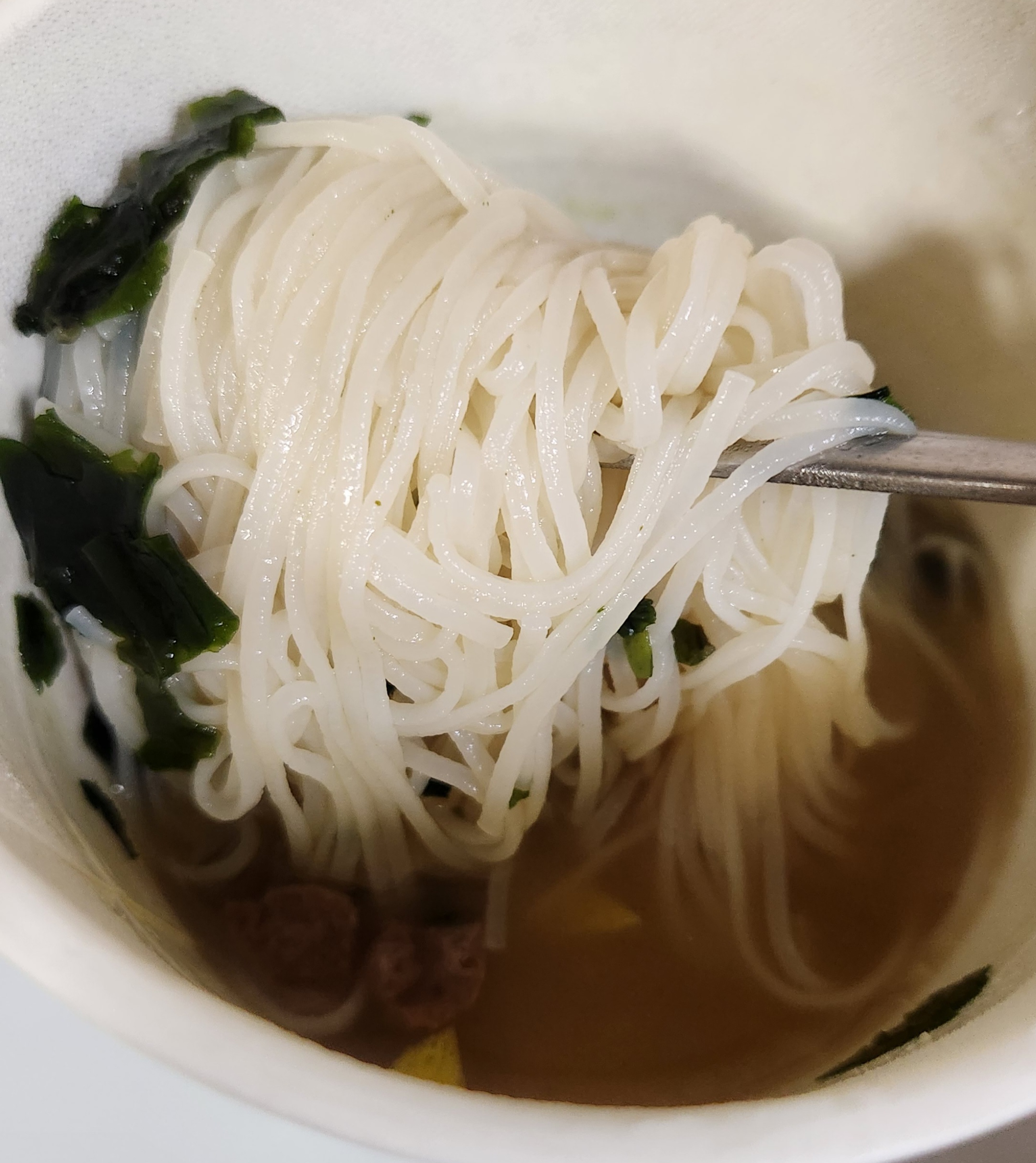 미역국의 맛을 잘 살린 국물인데 쌀국수 면이