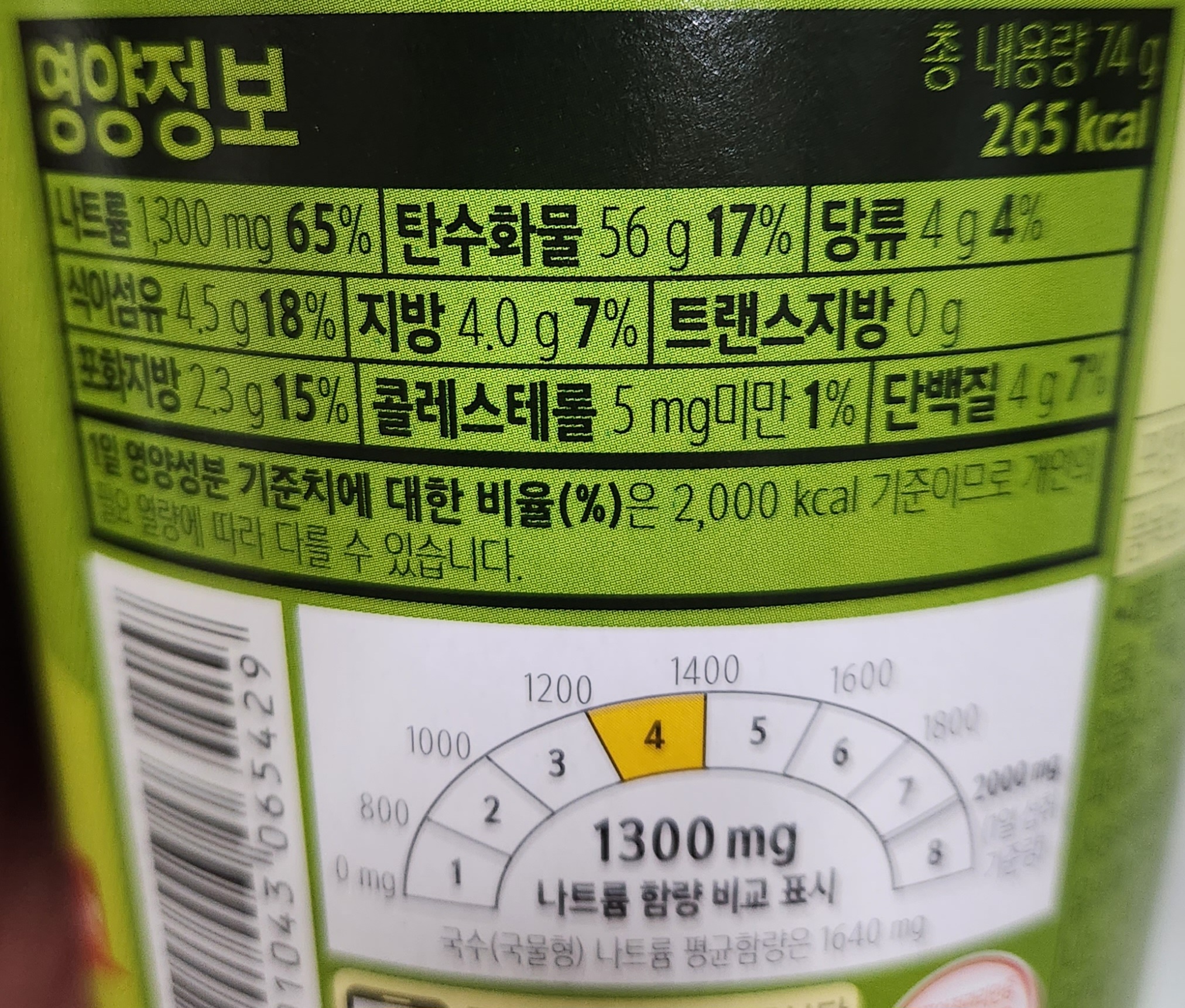 나트륨이나 포화지방도 일반적인 컵라면들과