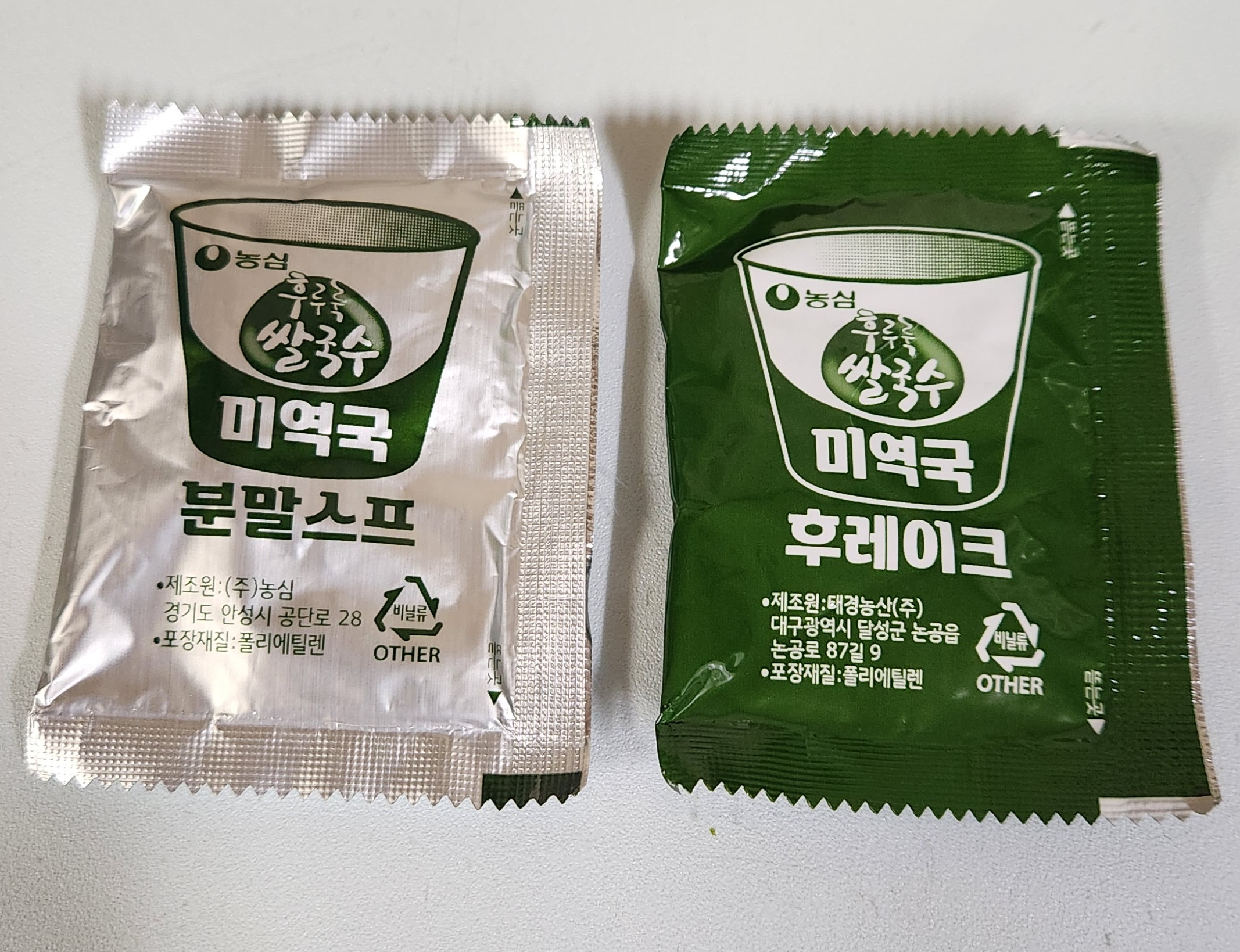 분말스프와 후레이크가 동봉되어 있다.