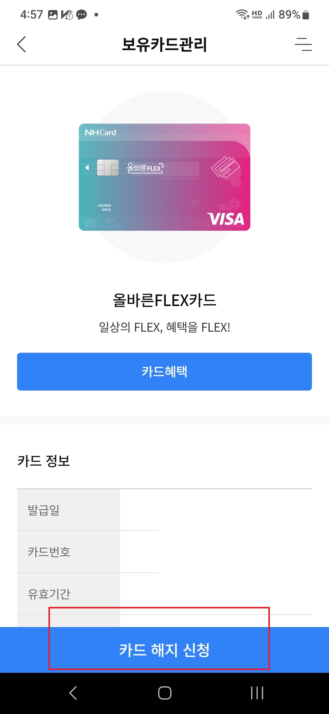 NH농협카드 신용카드는 다행히도 앱에서 신용카드를 해지할 수 있습니다.