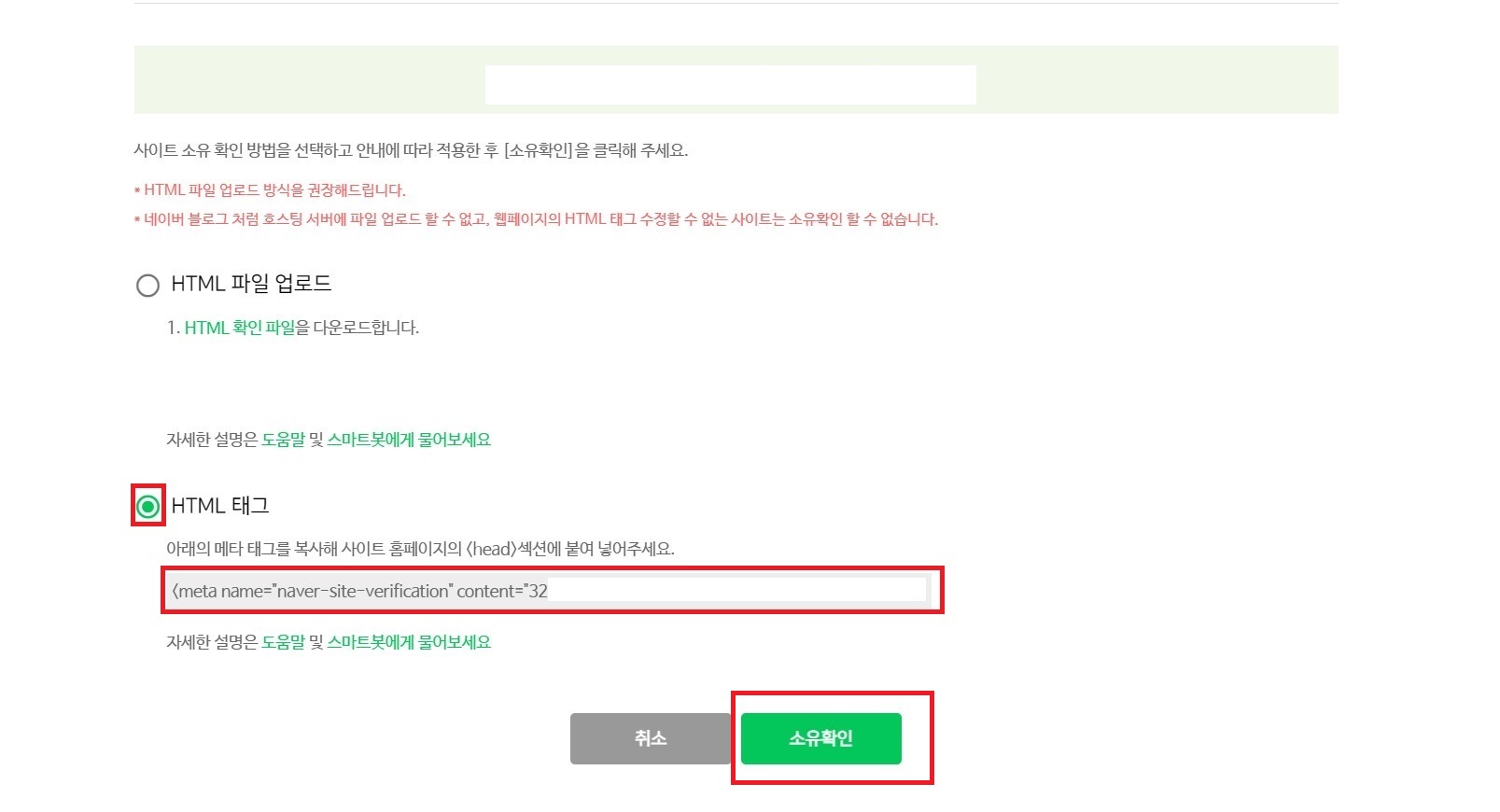 다시 네이버 서치어드바이저로 돌아와서 아래 화면처럼 '소유확인'을 클릭해 줍니다.