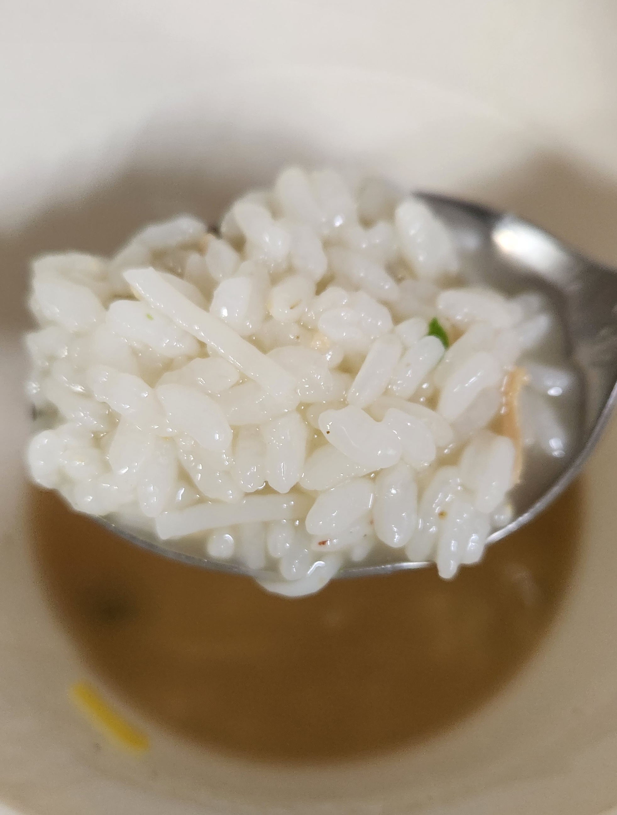 농심 후루룩 쌀국수 시리즈 삼총사인 닭곰탕, 미역국, 소고기장국은 기존 컵라면의 획일적인 국물 맛과는 다르게 우리가 백반을 먹을 때 흔하게 접할 수 있는 국 종류 국물 맛을 재현해냈기 때문에 밥을 말아먹기에 최적이다. 특히 미역국 컵라면 국물에 밥을 말아먹을 때 정말 맛있게 먹었었는데 이 닭곰탕 컵라면 국물 또한 국물 맛이 훌륭하다. 뭔가 인위적으로 닭곰탕 국물 맛을 내려다보니 초반에는 약간 거부감이 드는 향이 느껴지는 건 사실이었는데 밥을 말아 먹으니 맛에서는 나쁘지 않은 닭곰탕을 느낄 수 있었다.