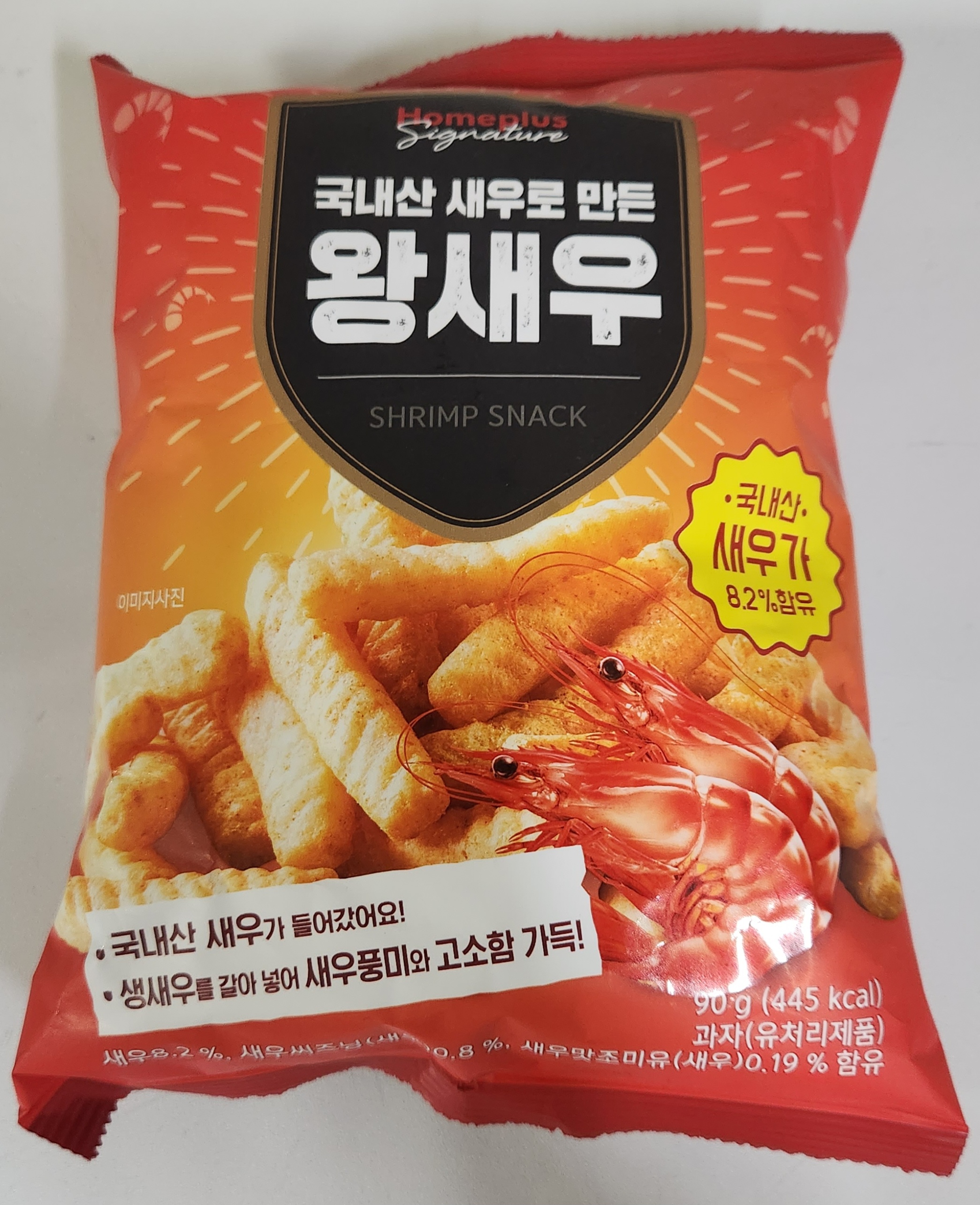 홈플러스 PB 브랜드는 '홈플러스 시그니처'라는 이름을 가지고 있다. 이마트 PB 브랜드인 노브랜드는 많이 이용해 봤지만 홈플러스 PB 상품들은 낯설었는데 이번에 '홈플러스 시그니처 국내산 새우로 만든 왕새우'라는 과자를 통해 접할 수 있게 되었다. 일반 봉지과자 사이즈인데 가격이 940원이라서 부담 없이 장바구니에 담을 수 있었다.
