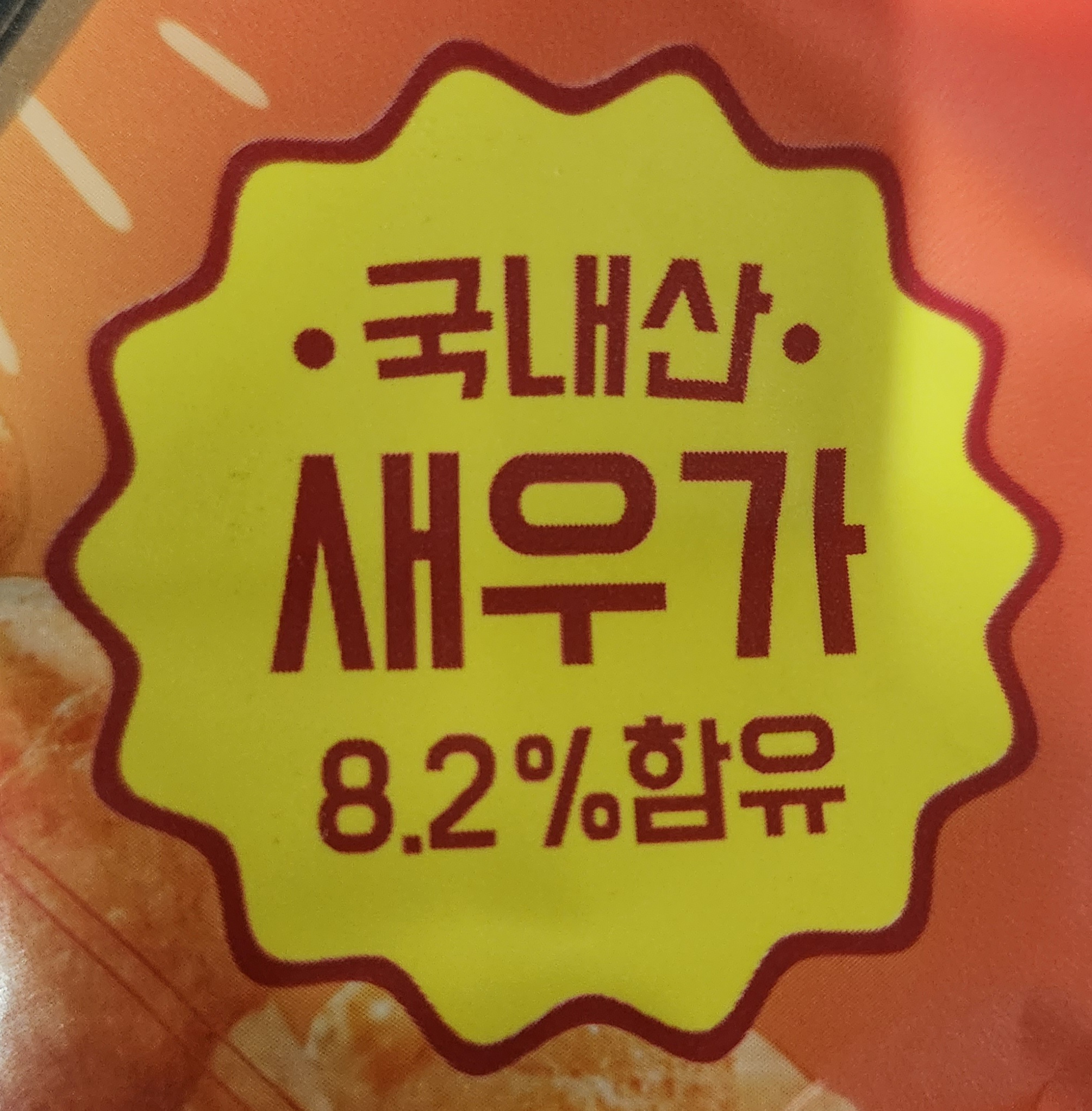 국내산 새우가 8.2% 함유되어 있다고 한다. 새우과자의 대명사라고 부르는 새우깡에는 실제로 새우가 얼마나 함유되어 있을까 궁금해지는 부분이다.