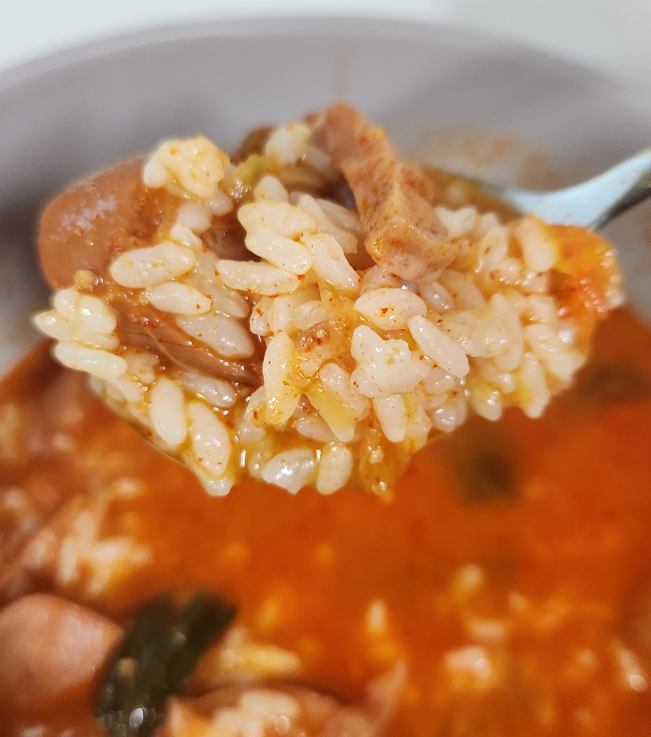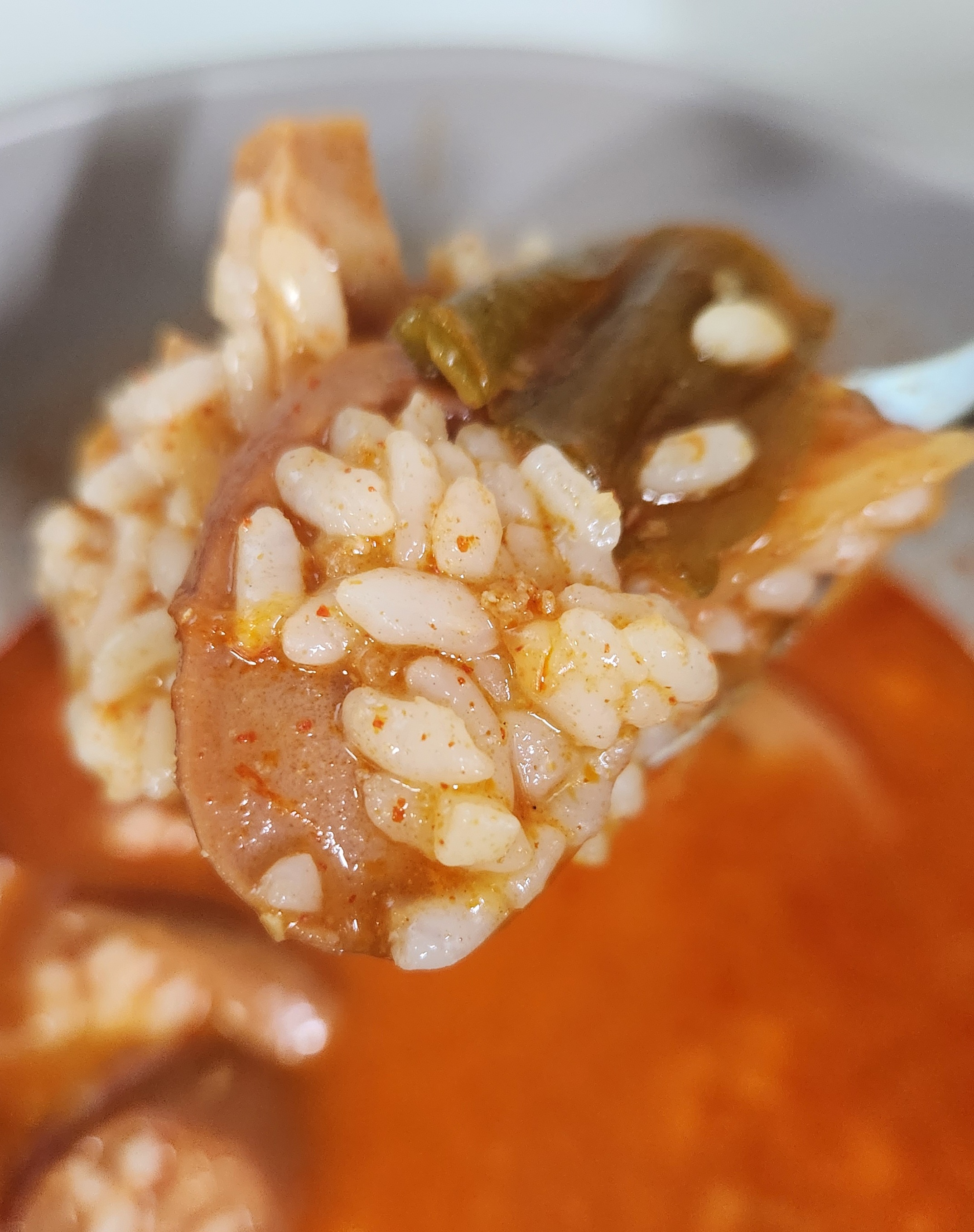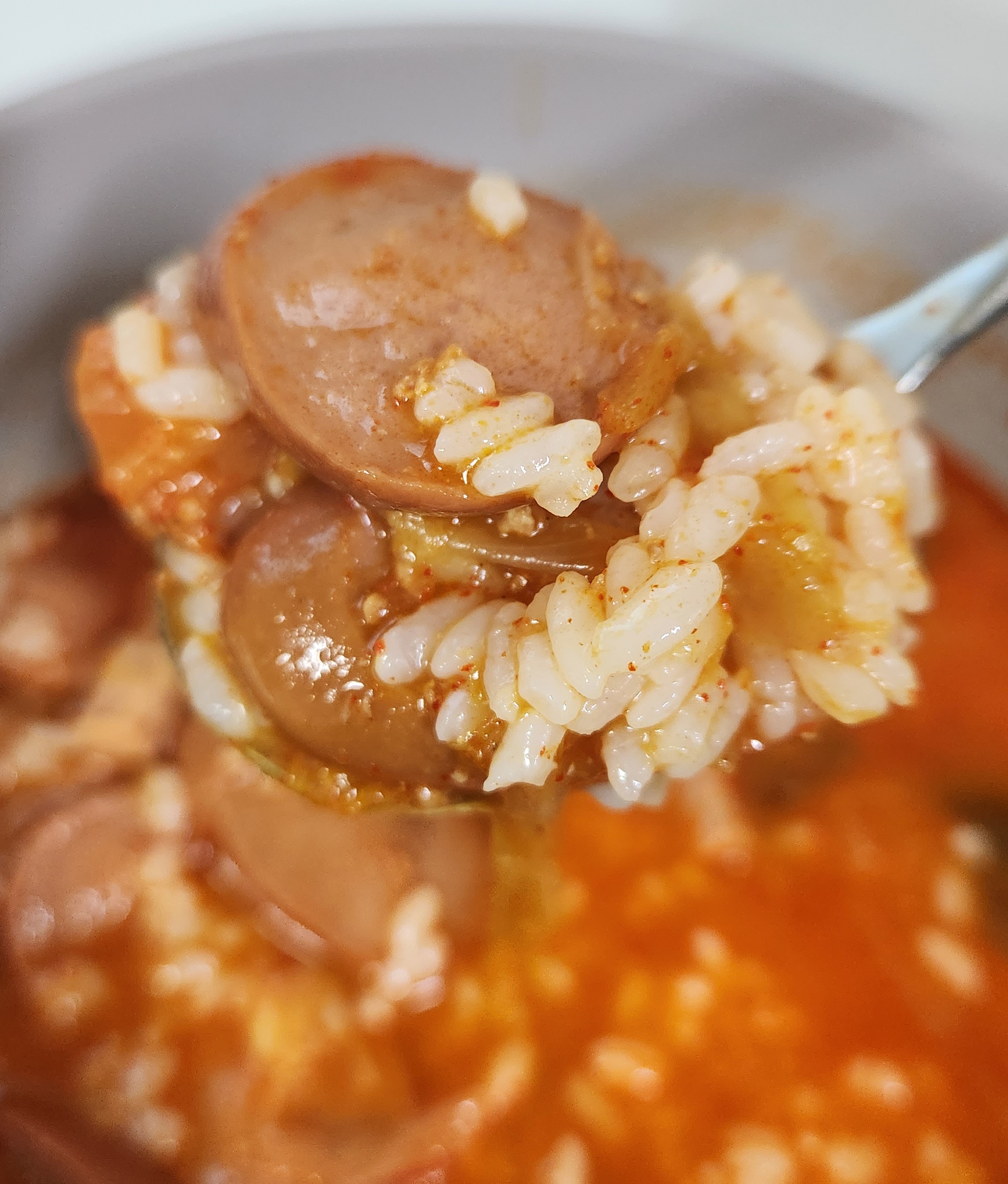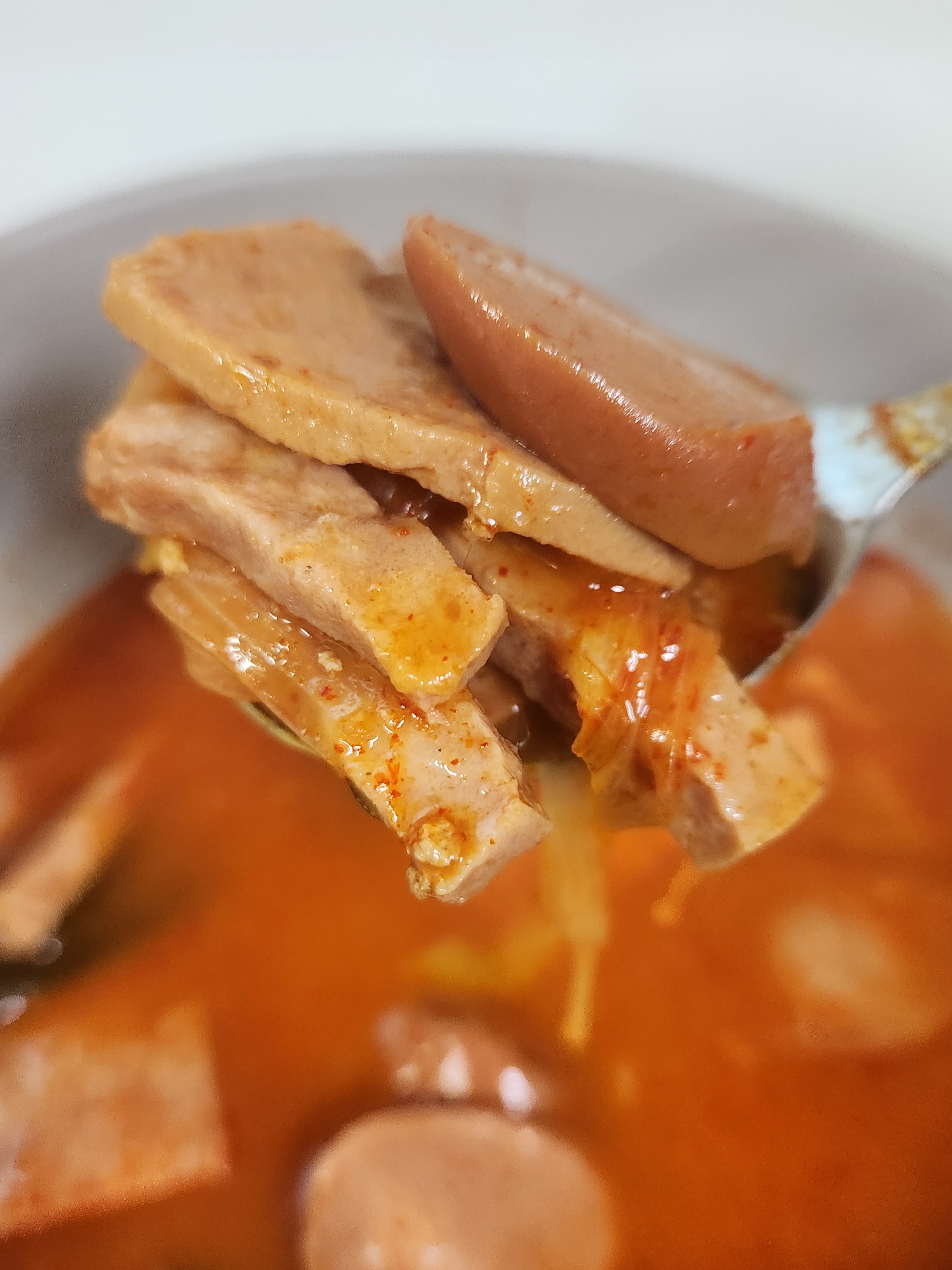 밥을 말아서 한 숟가락에 햄과 소시지를 평균 2개씩 얹어서 얼큰한 국물과 같이 먹을 수 있으니 특별히 다른 반찬과 같이 먹을 필요 없이 한 끼를 훌륭하게 해치울 수 있었다. 이런 즉석조리식품 대부분이 1인분이라고 표시해두지만 먹는 양에 따라서 충분히 2인분으로 먹을 수도 있으니 식비를 줄이고자 한다면 다른 반찬들과 함께 밥을 먹는다면 이 부대찌개를 2인분으로 나눠서 먹을 수도 있겠다.