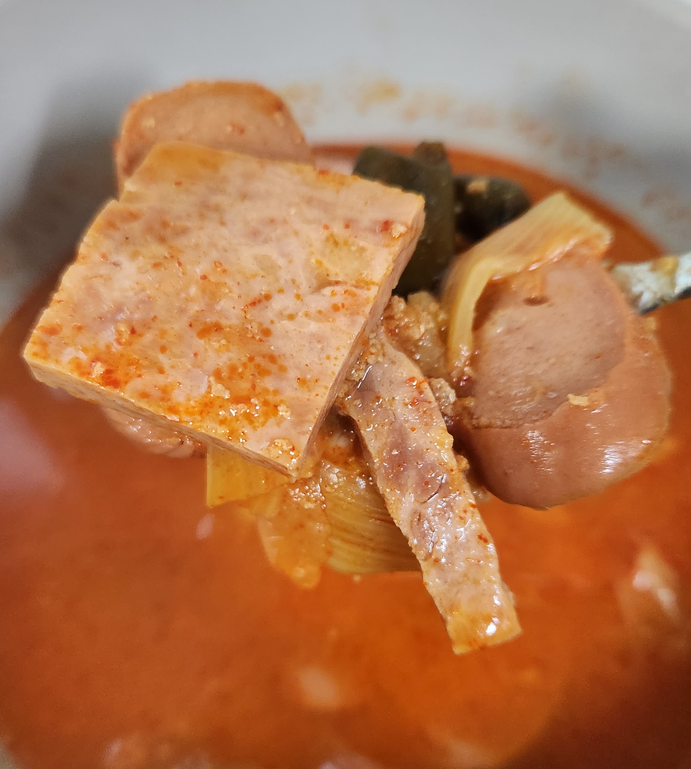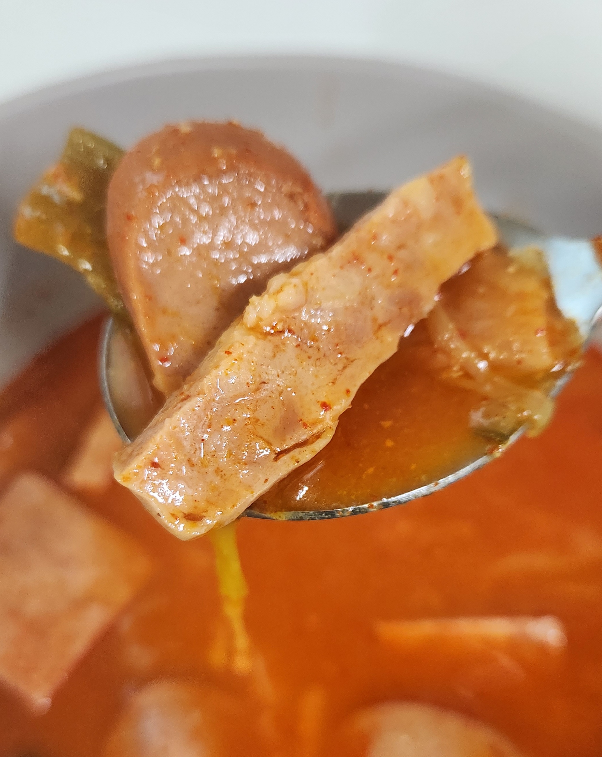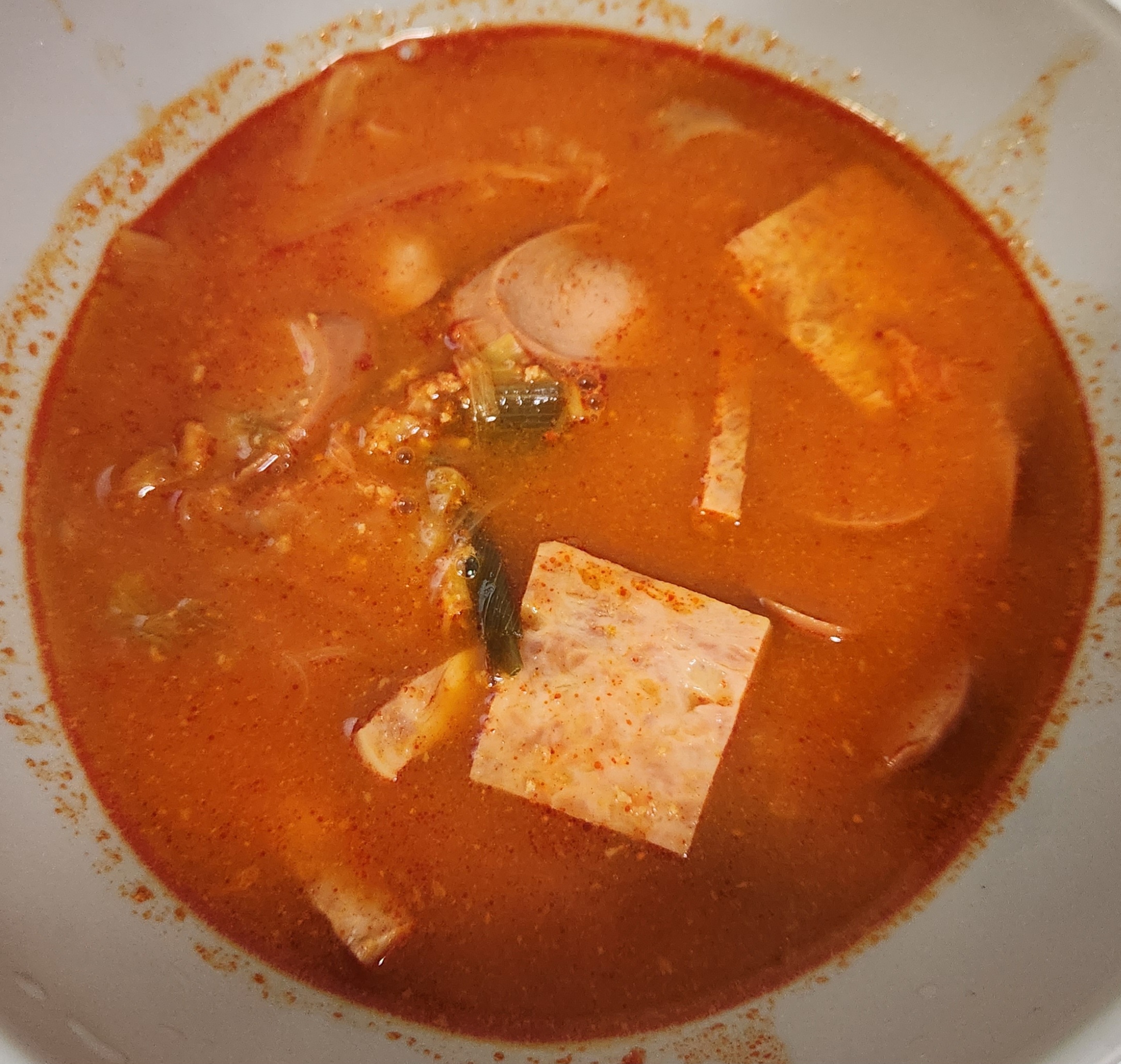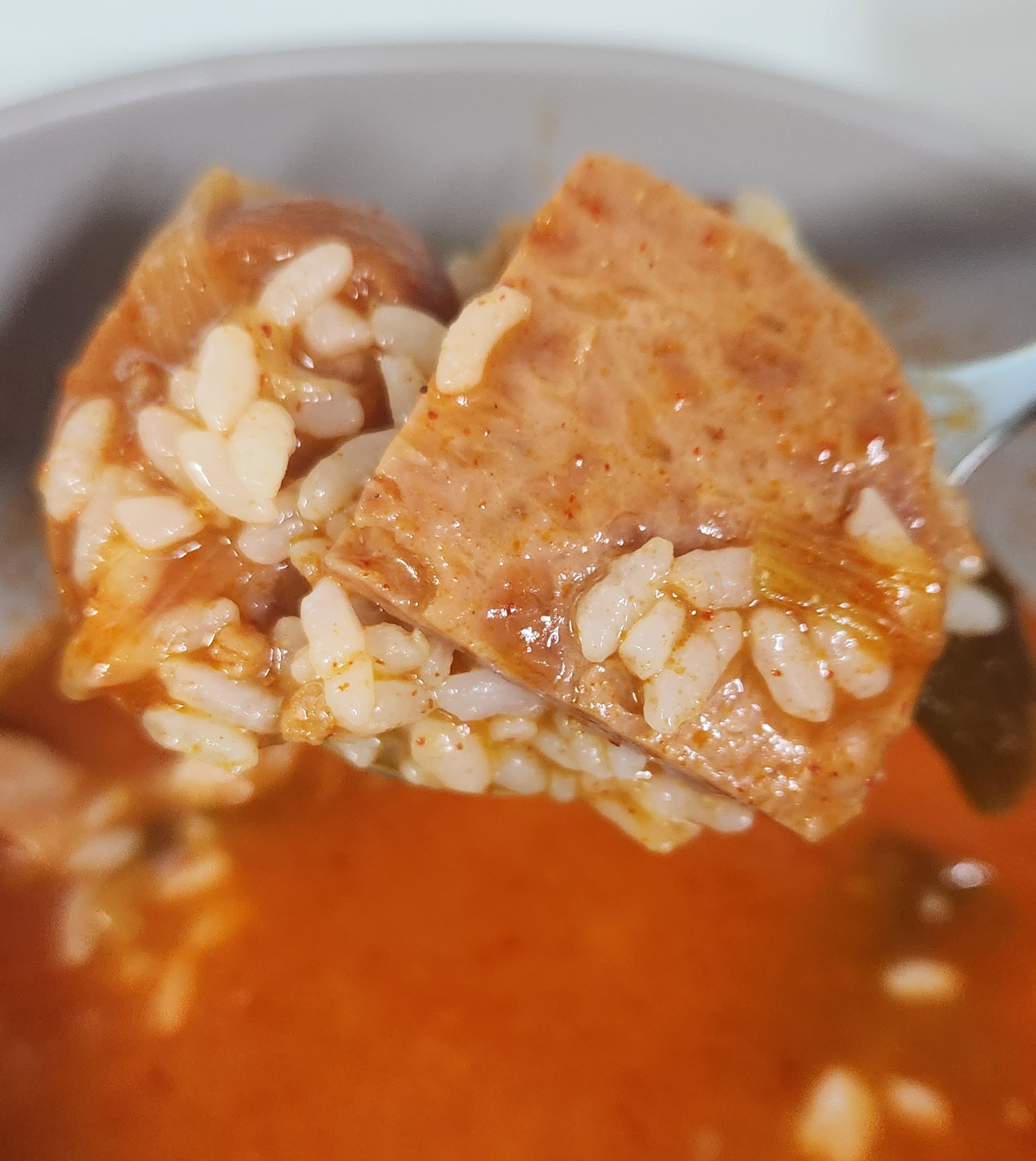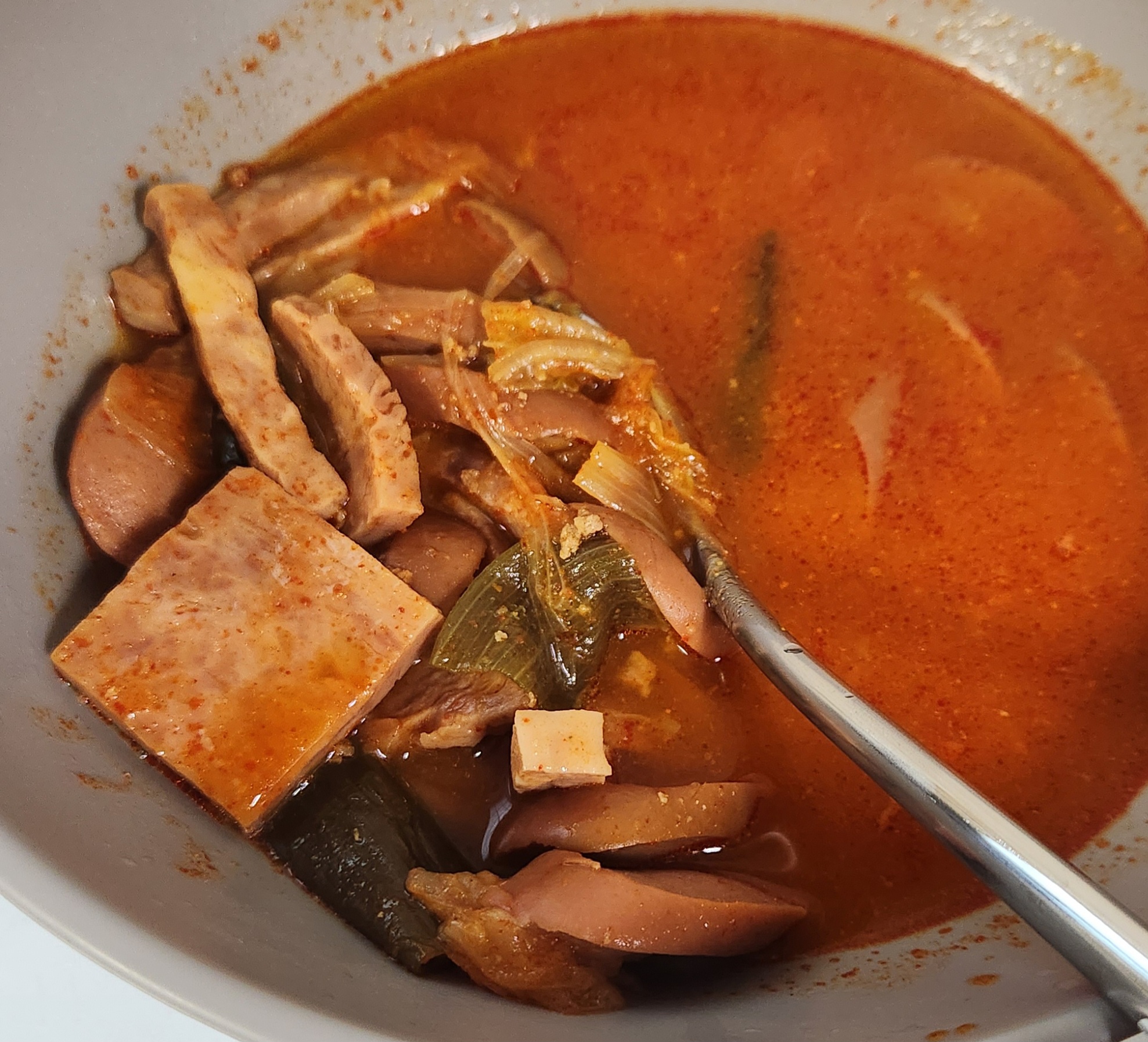 밥을 말아서 한 숟가락에 햄과 소시지를 평균 2개씩 얹어서 얼큰한 국물과 같이 먹을 수 있으니 특별히 다른 반찬과 같이 먹을 필요 없이 한 끼를 훌륭하게 해치울 수 있었다. 이런 즉석조리식품 대부분이 1인분이라고 표시해두지만 먹는 양에 따라서 충분히 2인분으로 먹을 수도 있으니 식비를 줄이고자 한다면 다른 반찬들과 함께 밥을 먹는다면 이 부대찌개를 2인분으로 나눠서 먹을 수도 있겠다.
