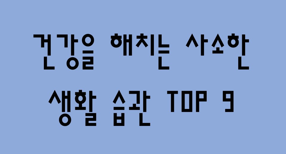 우리가 일상생활을 하는데 아무렇지도 않게 의식하지 못하고 하는 행동들 중에는 내가 모르는 사이에 건강을 해치는 사소하지만 건강에는 굉장히 좋지 않은 습관들이 많이 있습니다. 이 글에서는 사소하지만 상대적으로 건강에는 해로운 영향을 많이 미치는 일상생활에서의 습관들에 대해서 알아보도록 하겠습니다.