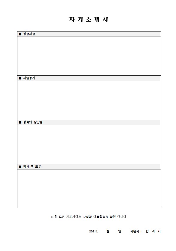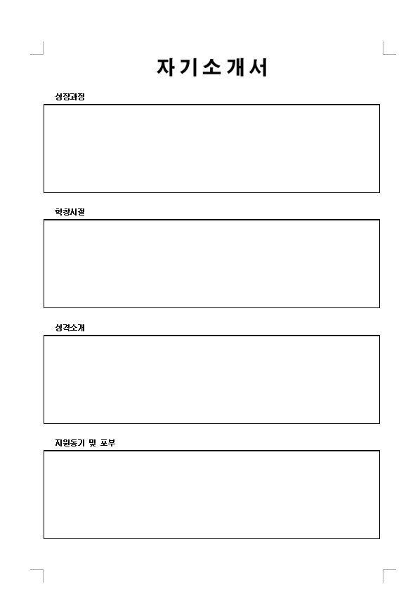 각 파일의 샘플 이미지를 참고해서 본인의 용도에 맞는 자기소개서 양식을 다운로드하실 수 있기를 바랍니다.