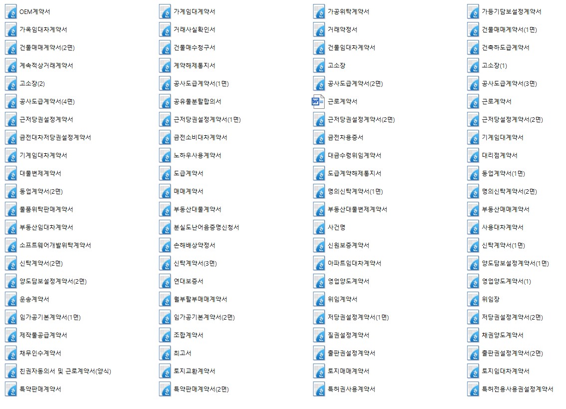 (압축파일이 1메가 바이트 이하로 부담 없는 용량이니 한 번에 다운로드해서 필요한 계약서 양식을 찾아 사용하시기 바랍니다.)
